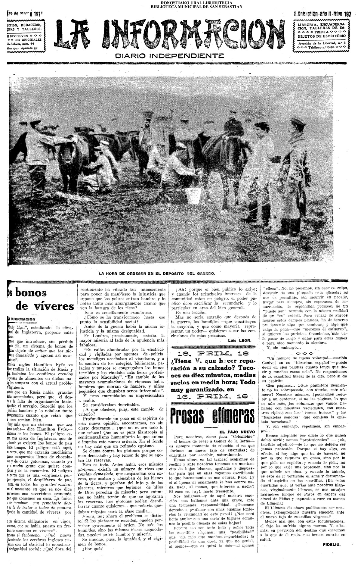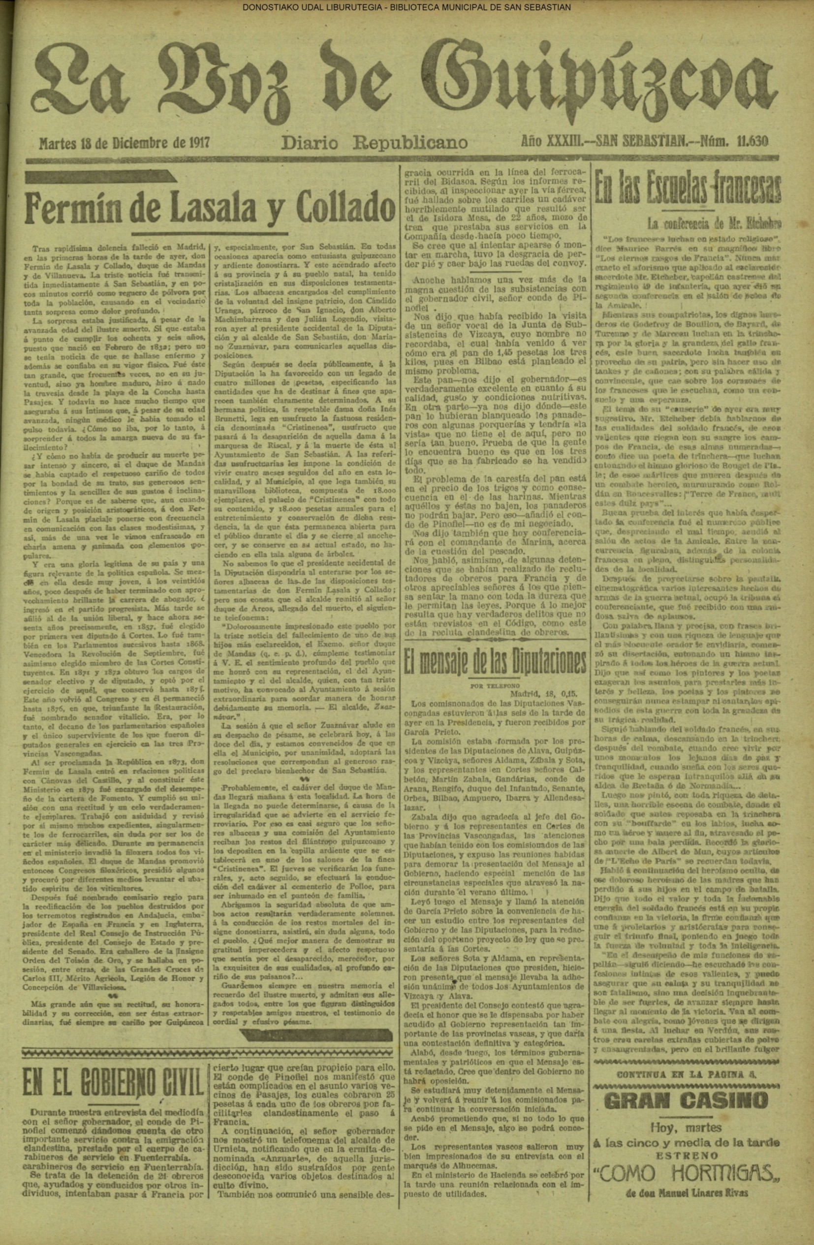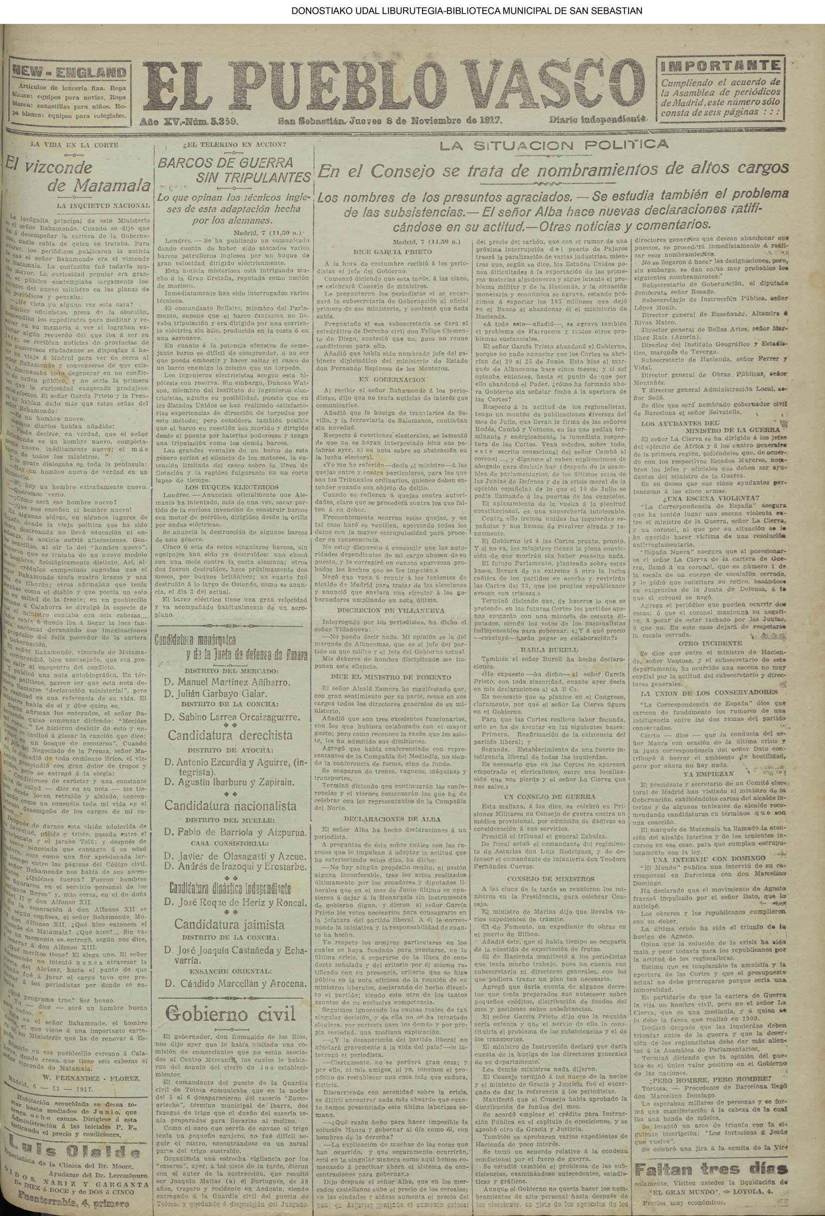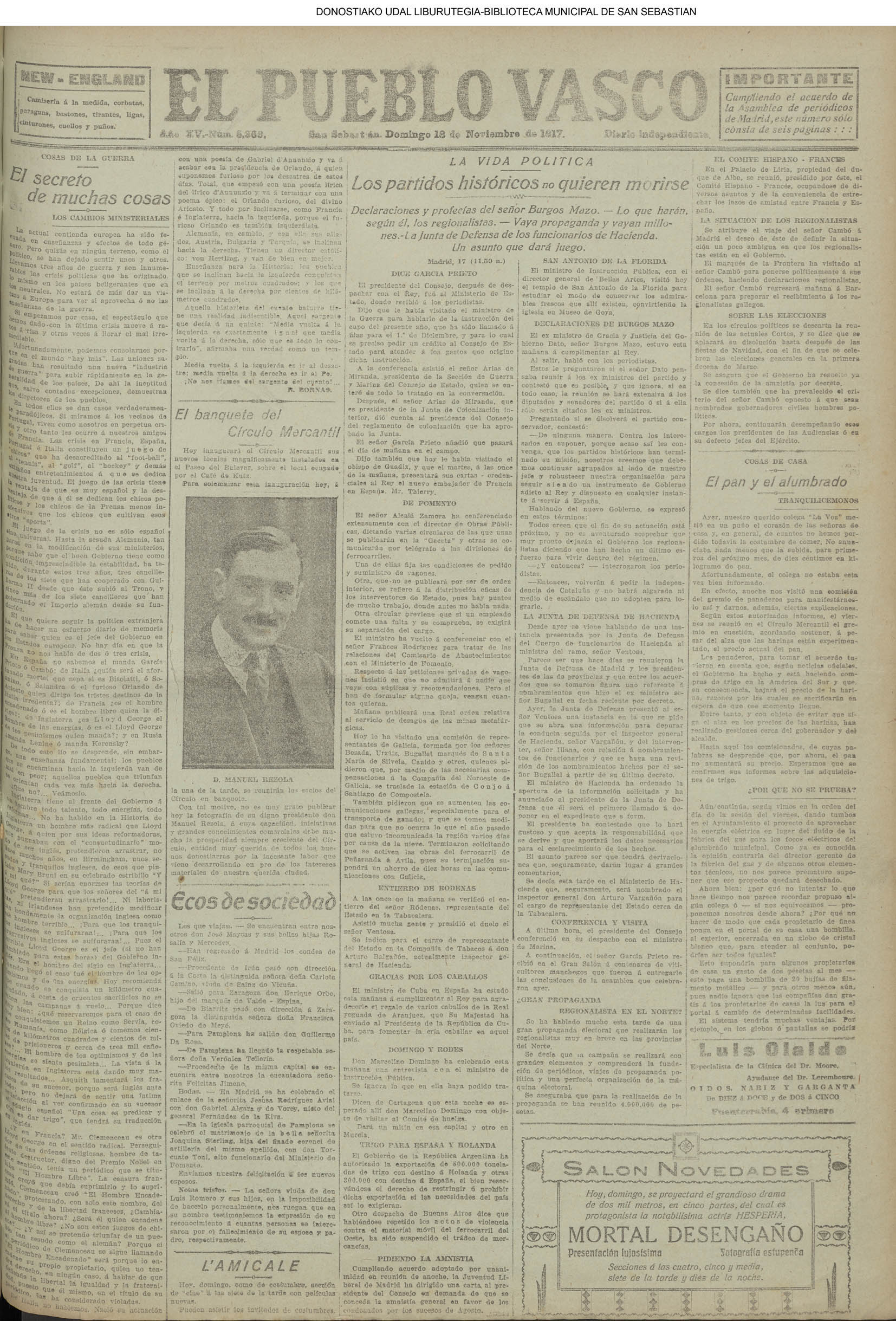 1917 Se aprueba el presupuesto para construir el Ensanche de Amara.