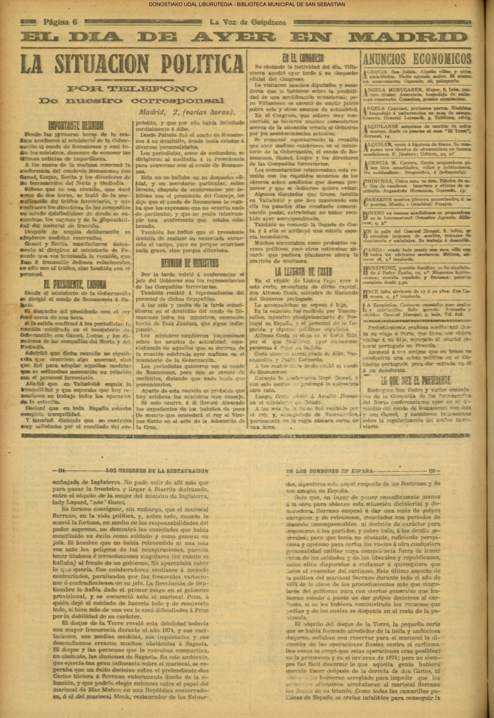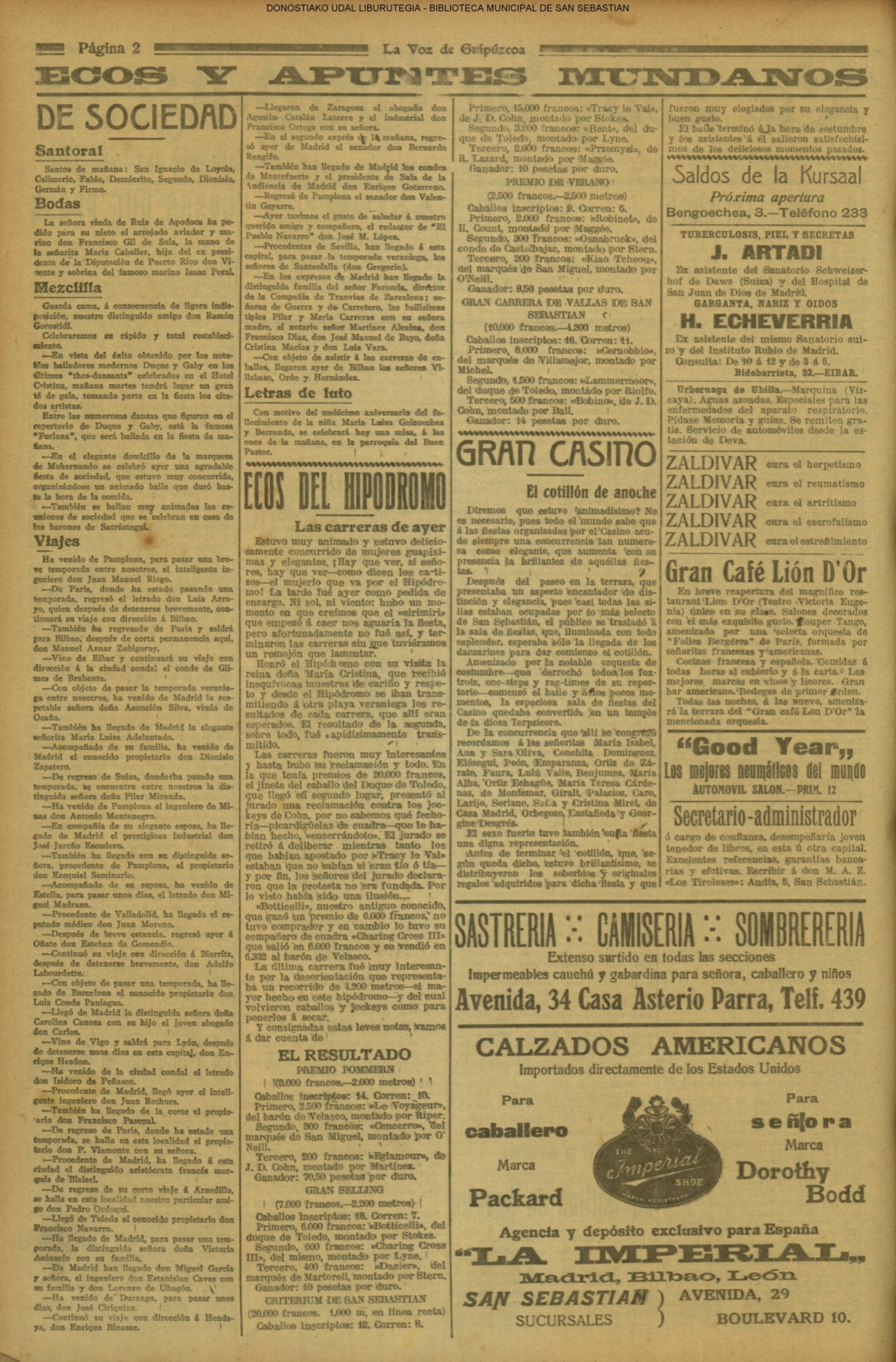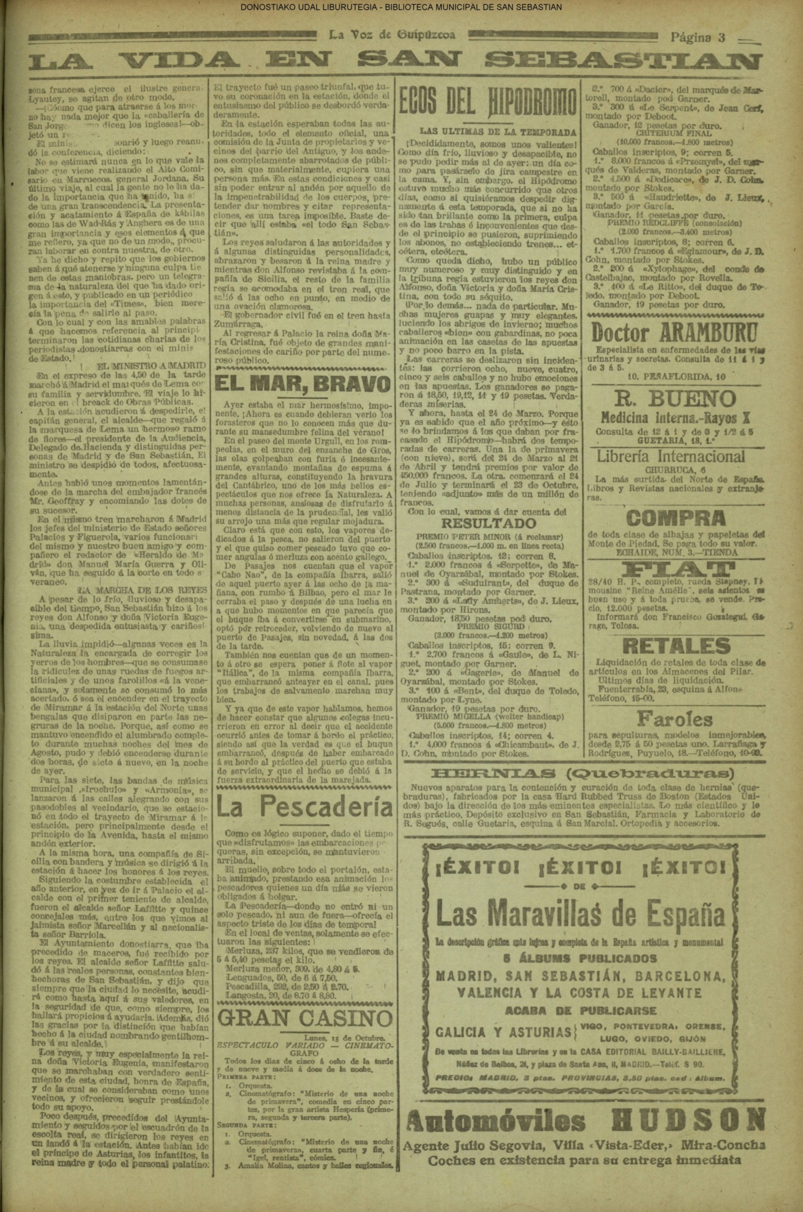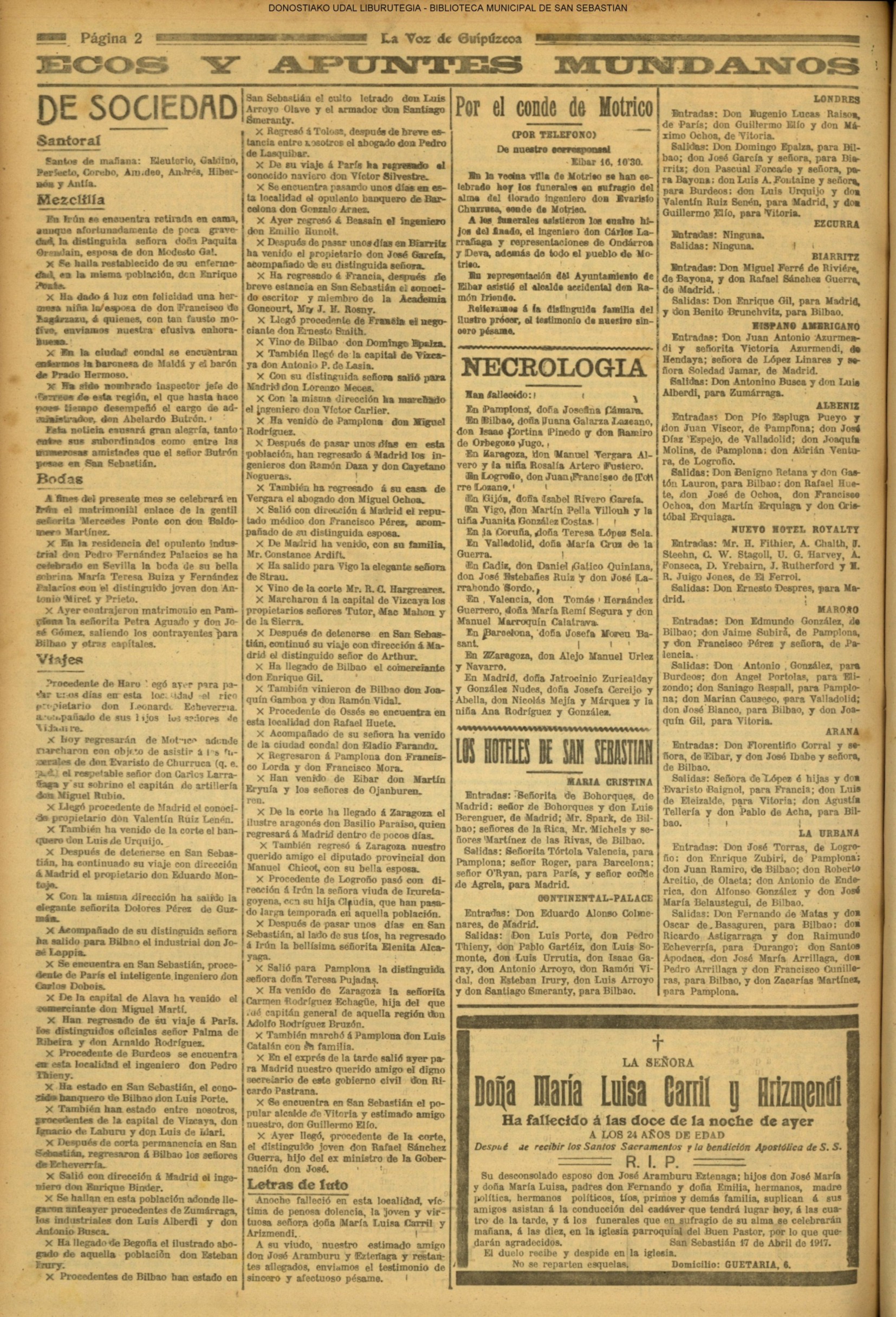 El Palacio era la única construcción de toda la Avenida que no mantenía la alineación con el resto de fachadas, ya que estaba rodeado de un jardín separado de la calle con altas verjas. Al poco tiempo, el edificio pasó a manos del Sr. Edouard Dupouy Montagne, que instaló la “fonda” más elegante de la época, el Gran Hotel de Londres. En 1900 el hotel vendió la parcela que daba a la c/ Fuenterrabía, El edificio fue derribado en 1900, y en su lugar se construyó otro que fue inaugurado en julio de 1902, la sede del Banco Guipuzcoano. Más tarde el Banco se hizo con toda la propiedad, emprendiendo importantes obras de ampliación de sus instalaciones que lo convirtieron en el hotel más elegante de la ciudad, pasando a llamarse Hotel du Palais ya que fue dirigido por la misma sociedad que su homónimo de Biarritz. Fue inaugurado el 1 de julio de 1903. La mayor competencia hotelera y la crisis del turismo francés, durante la Primera Guerra Mundial provocaron el cierre del hotel, vendiéndose el solar a la Caja de Ahorros Provincial que construyó cinco casas entre 1917 y 1921, según proyecto de Ramón Cortazar, formando el conjunto arquitectónico más hermoso de la Avenida de la Libertad de San Sebastián.