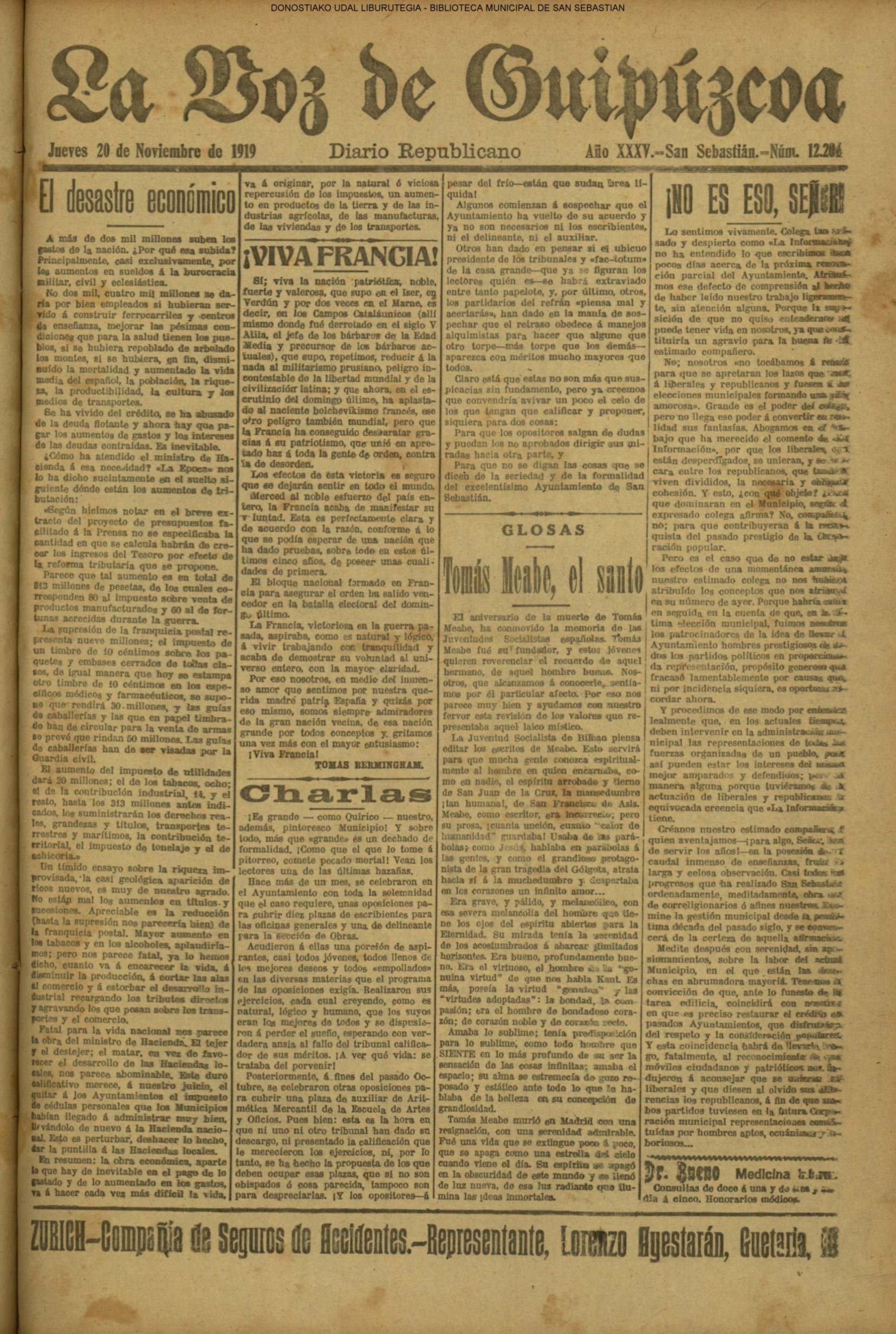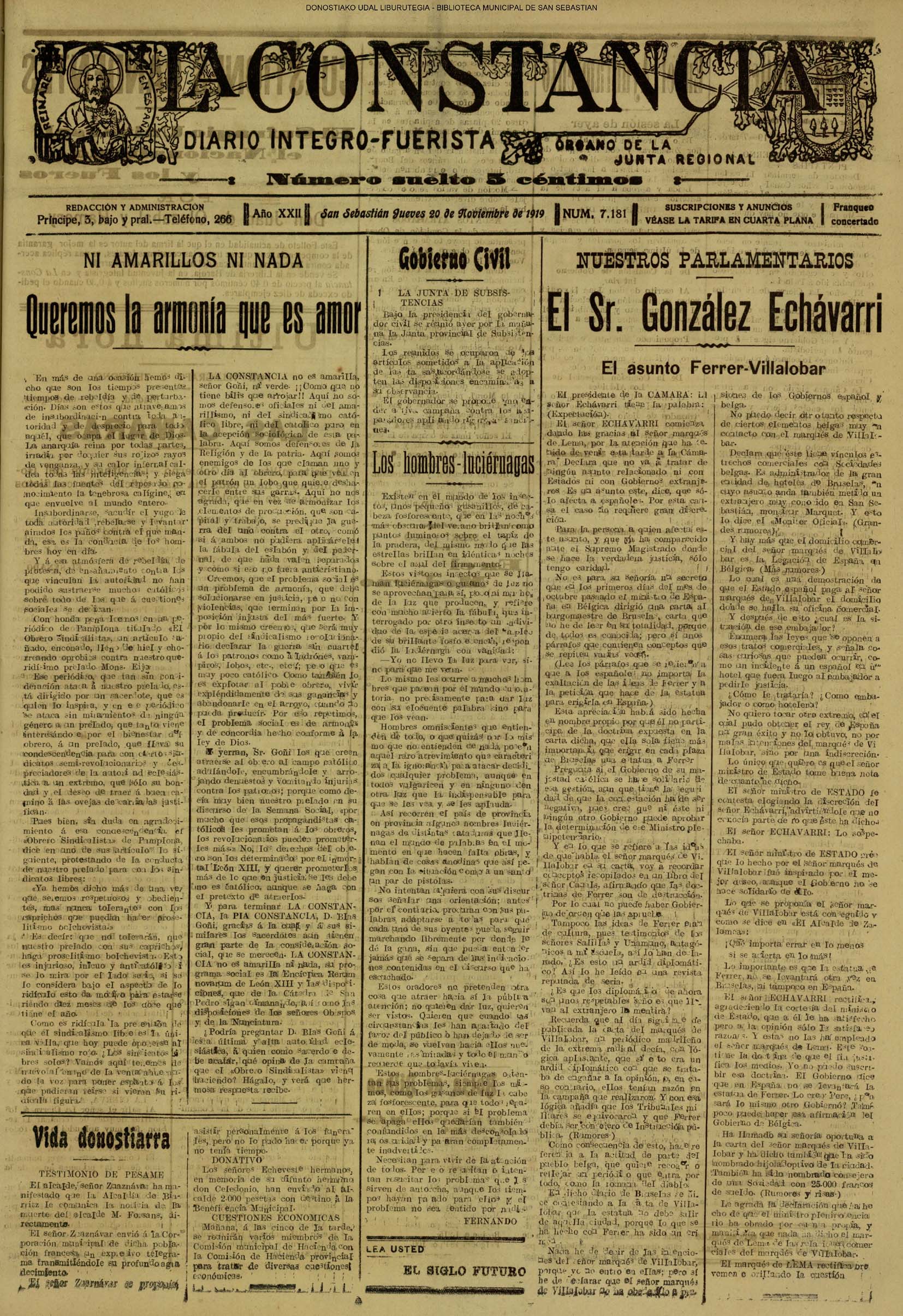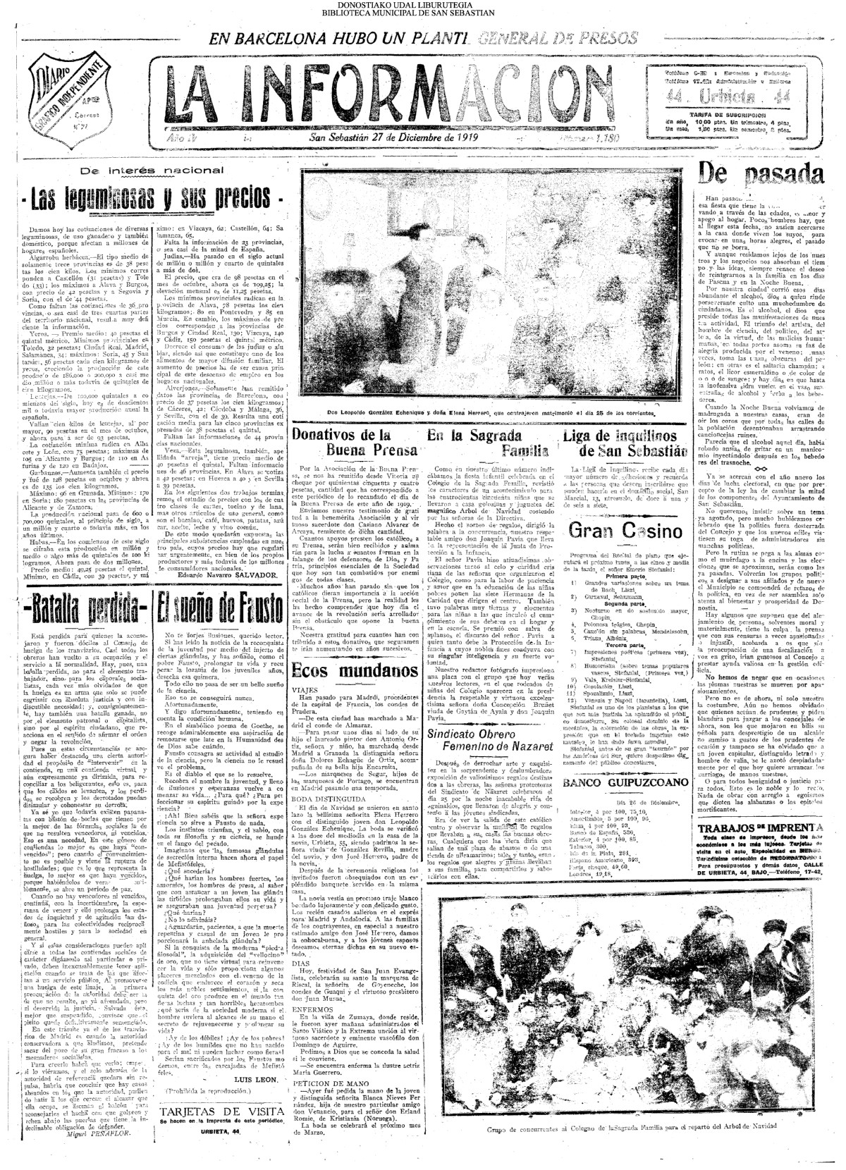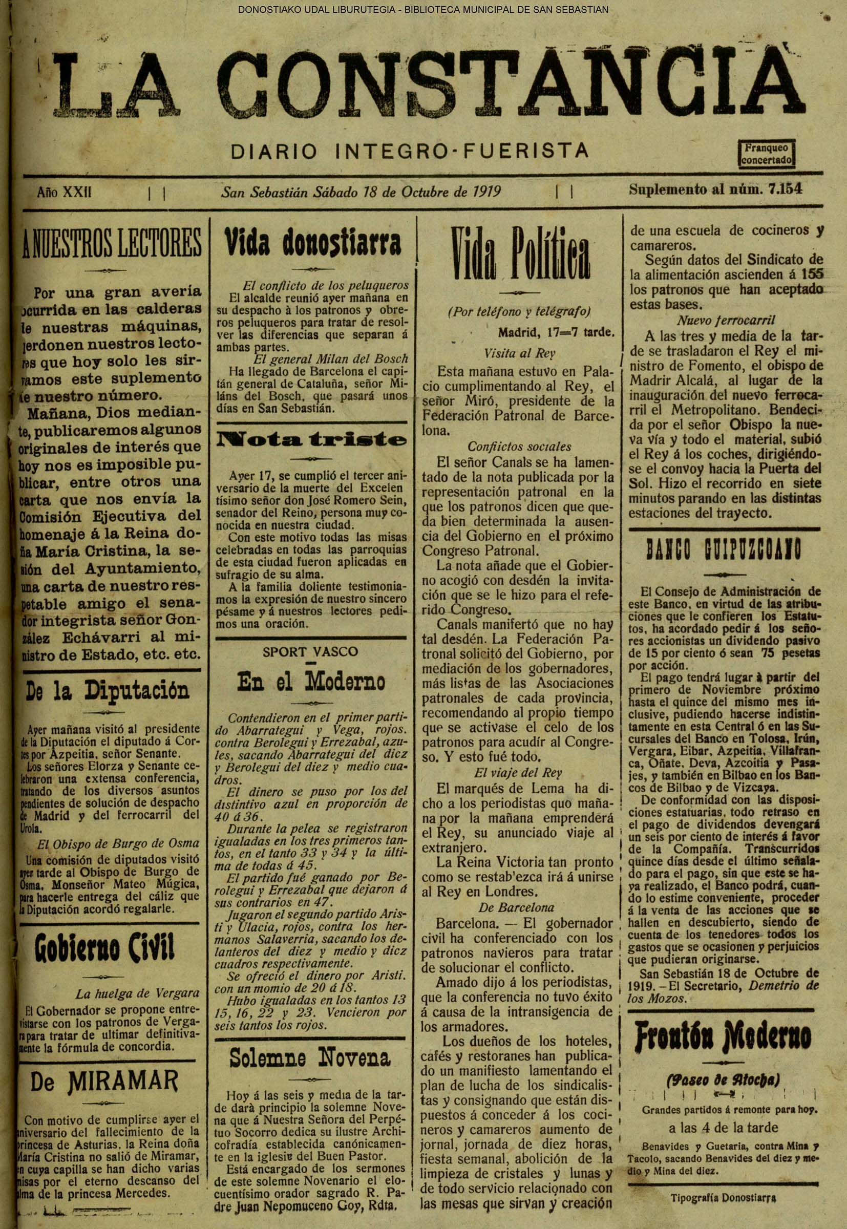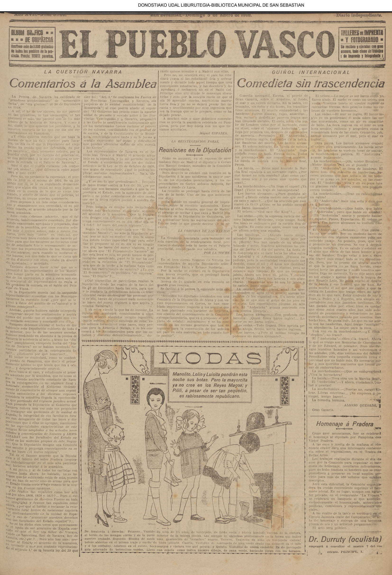 | Ahora que estamos entrando en época estival en#Donostia #SanSebastián, vemos cómo se planteaba el veraneo hace 100 años. El Gobernador, señor Semprún, en 1919, ante la proliferación de la oferta de camas particulares durante el verano dio orden de controlar las mismas. El periodista de La Voz de Guipúzcoa lo relataba así: "El Gobernador ha dado órdenes de hacer una revisión de las casas de huéspedes, en las que no consentirá que se metan más personas que las que caben. ¡Ay, ay, ay: el señor Gobernador no conoce a nuestros clásicos! Ahora, todo irá bien: el inspector provincial de Sanidad hará una minuciosa visita, cubicará las habitaciones y dará un certificado diciendo que allí no se podrán colocar más que "tantas" camas. Pero llegará Julio, le seguirá agosto -como suele suceder todos los años- y en agosto hay una "semana grande" que no tiene rival ni en la Semana Santa de Sevilla. Y durante los meses de julio, agosto y setiembre, las patronas, en complicidad con los mismos forasteros que van a sufrir las molestias, colocarán catres y colchones hasta en los intersticios de las puertas, convirtiendo las habitaciones en pequeños cuarteles... ¡San Sebastián, es grande, es único, "está de non" en el mundo! Y es tan atrayente, que puede soportar, sin daño para la ciudad, a sus dos mayores enemigos; las pulgas de la playa y las patronas de huéspedes." (REVISTA SAN SEBASTIÁN) |