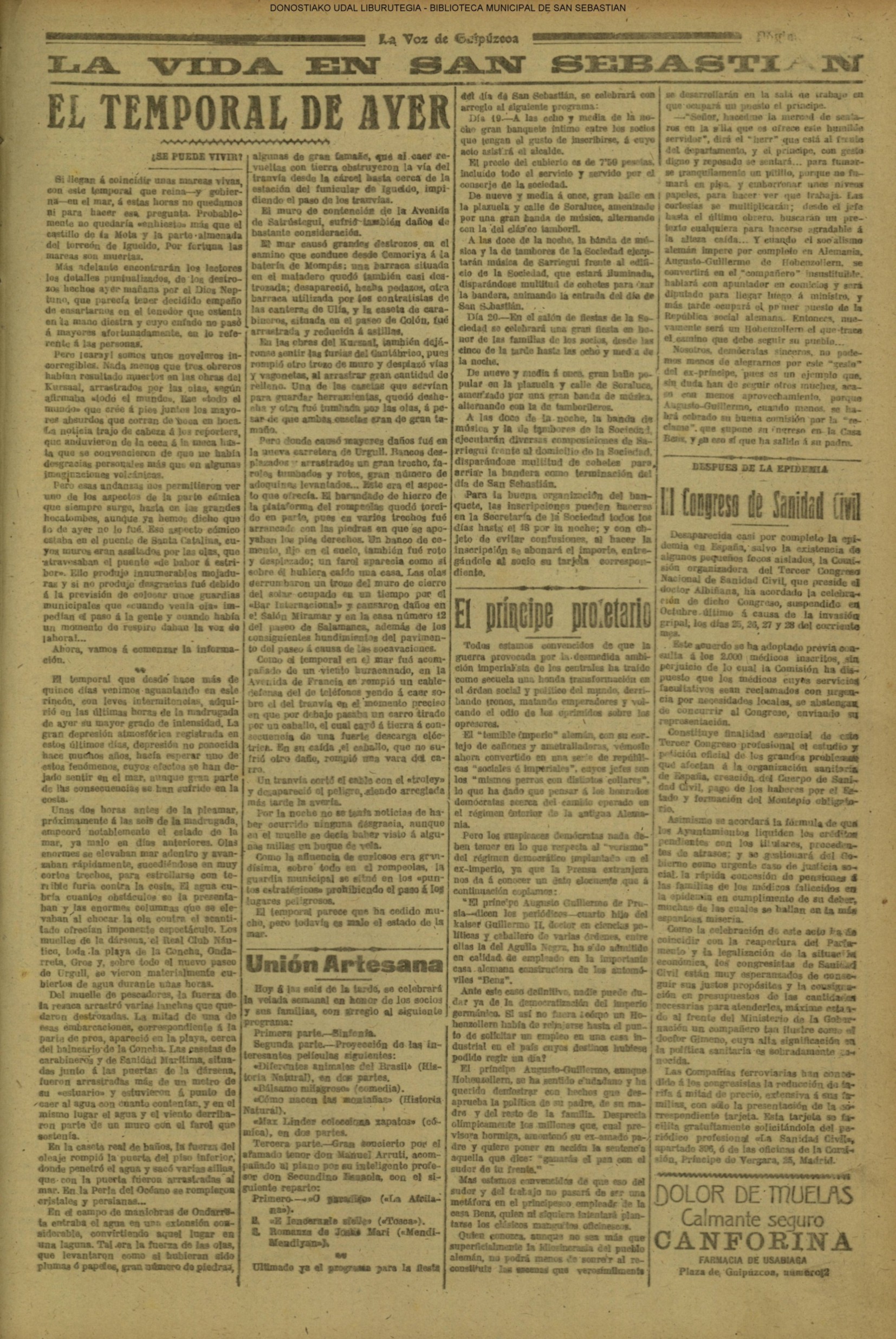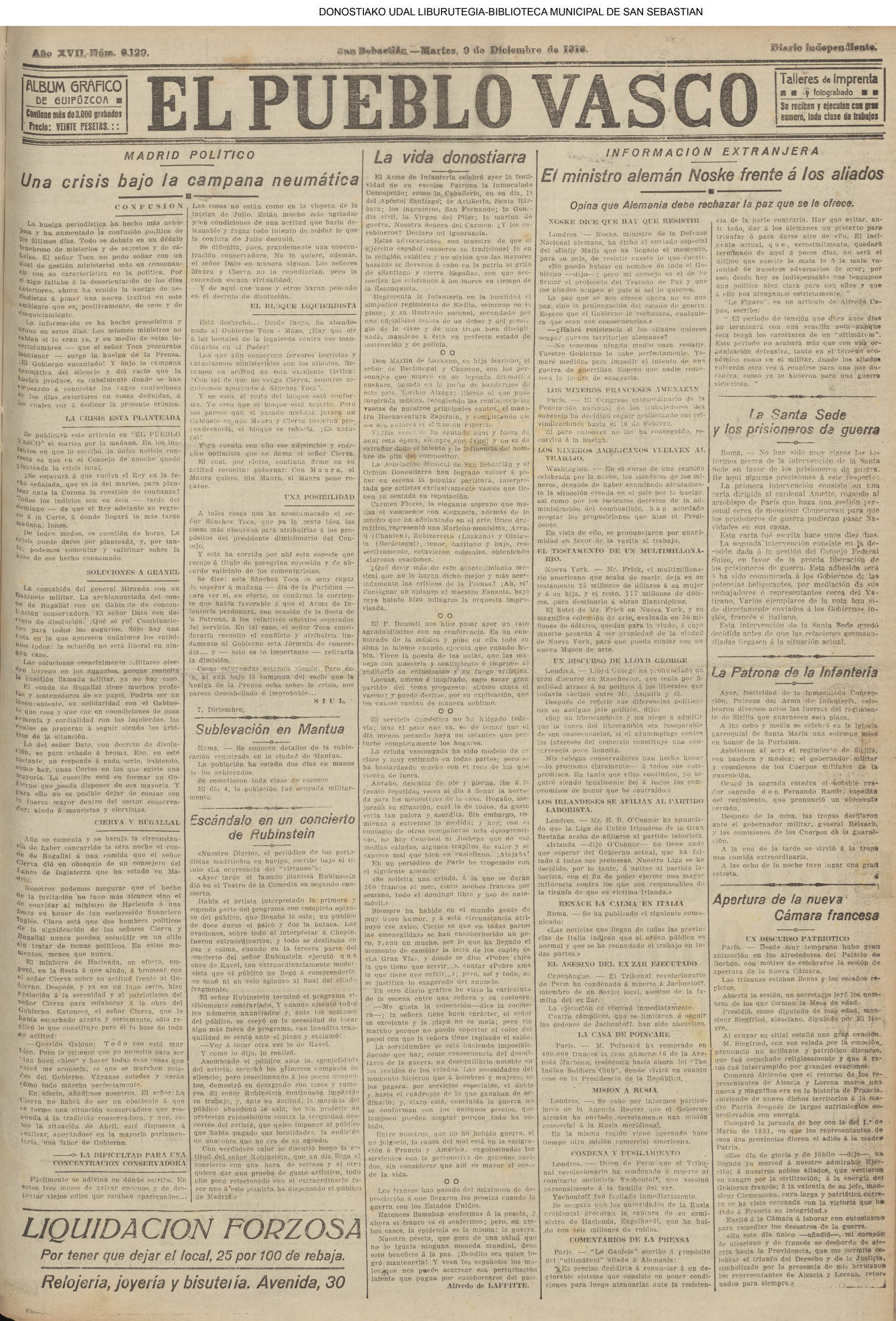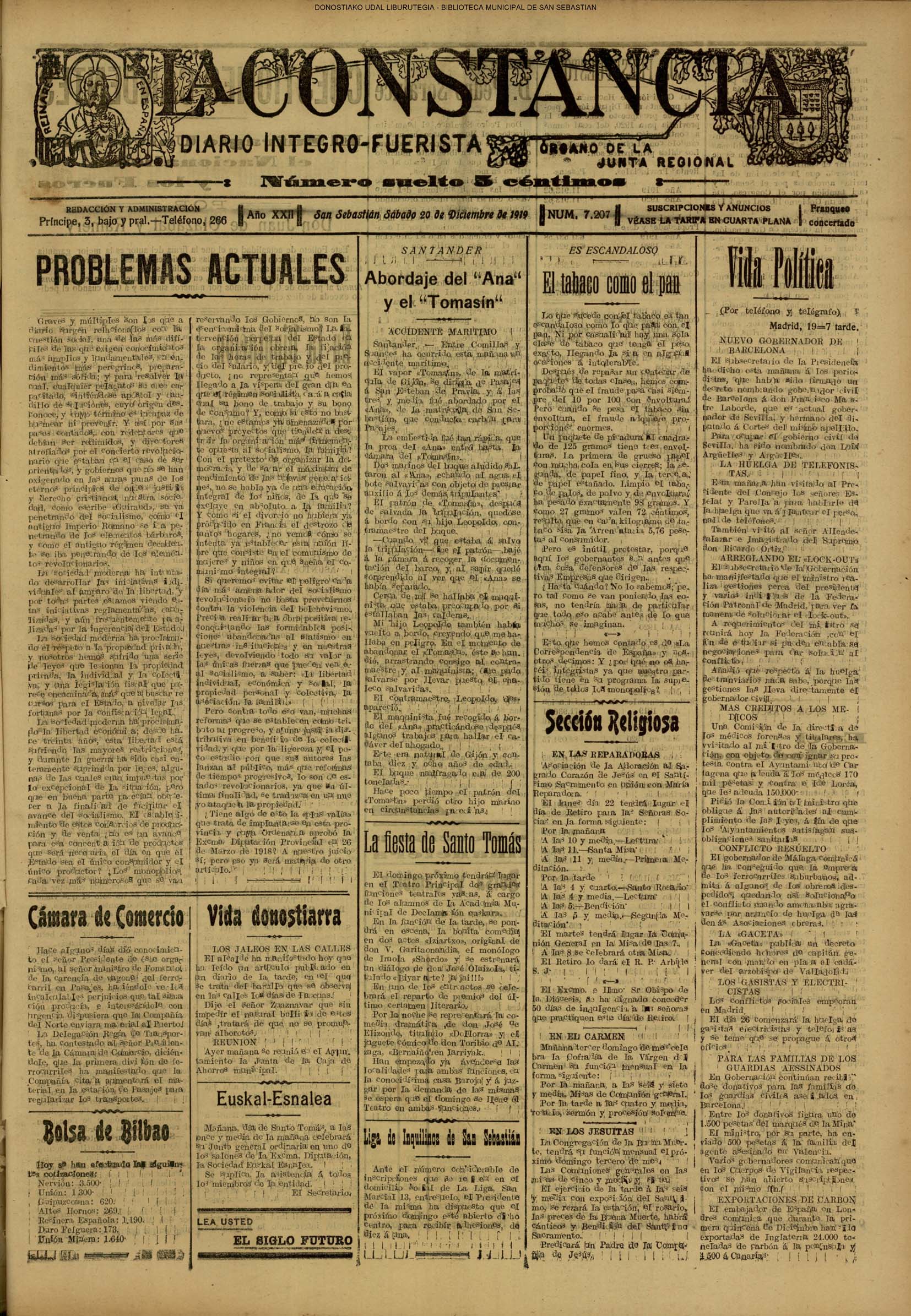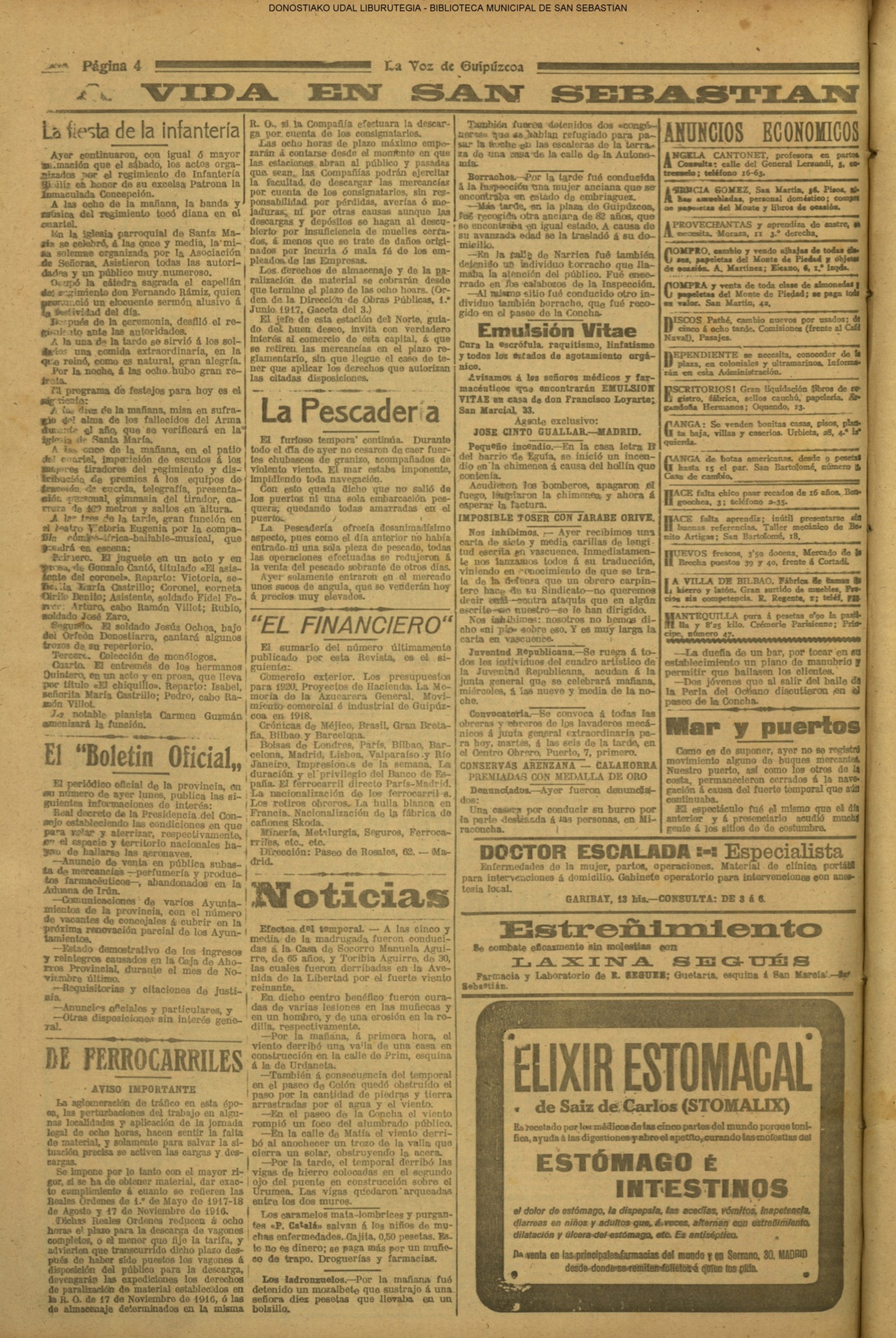 | Leyendo la prensa de hace un siglo nos encontramos con que la Semana Santa de 1919 en#Donostia #SanSebastián, no debió estar muy animada, al menos, según la describía el periodista de la Voz de Guipúzcoa. "La procesión recorrió su carrera con toda solemnidad, y, una vez más, nos acordamos de que en San Sebastián, donde no escasean instituciones religiosas y personas acaudaladas de acendrado catolicismo, podía hacerse una procesión artística que atrajese forasteros, en vez de ocurrir al revés, como ahora, que los indígenas nos vamos a otras partes. Después de la procesión se llenaron los cafés y los cines y no faltó un buen paseo, primero en la Concha y después en la Avenida. ¡Pero nos aburrimos mucho! Hoy repicarán las campanas tocando a Gloria. Sonarán las músicas y las cornetas, batirán los tambores y parecerá que se llevan el velo de tristeza oficial y reglamentada. Se reanudarán los espectáculos, volverá la vida animada y alegre “a pesar de todo” y continuaremos haciendo comentarios sobre la situación política. ¡Que debe ser de abrigo!” (REVISTA SAN SEBASTIÁN) |