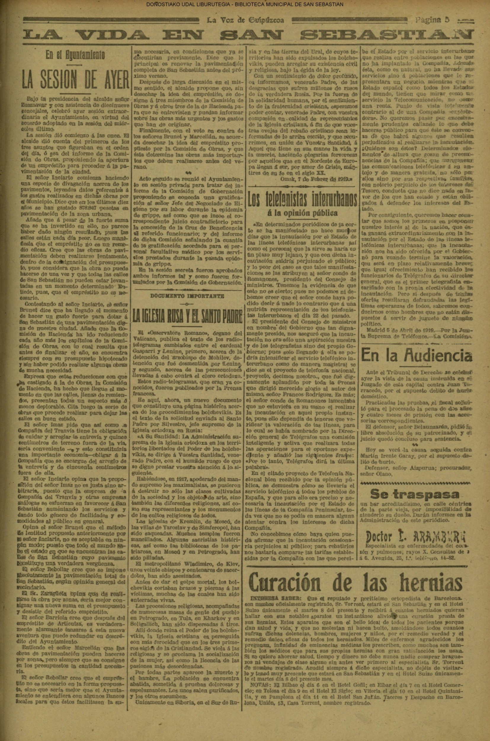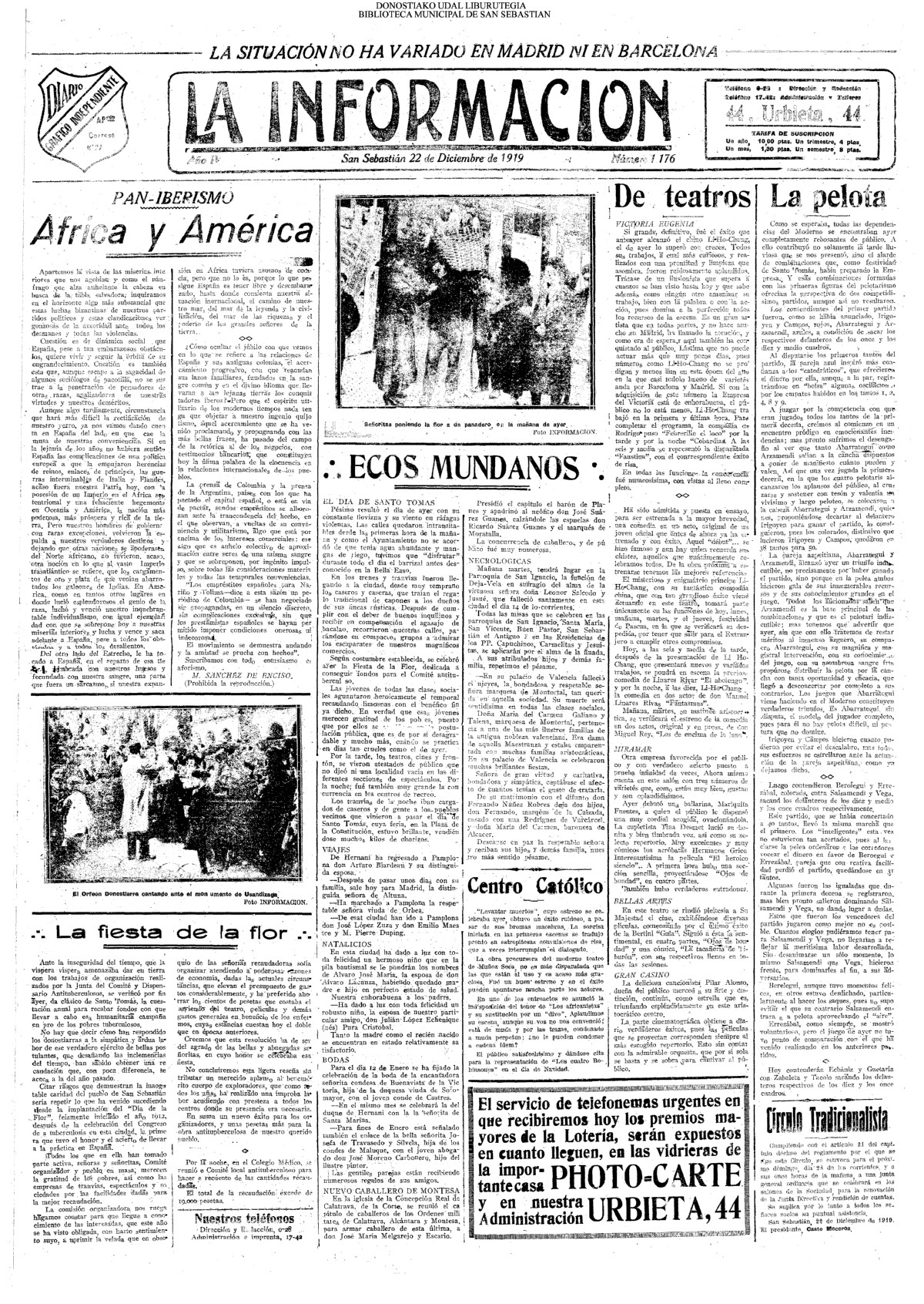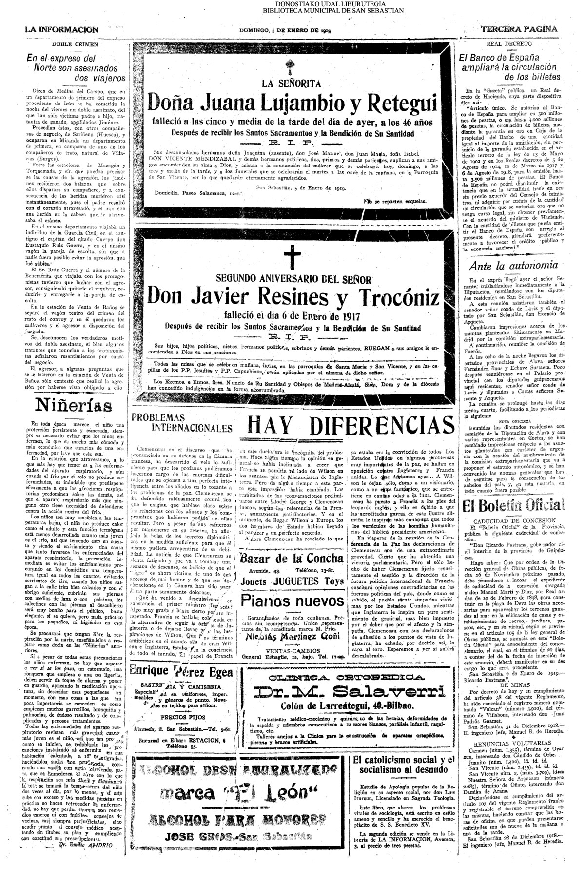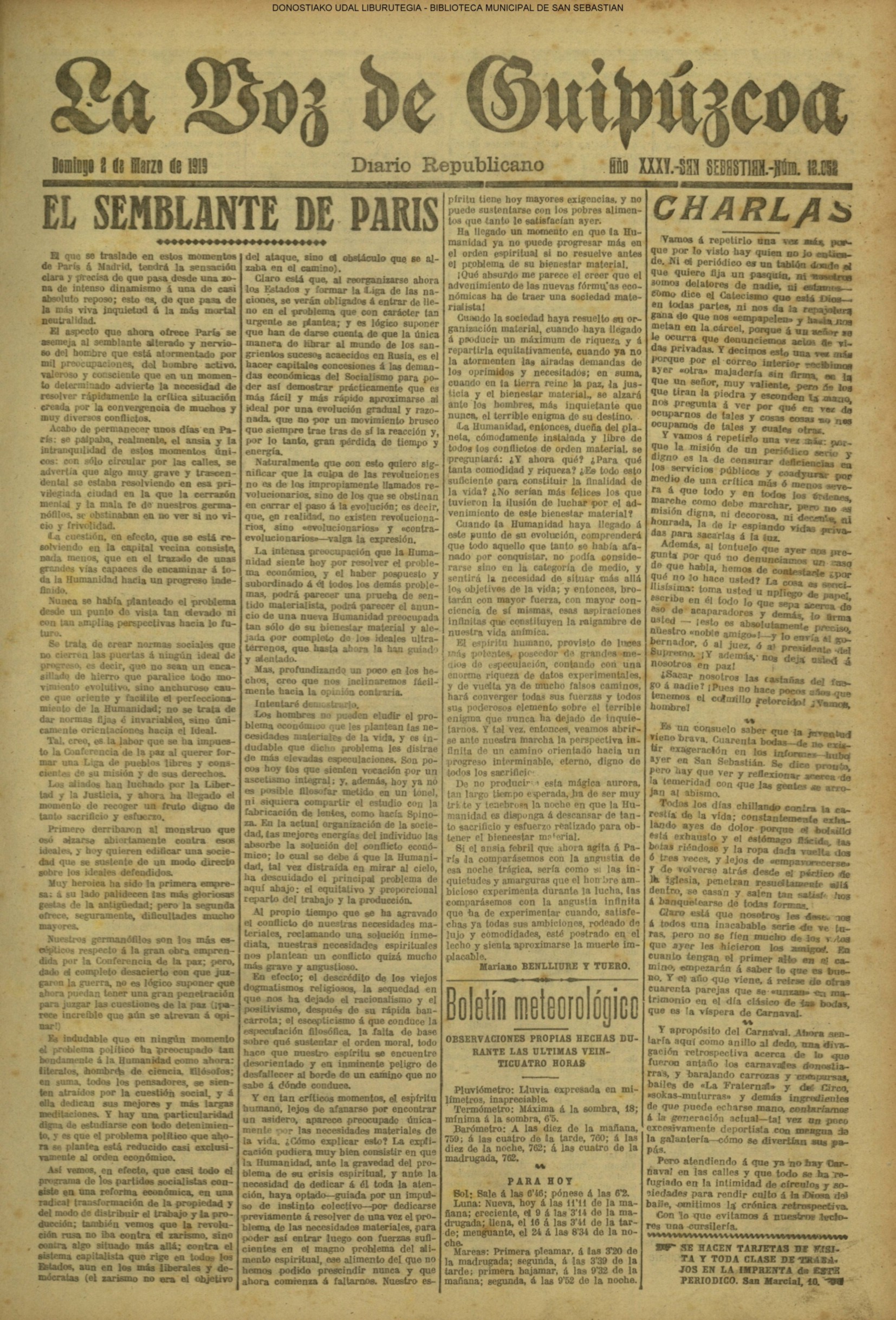| Leyendo la prensa de hace un siglo nos encontramos con que la Semana Santa de 1919 en#Donostia #SanSebastián, no debió estar muy animada, al menos, según la describía el periodista de la Voz de Guipúzcoa. "La procesión recorrió su carrera con toda solemnidad, y, una vez más, nos acordamos de que en San Sebastián, donde no escasean instituciones religiosas y personas acaudaladas de acendrado catolicismo, podía hacerse una procesión artística que atrajese forasteros, en vez de ocurrir al revés, como ahora, que los indígenas nos vamos a otras partes. Después de la procesión se llenaron los cafés y los cines y no faltó un buen paseo, primero en la Concha y después en la Avenida. ¡Pero nos aburrimos mucho! Hoy repicarán las campanas tocando a Gloria. Sonarán las músicas y las cornetas, batirán los tambores y parecerá que se llevan el velo de tristeza oficial y reglamentada. Se reanudarán los espectáculos, volverá la vida animada y alegre “a pesar de todo” y continuaremos haciendo comentarios sobre la situación política. ¡Que debe ser de abrigo!” (REVISTA SAN SEBASTIÁN) |