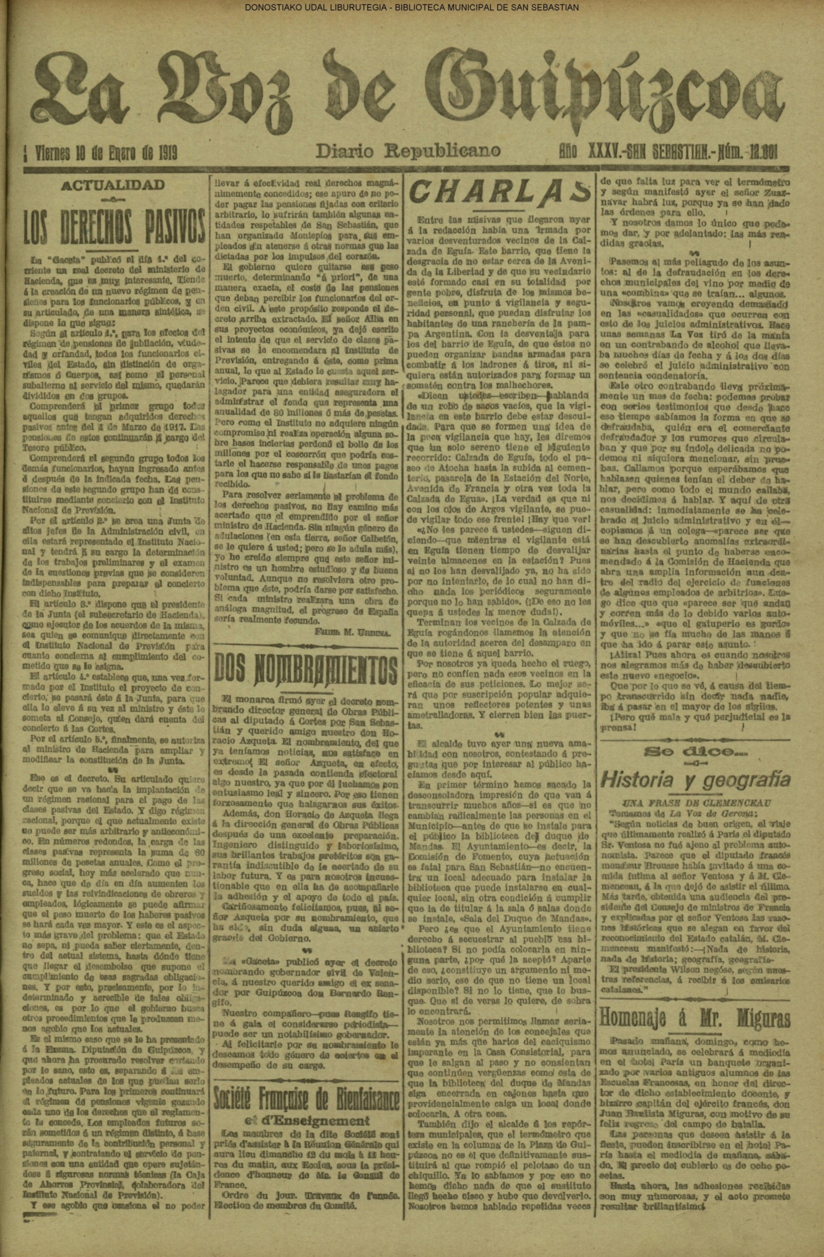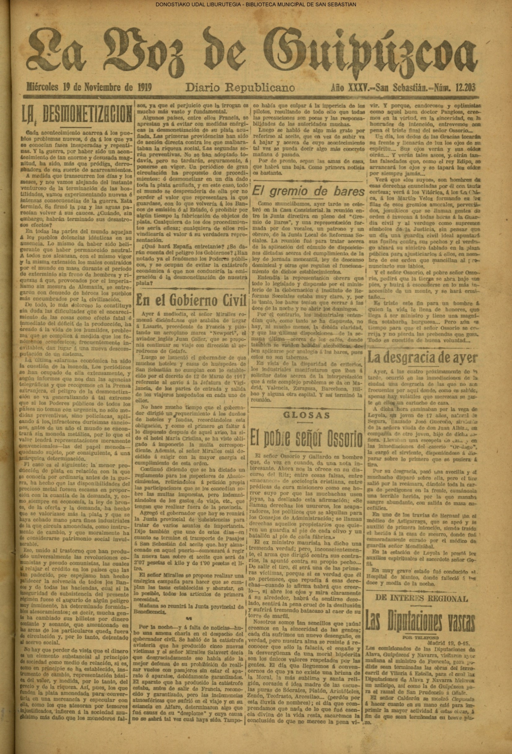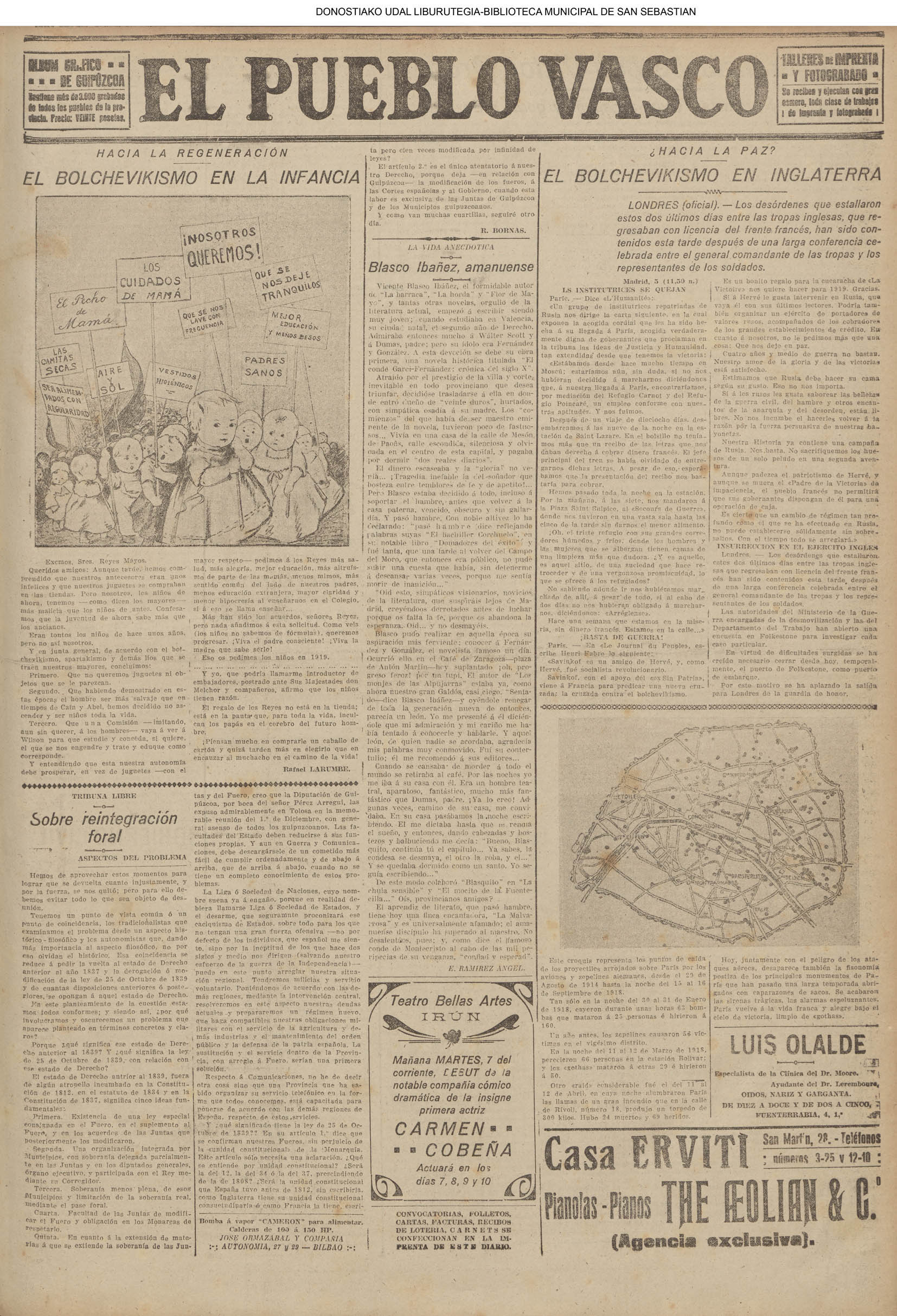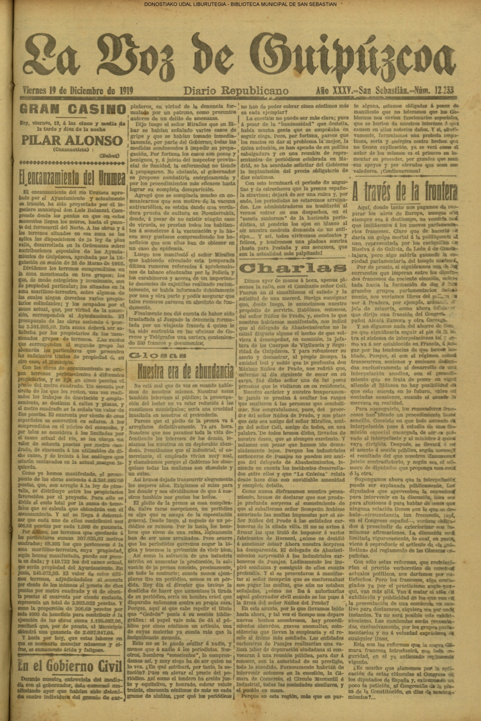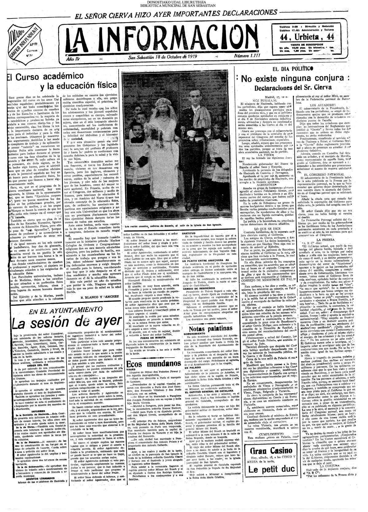 Zarzuela en el Victoria Eugenia, variedades y películas solas o combinadas en otras salas. Nos vamos de espectáculos hace un siglo, siguiendo la cartelera que publicaba 'La Voz de Guipúzcoa' el 1 de mayo de 1919, que se abría con ¡remonte!