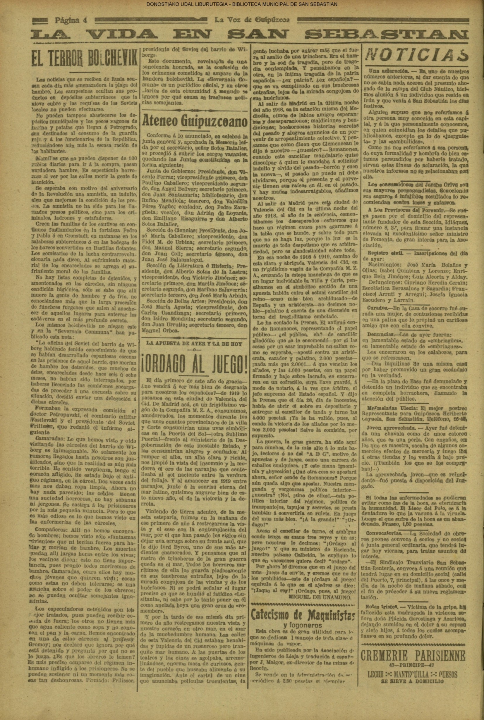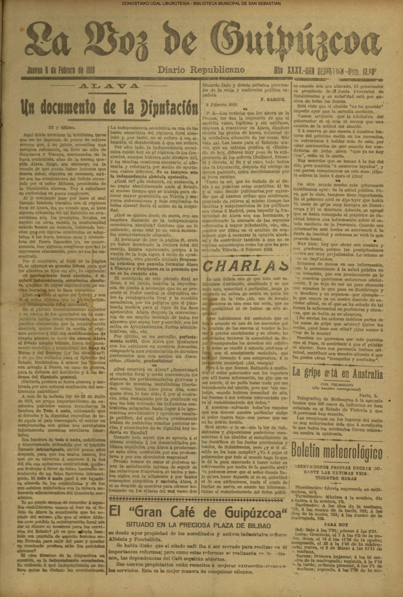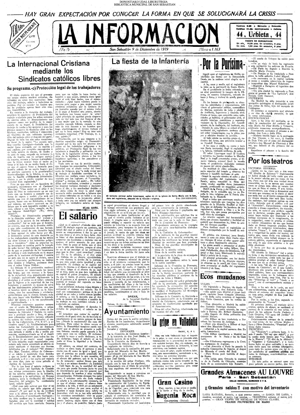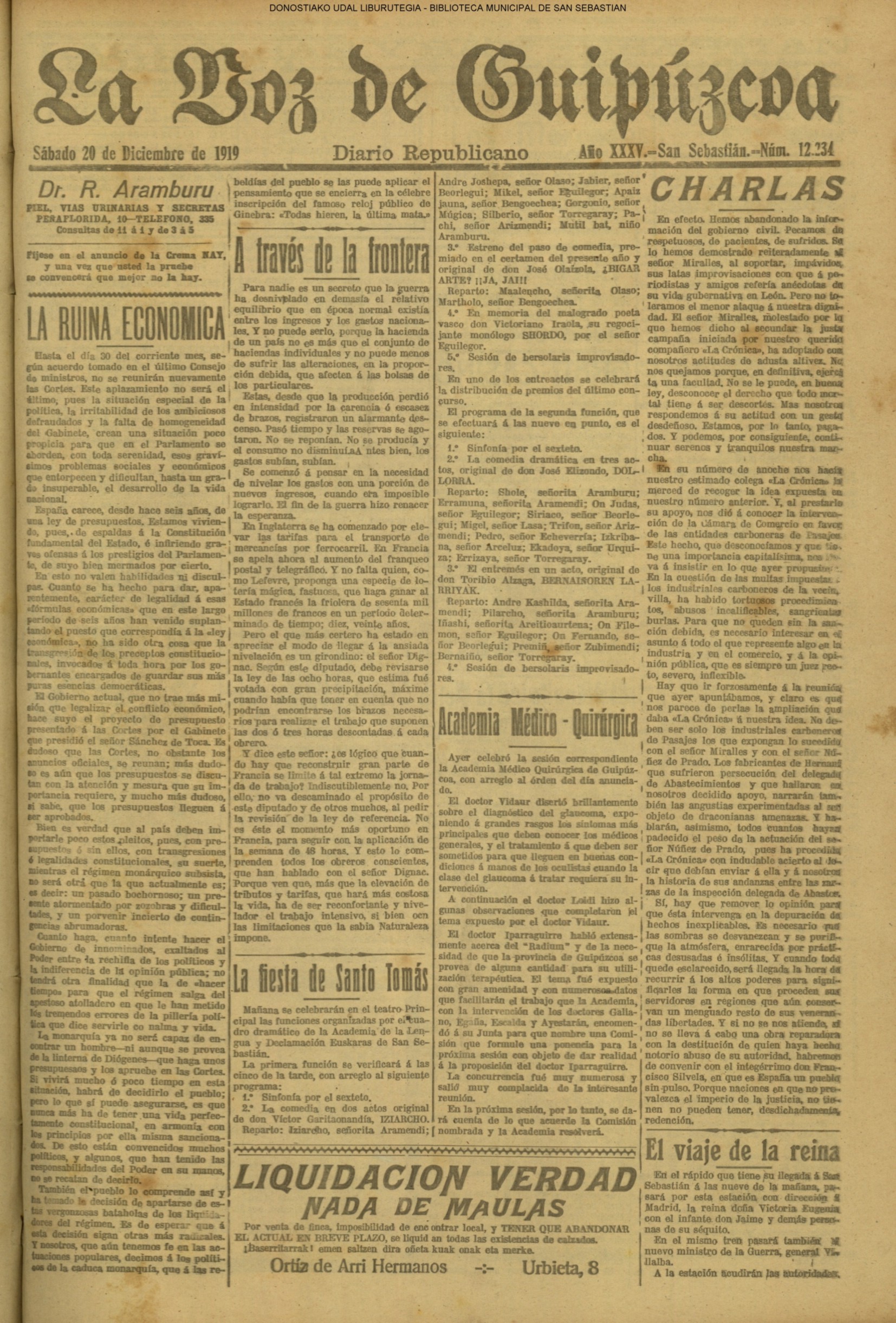 Zarzuela en el Victoria Eugenia, variedades y películas solas o combinadas en otras salas. Nos vamos de espectáculos hace un siglo, siguiendo la cartelera que publicaba 'La Voz de Guipúzcoa' el 1 de mayo de 1919, que se abría con ¡remonte!