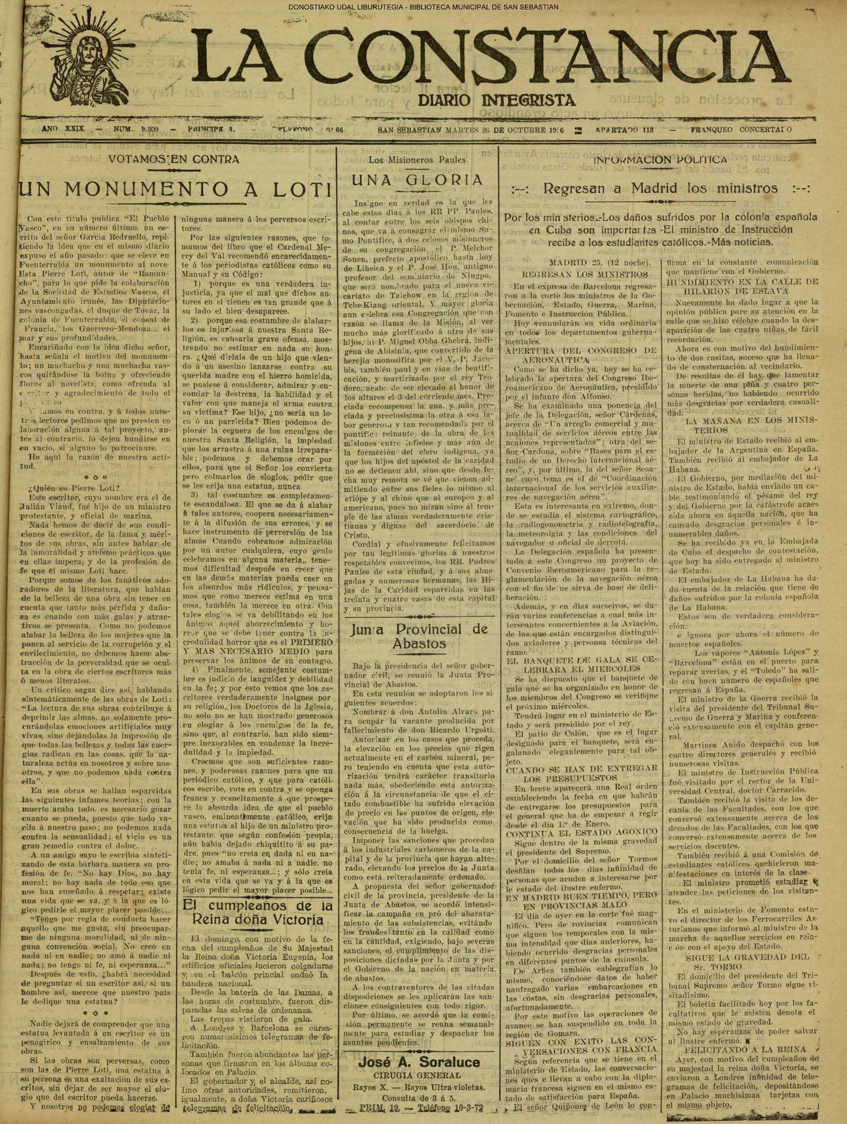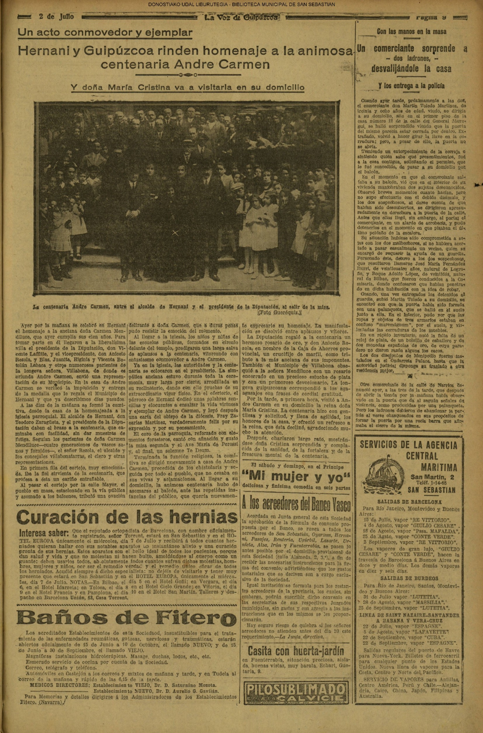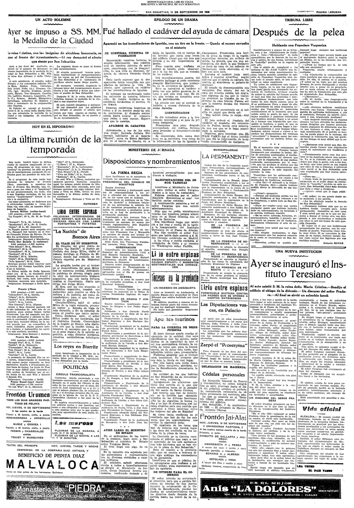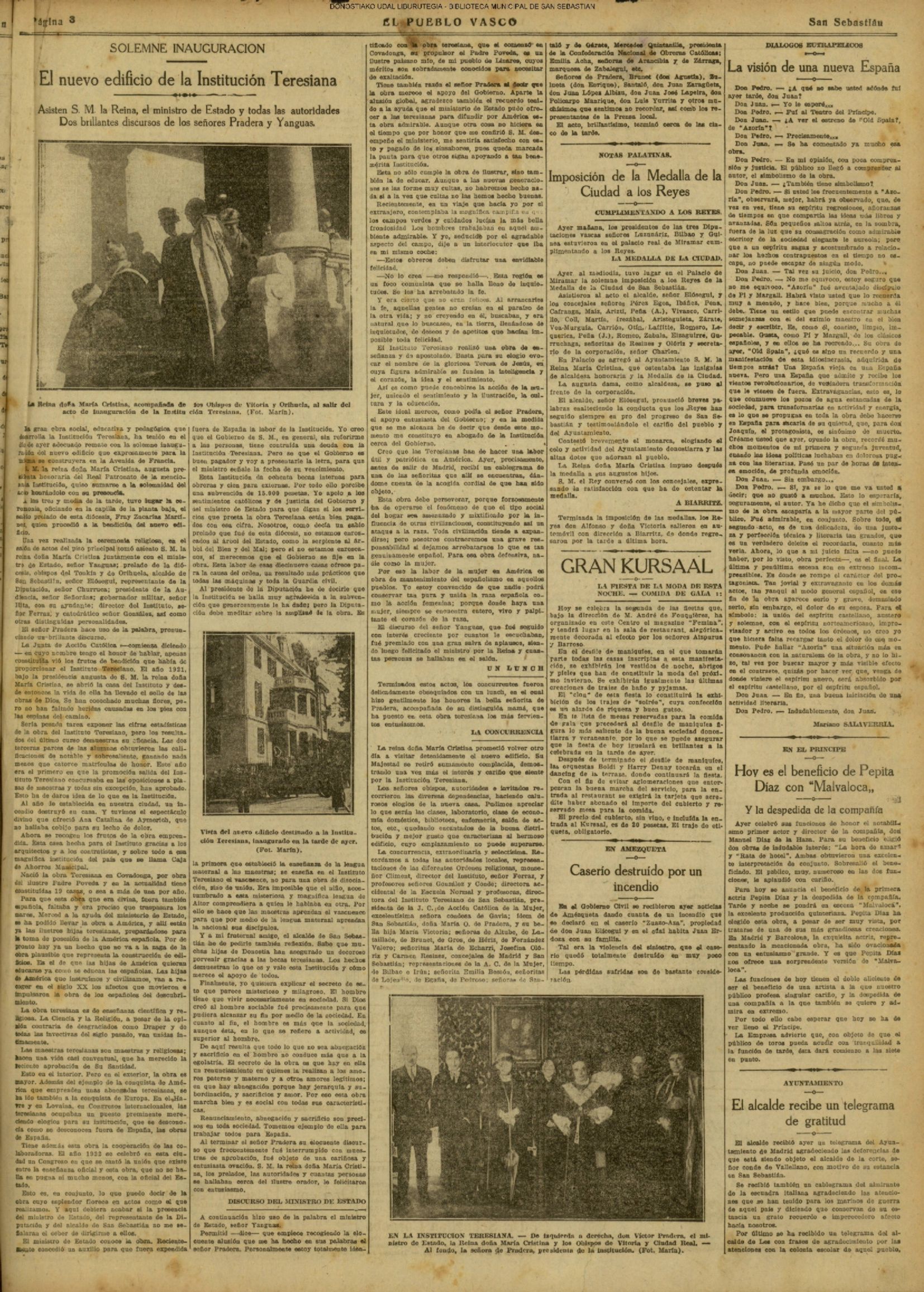 | 12 # El Ayuntamiento donostiarra otorga la Primera Medalla de Oro de la Ciudad a la Reina Maria Cristina. |