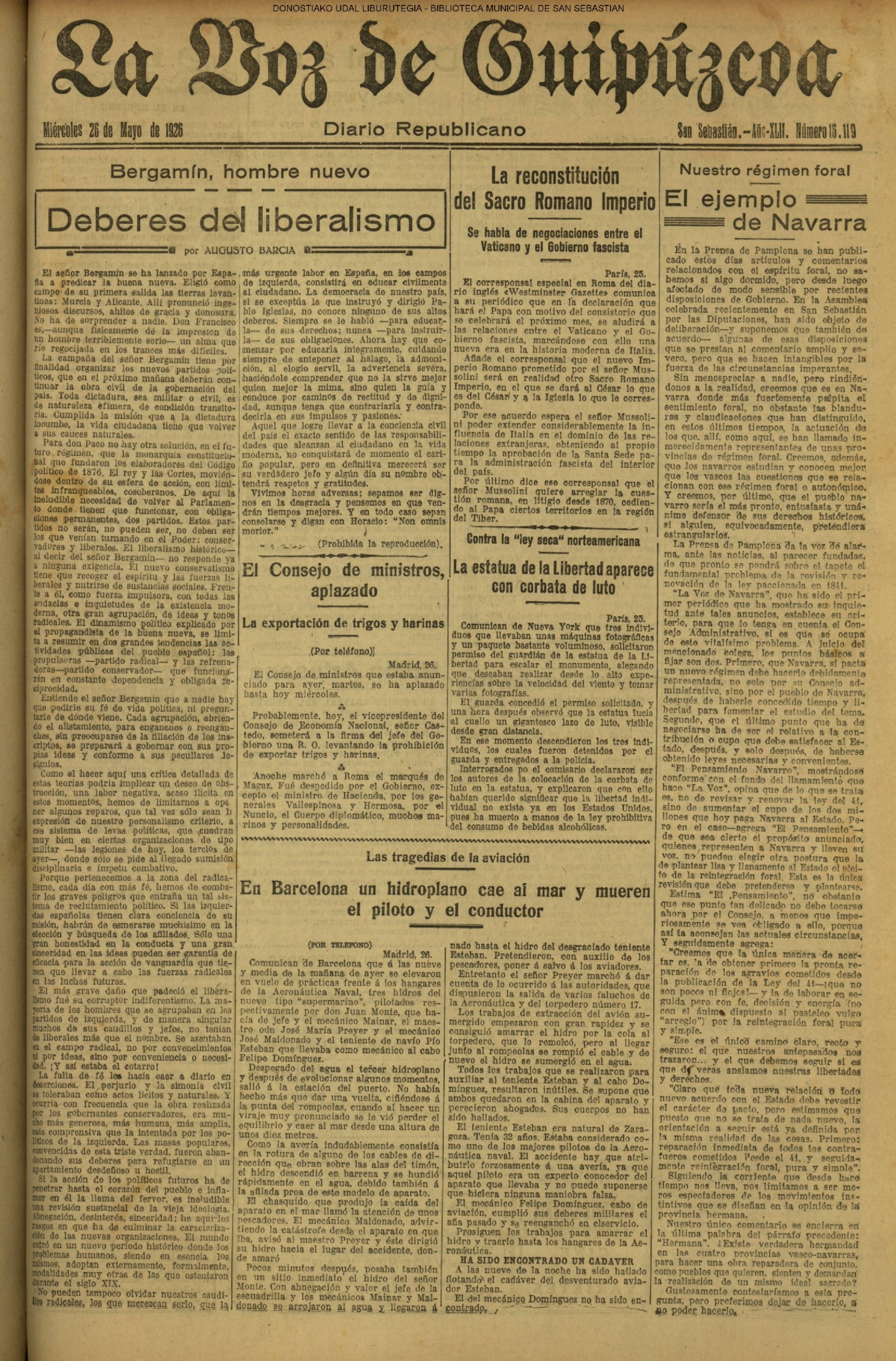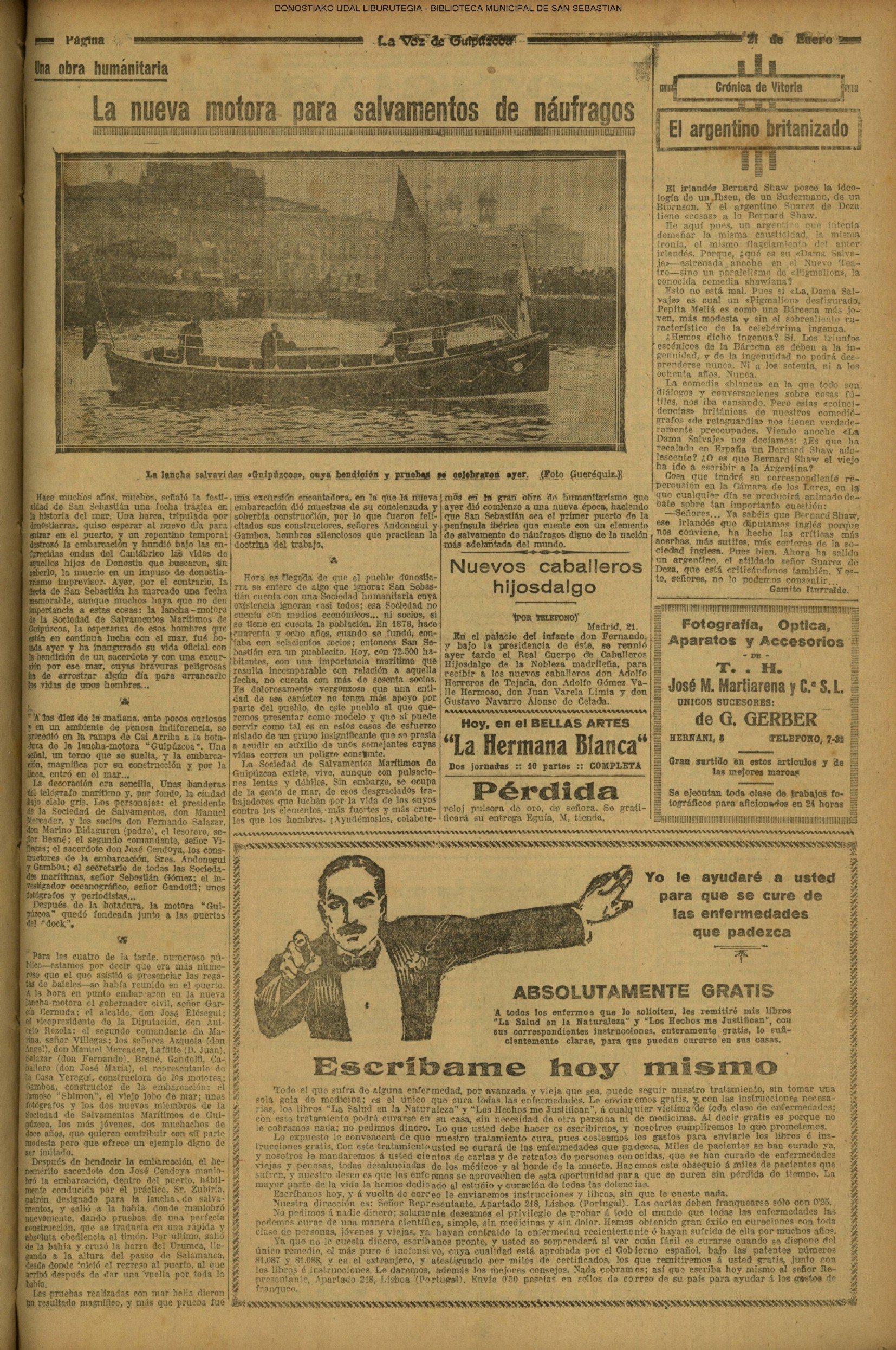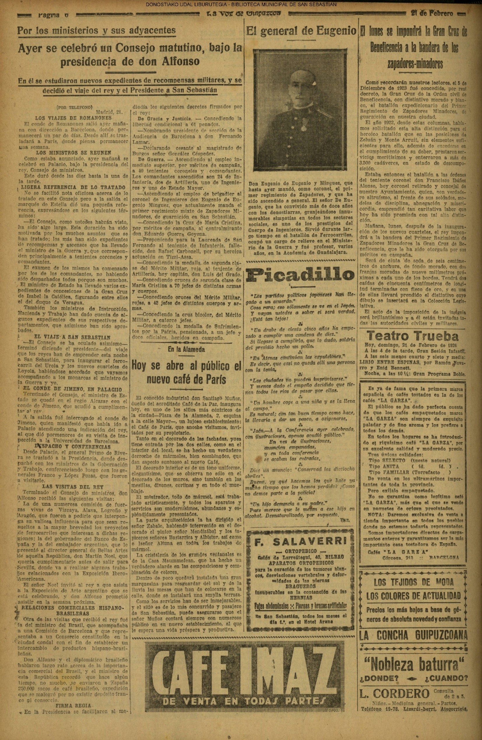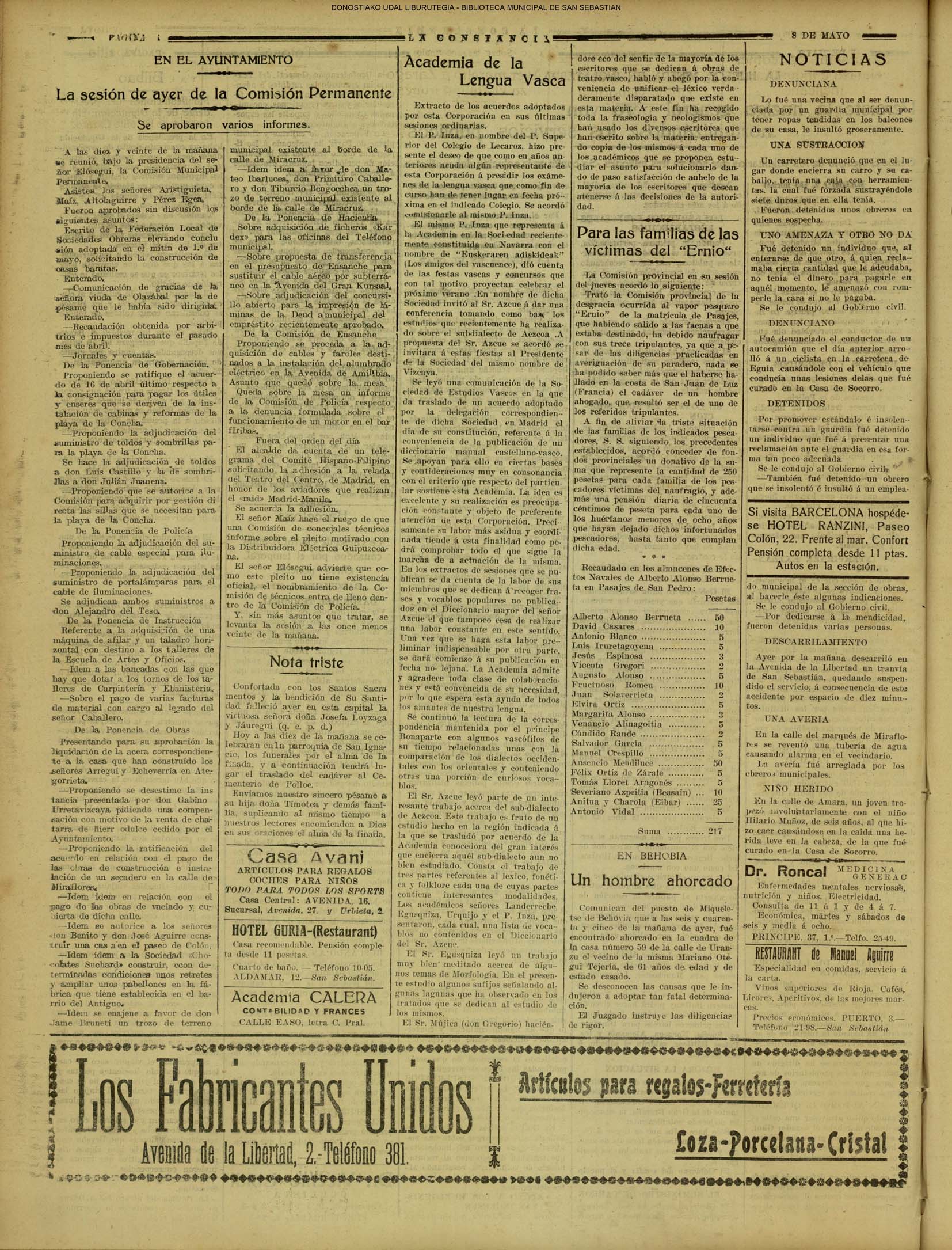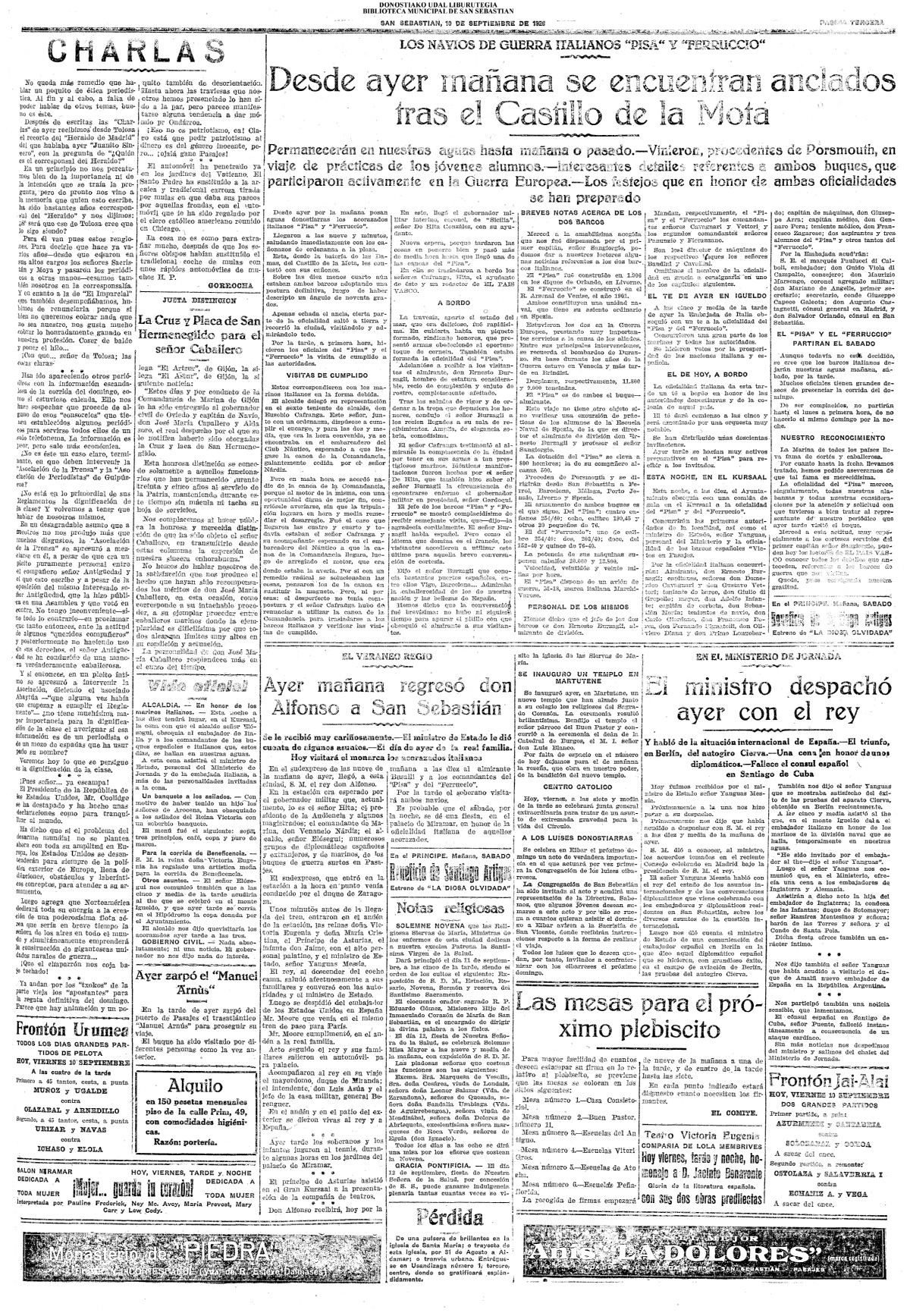 | 12 # El Ayuntamiento donostiarra otorga la Primera Medalla de Oro de la Ciudad a la Reina Maria Cristina. |