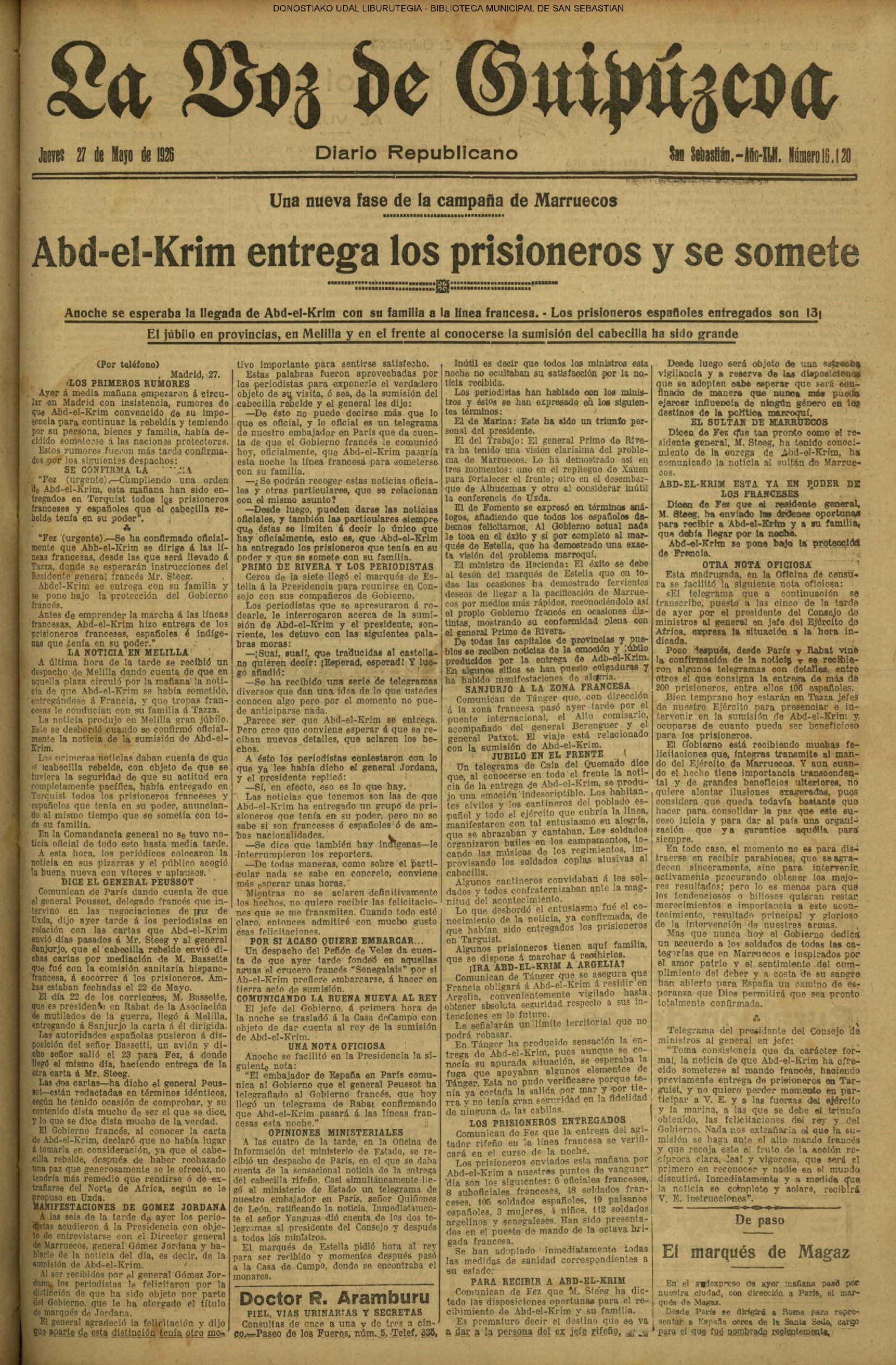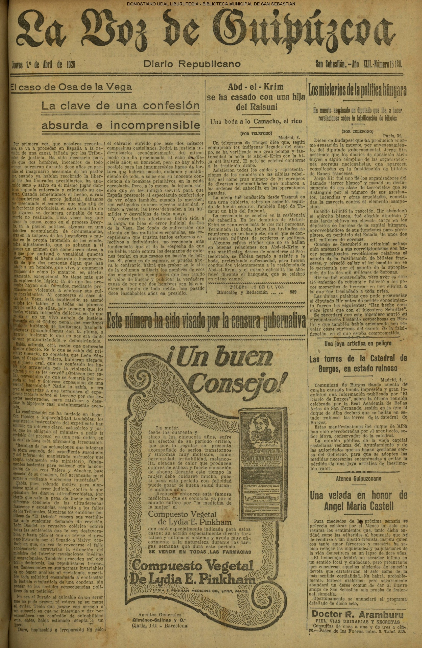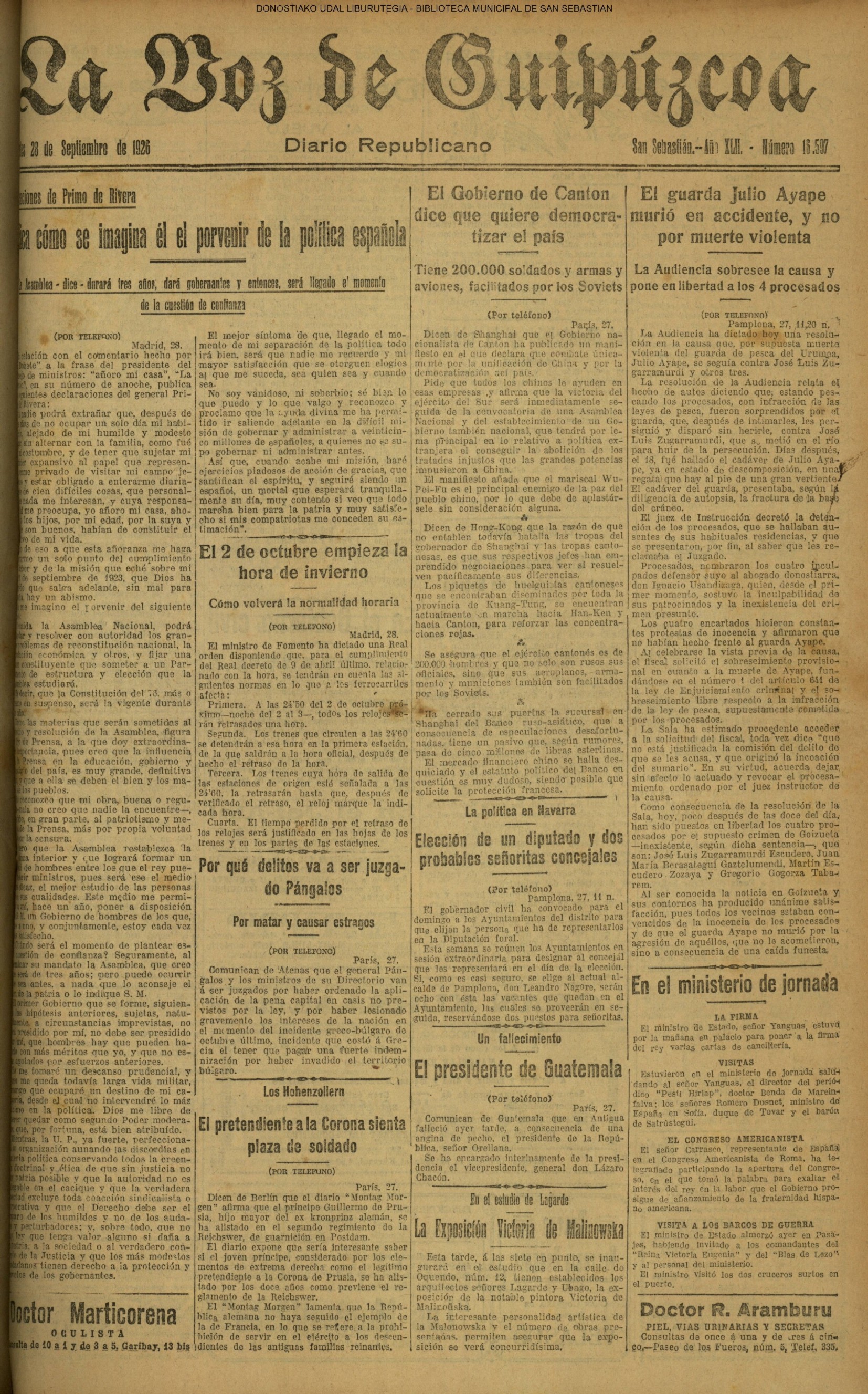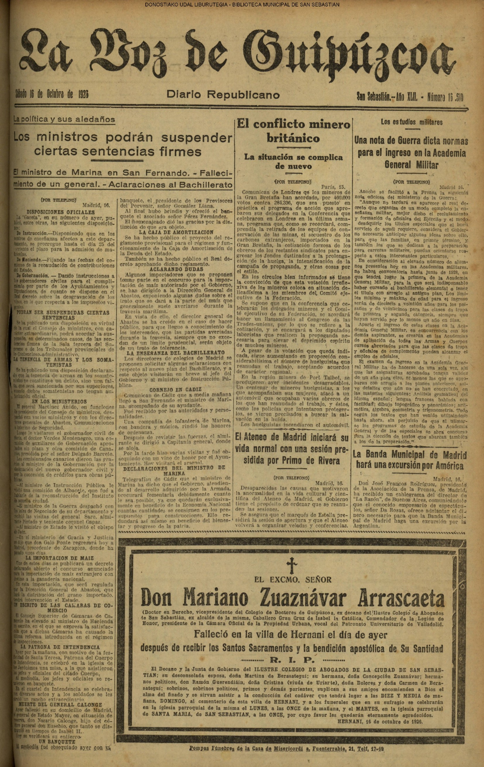 | 12 # El Ayuntamiento donostiarra otorga la Primera Medalla de Oro de la Ciudad a la Reina Maria Cristina. |