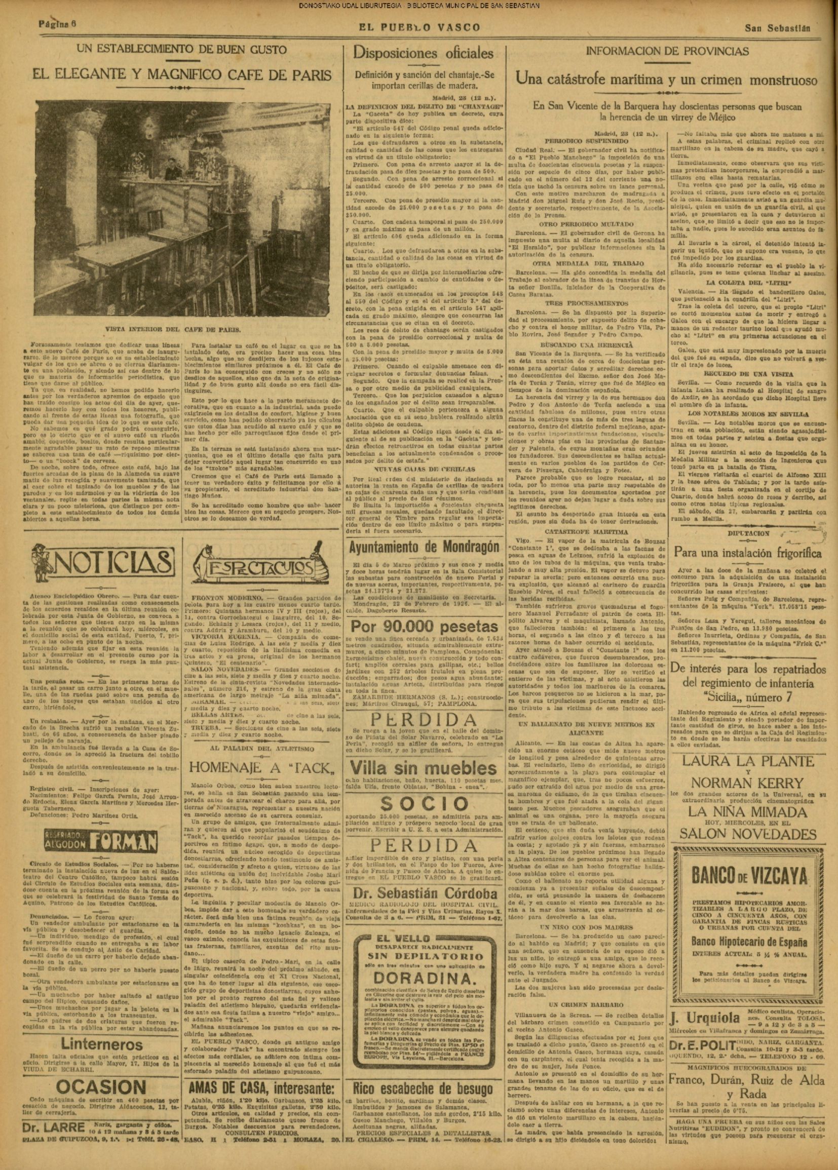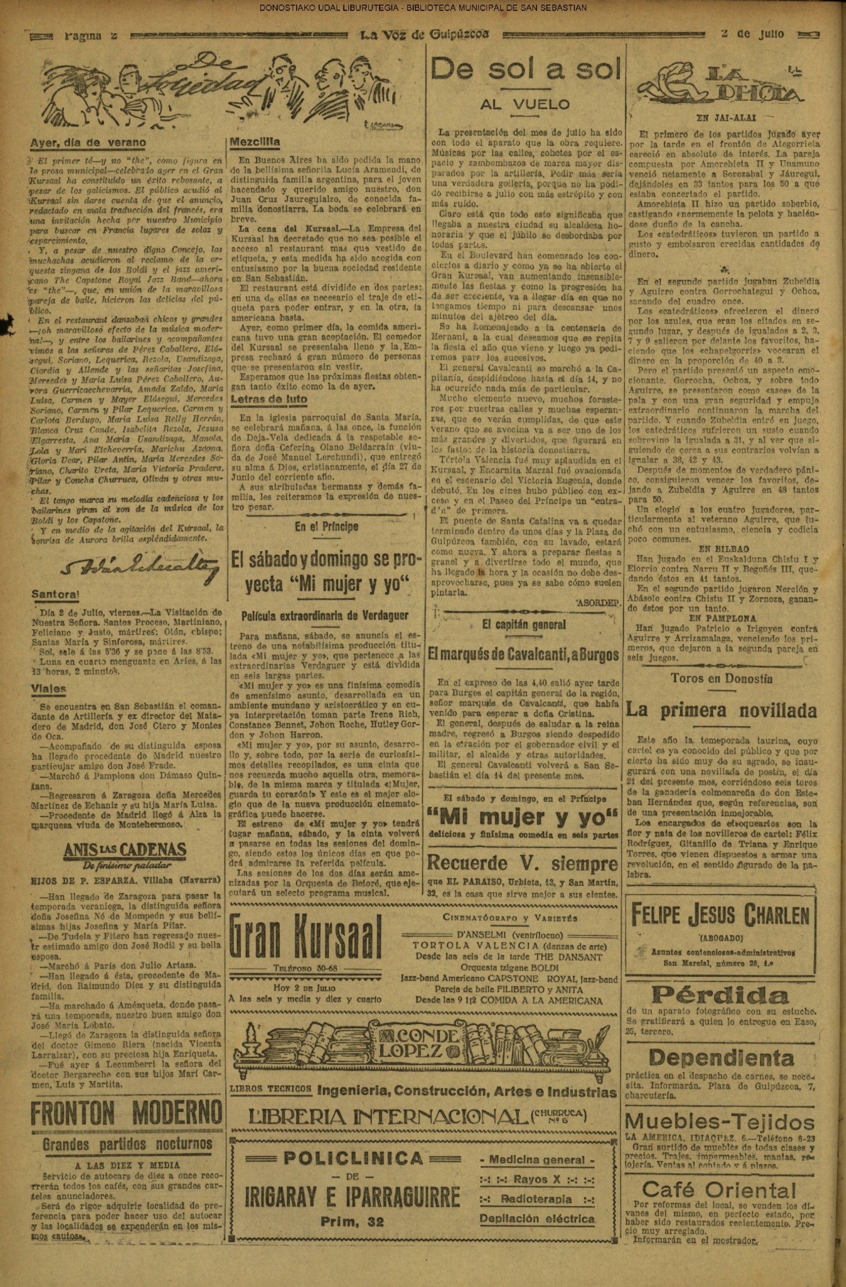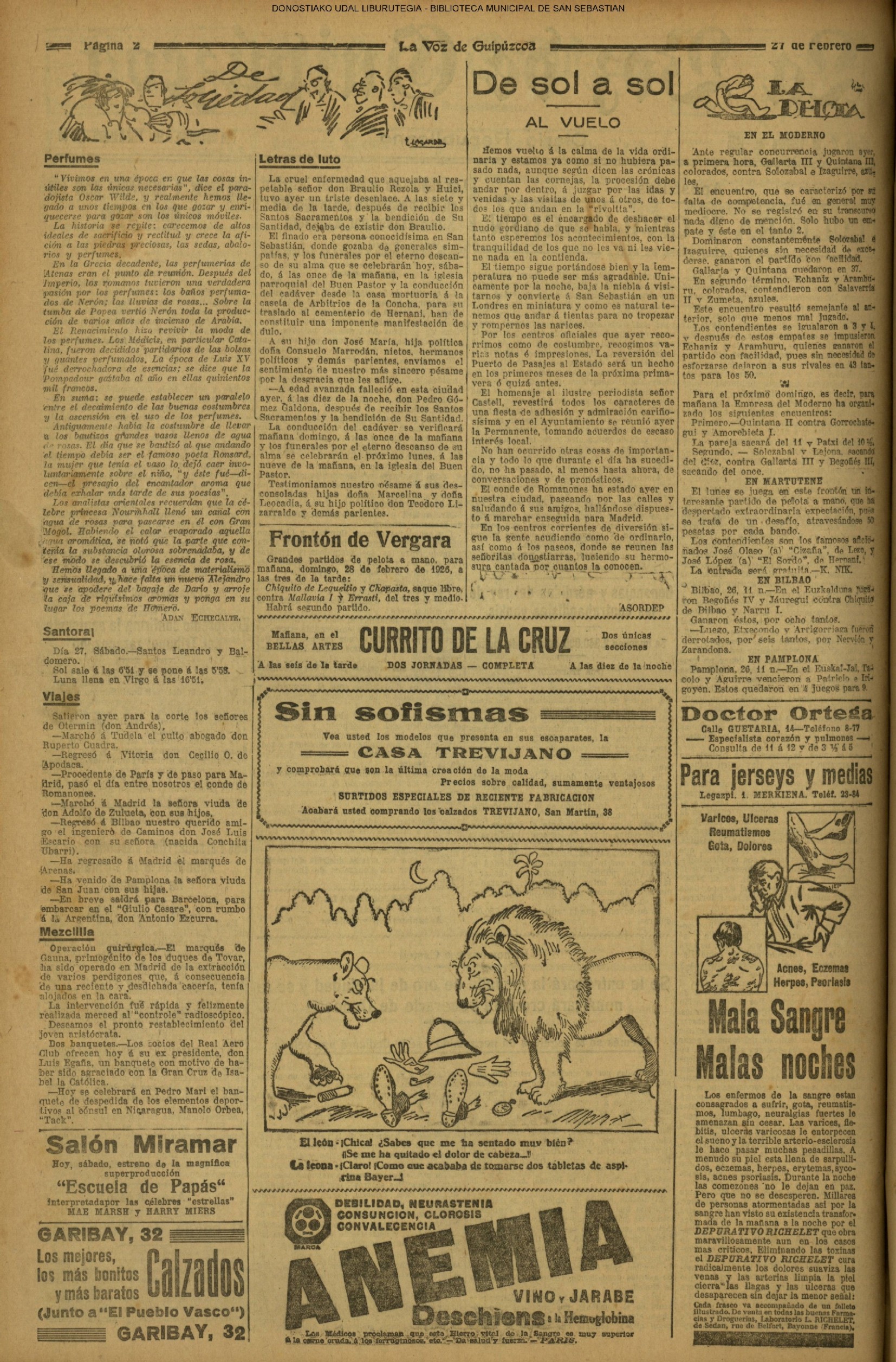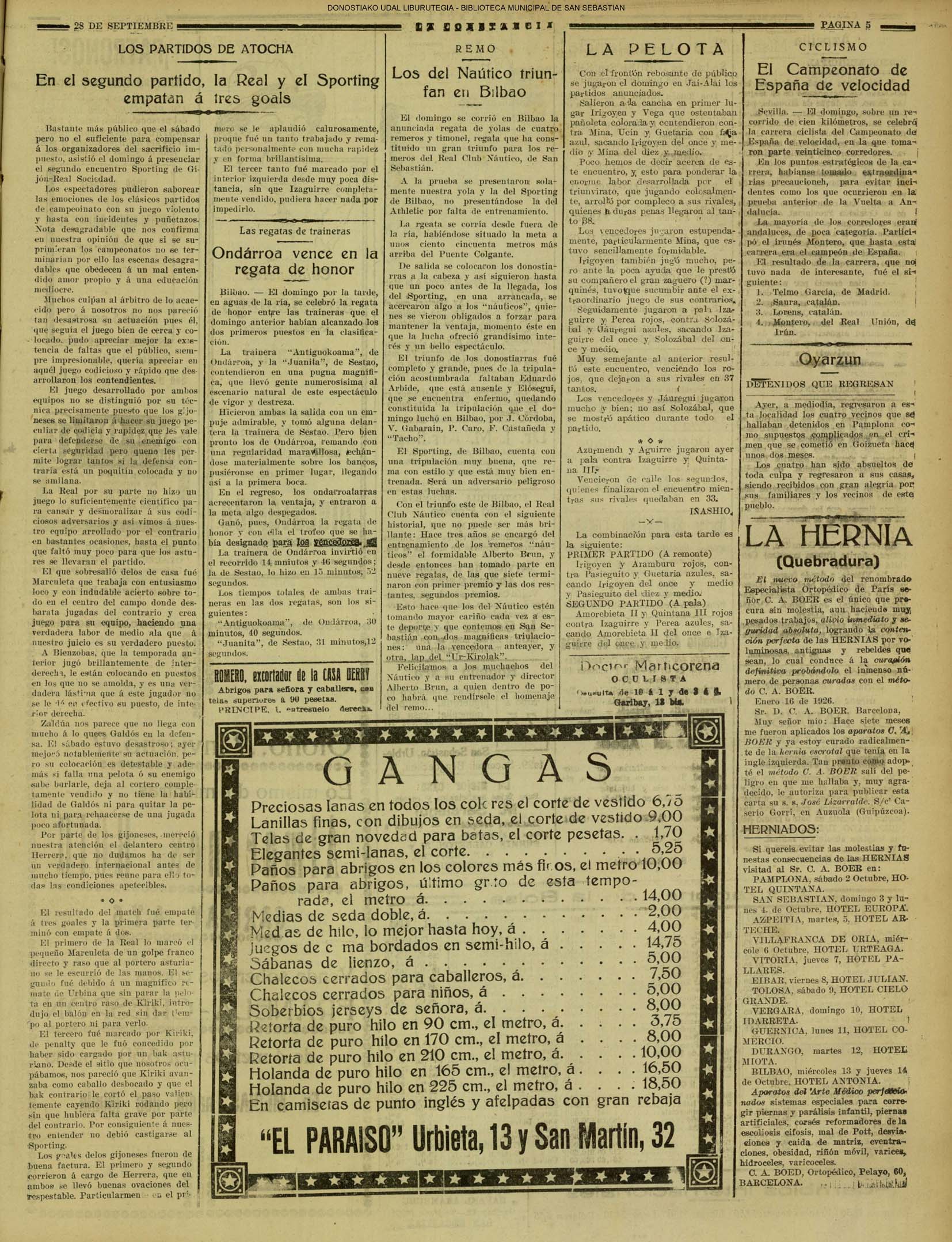 | 7 # Debido a la depreciación del Franco los Coliseos donostiarras se ven poco menos que desiertos. |