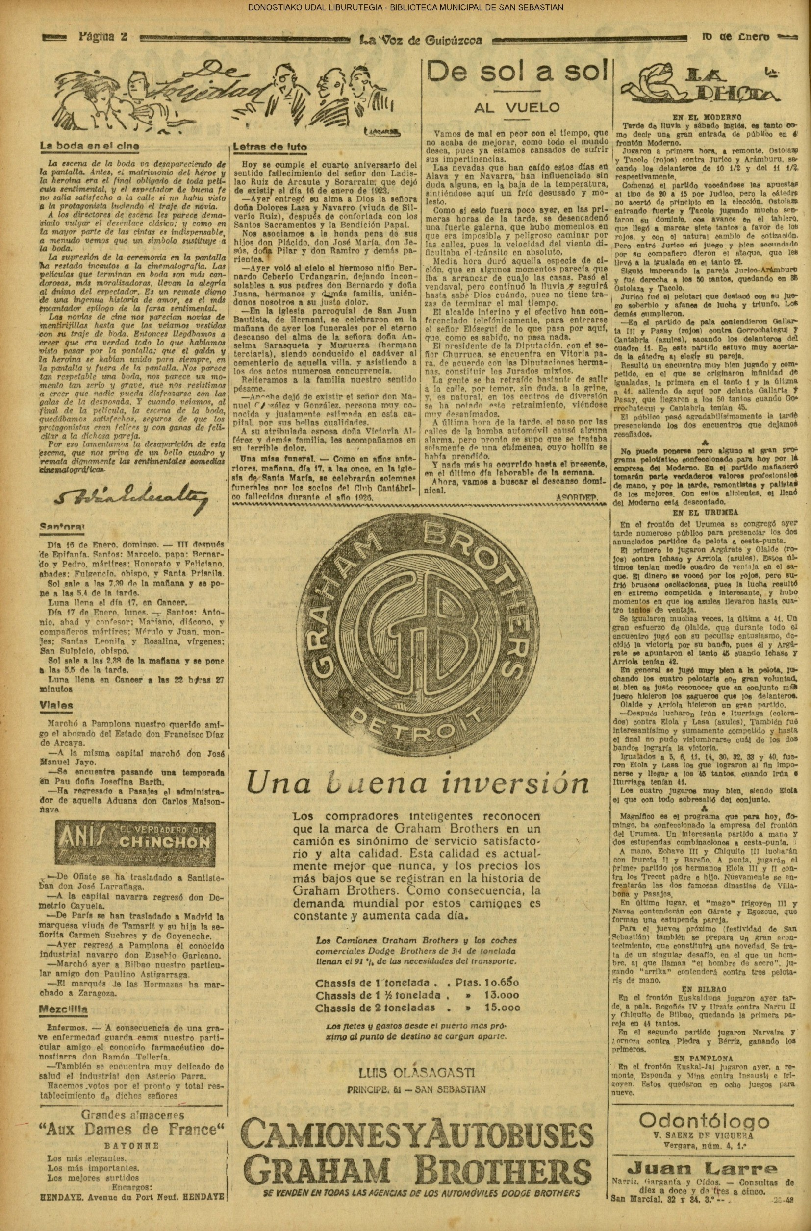 (1925).Tiene lugar el matrimonial enlace de don Juan Aizpitarte, empleado del Banco Guipuzcoano, y Juanita Aguirre, hermana del dueño del Restaurante "Pollitena".