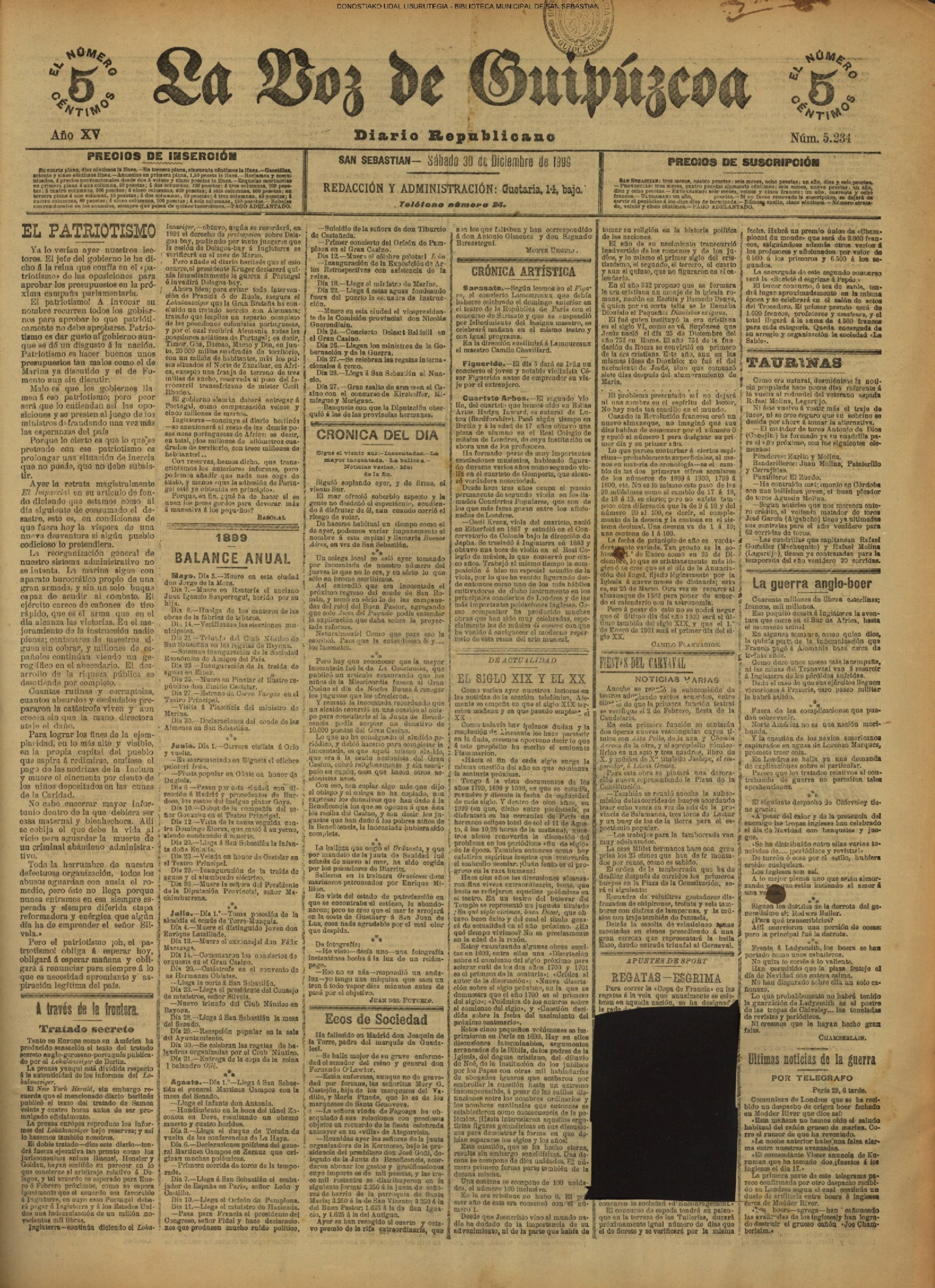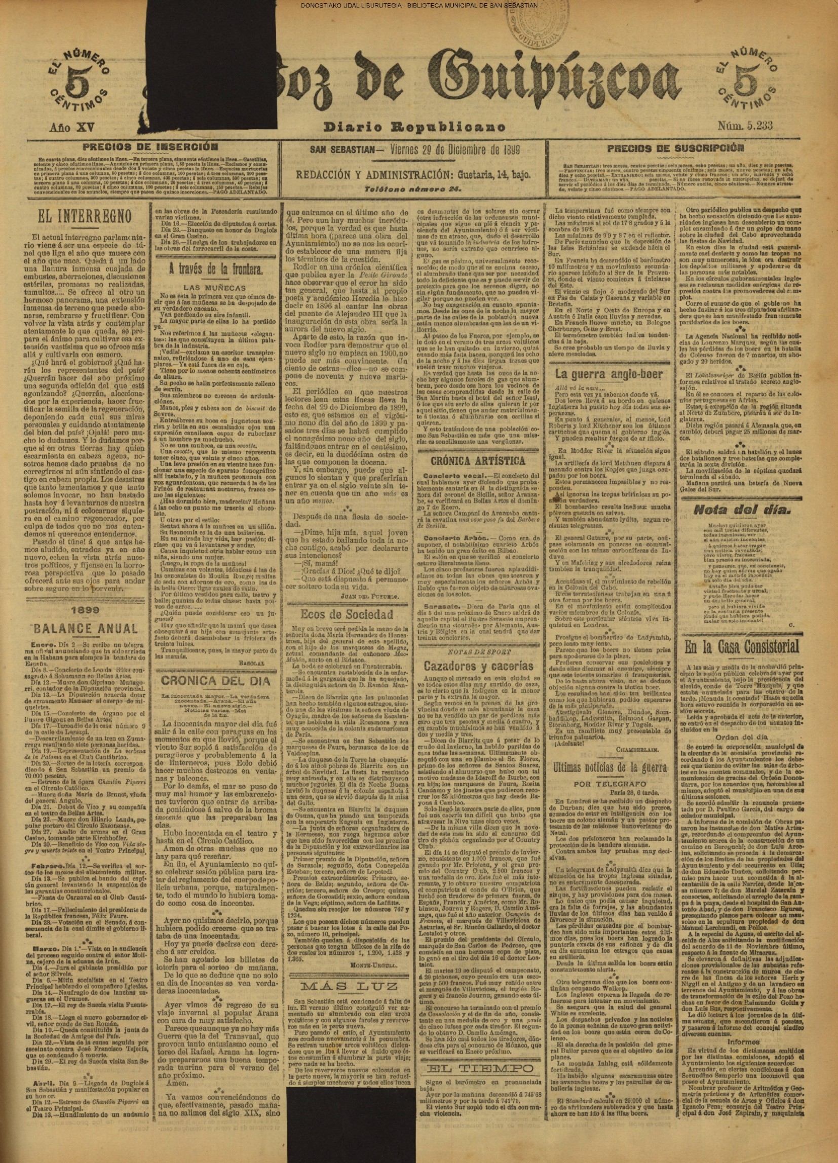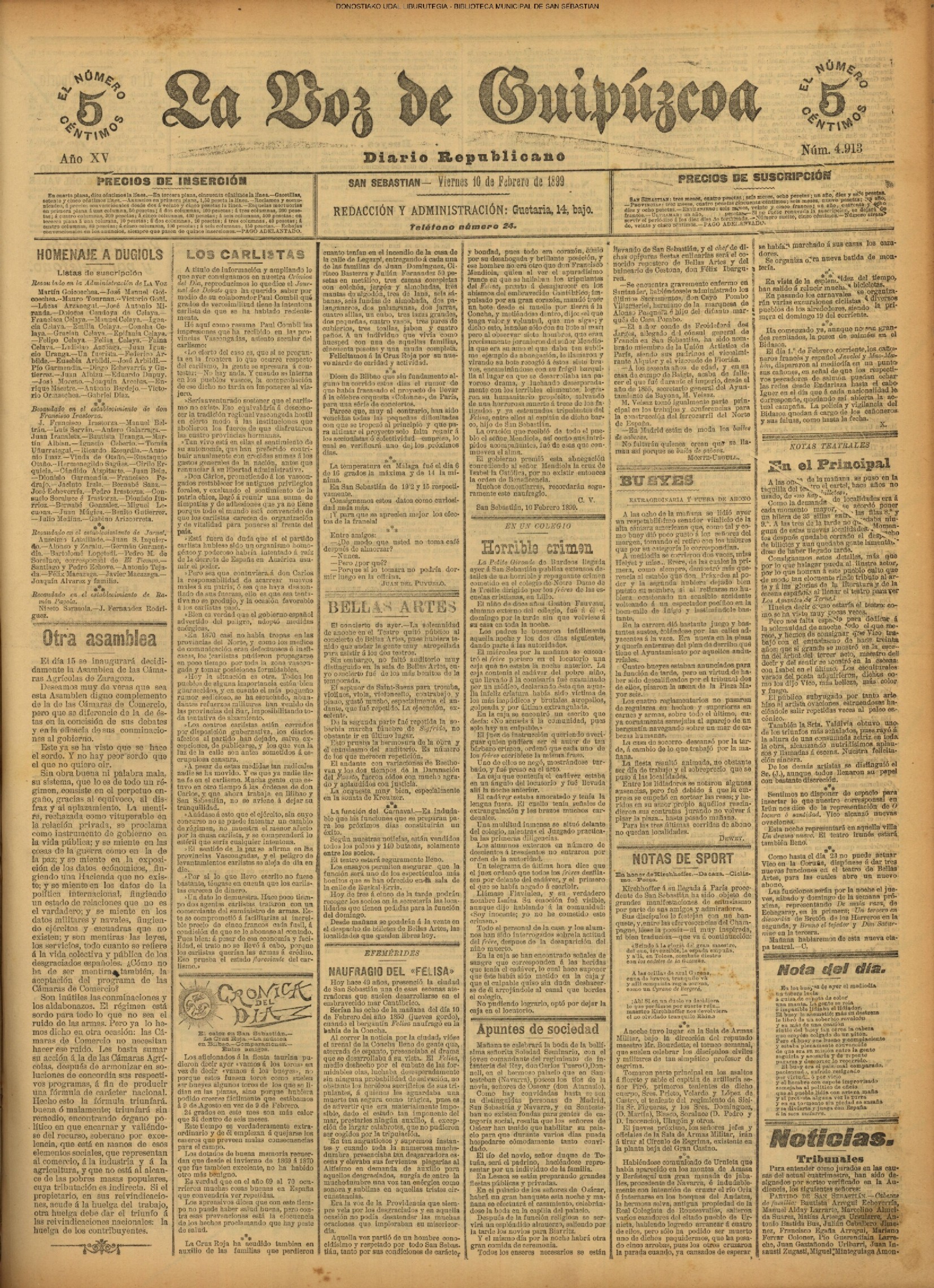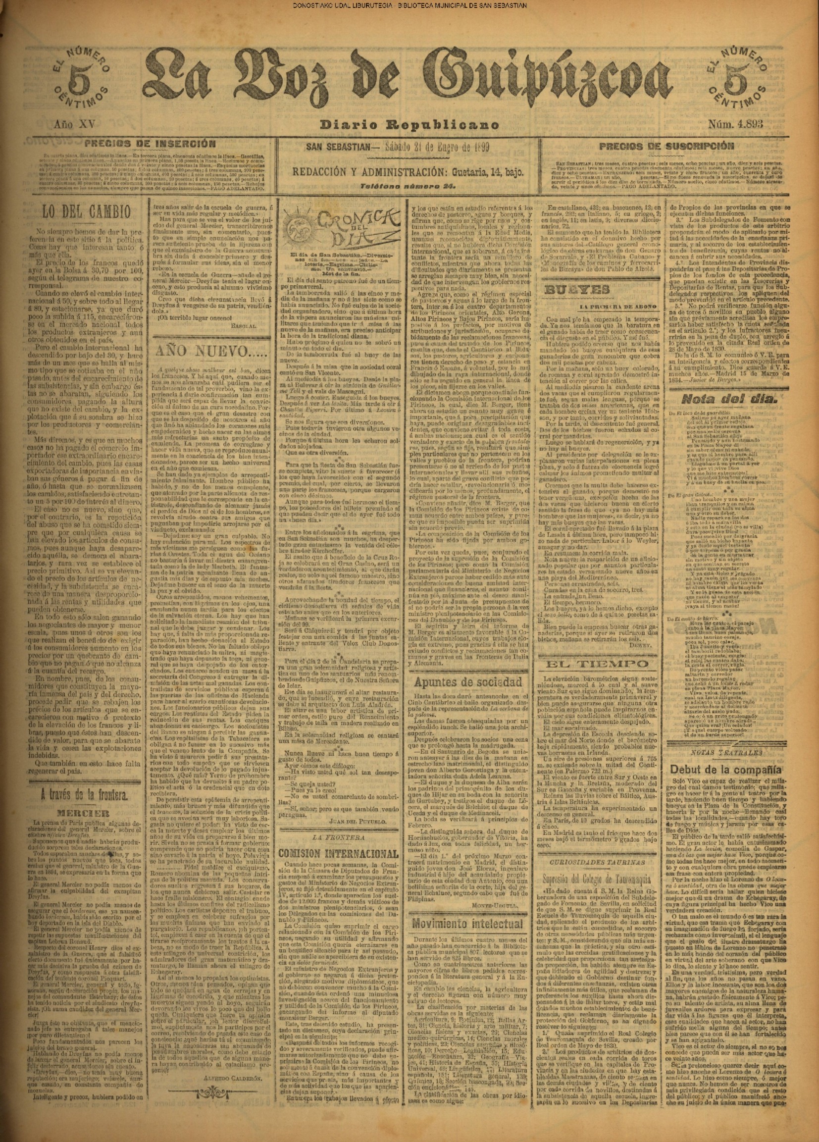 | 03/11/1899 RESEÑA DE LA PUESTA EN ESCENA DE LA VIEJECITA EN EL TEATRO PRINCIPAL DONOSTIARRA, CON GRAN EXITO. | ||||||