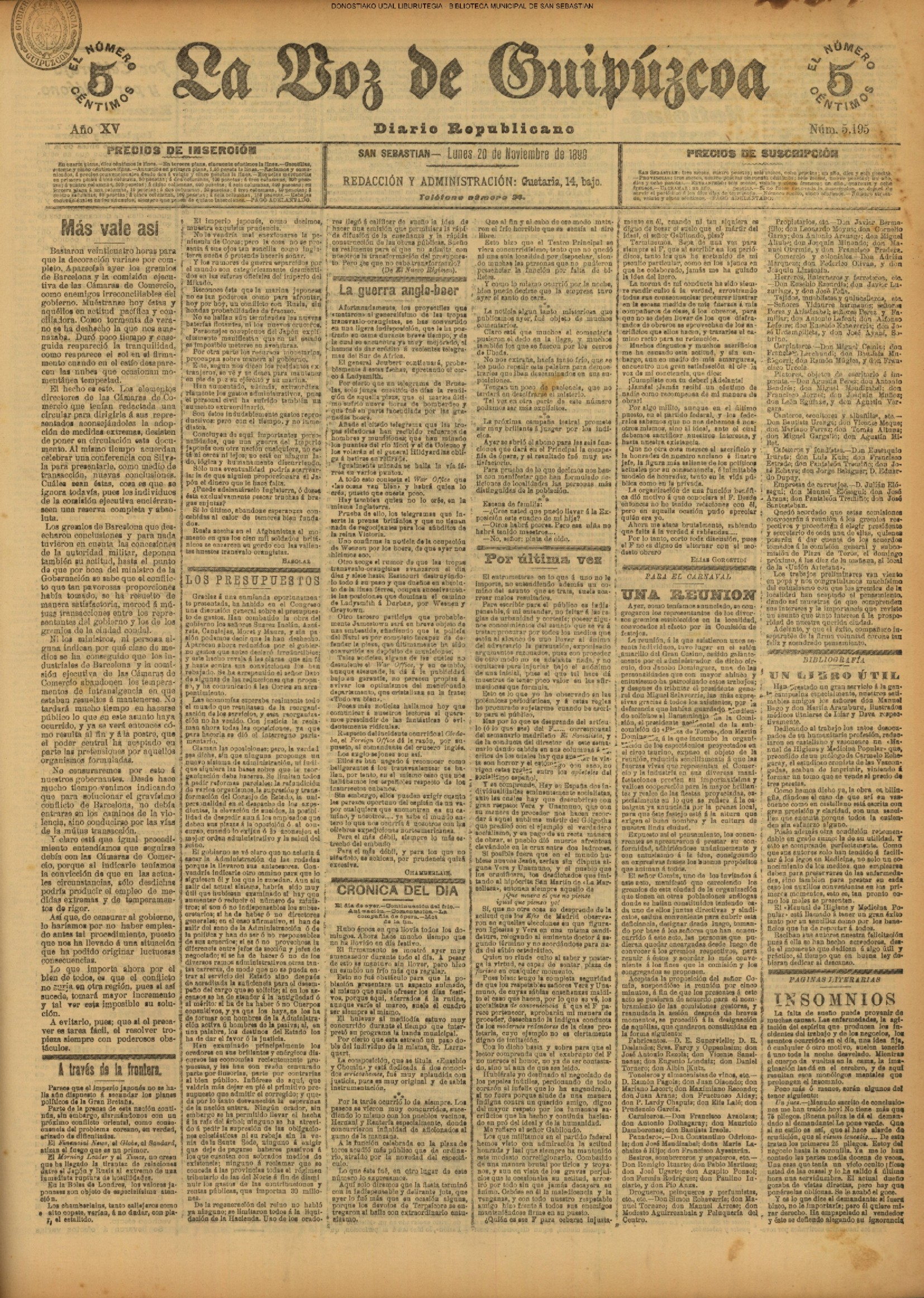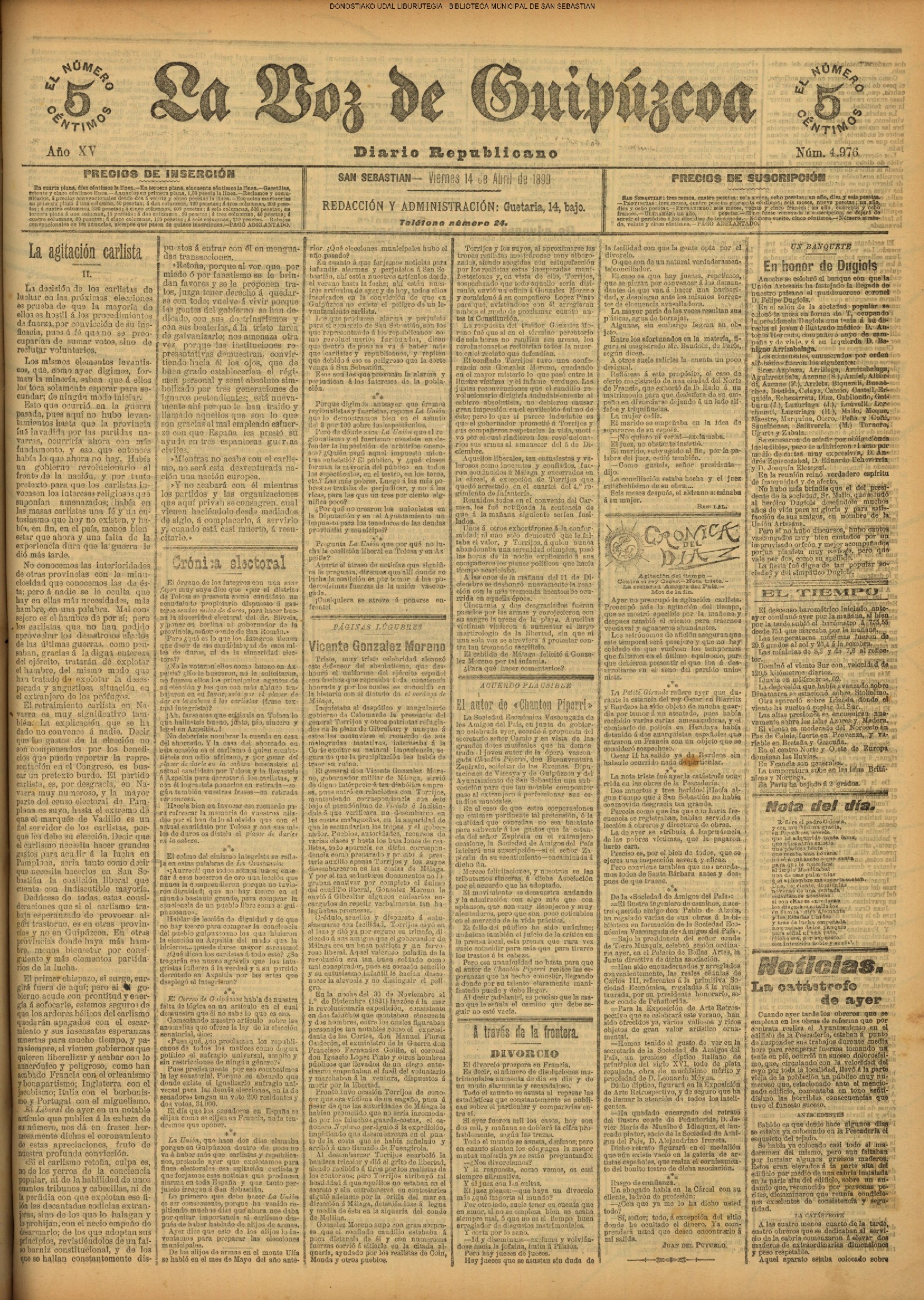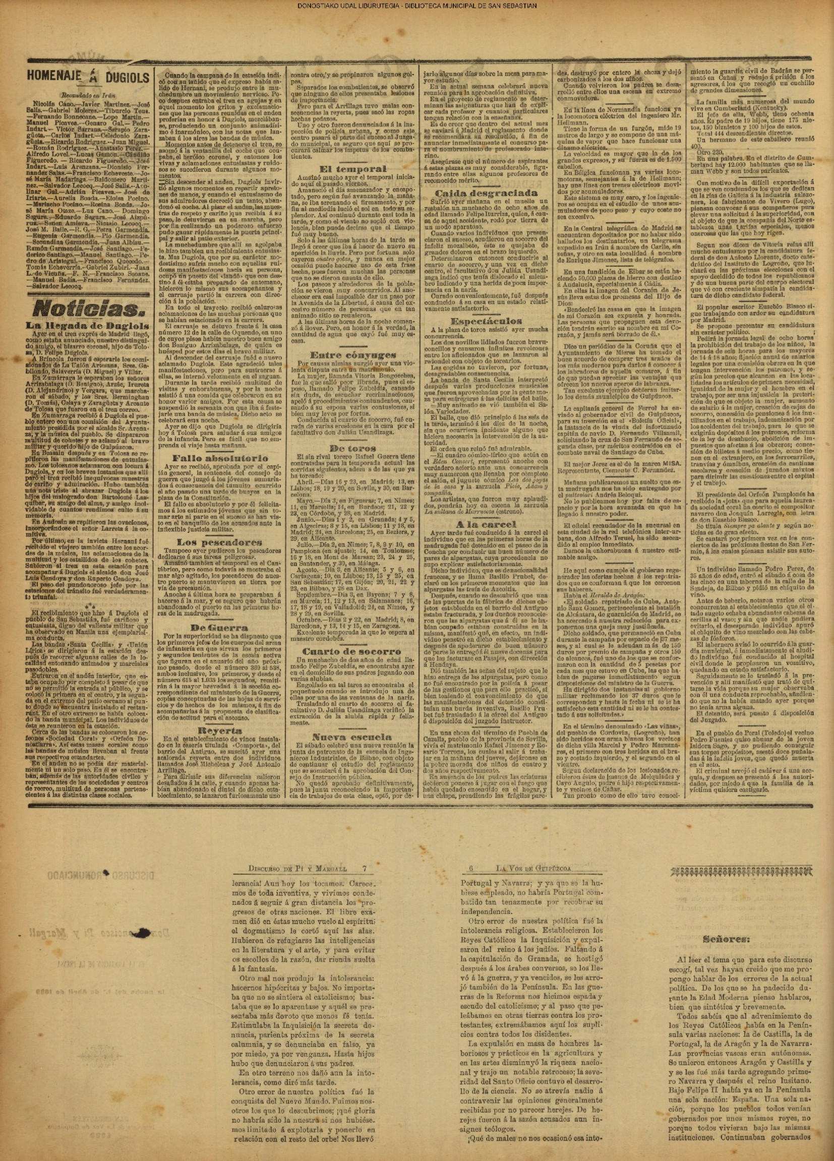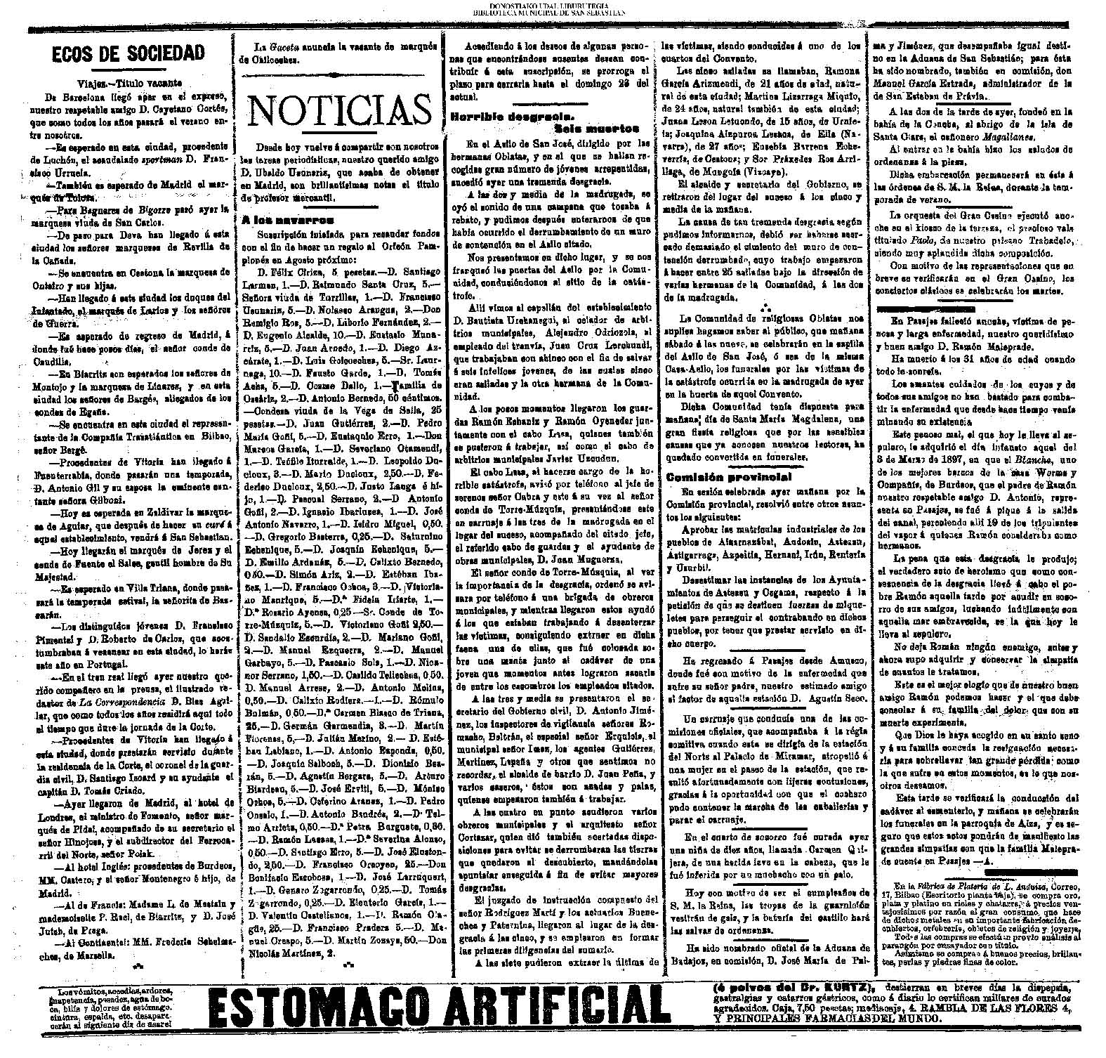 | 03/11/1899 RESEÑA DE LA PUESTA EN ESCENA DE LA VIEJECITA EN EL TEATRO PRINCIPAL DONOSTIARRA, CON GRAN EXITO. | ||||||