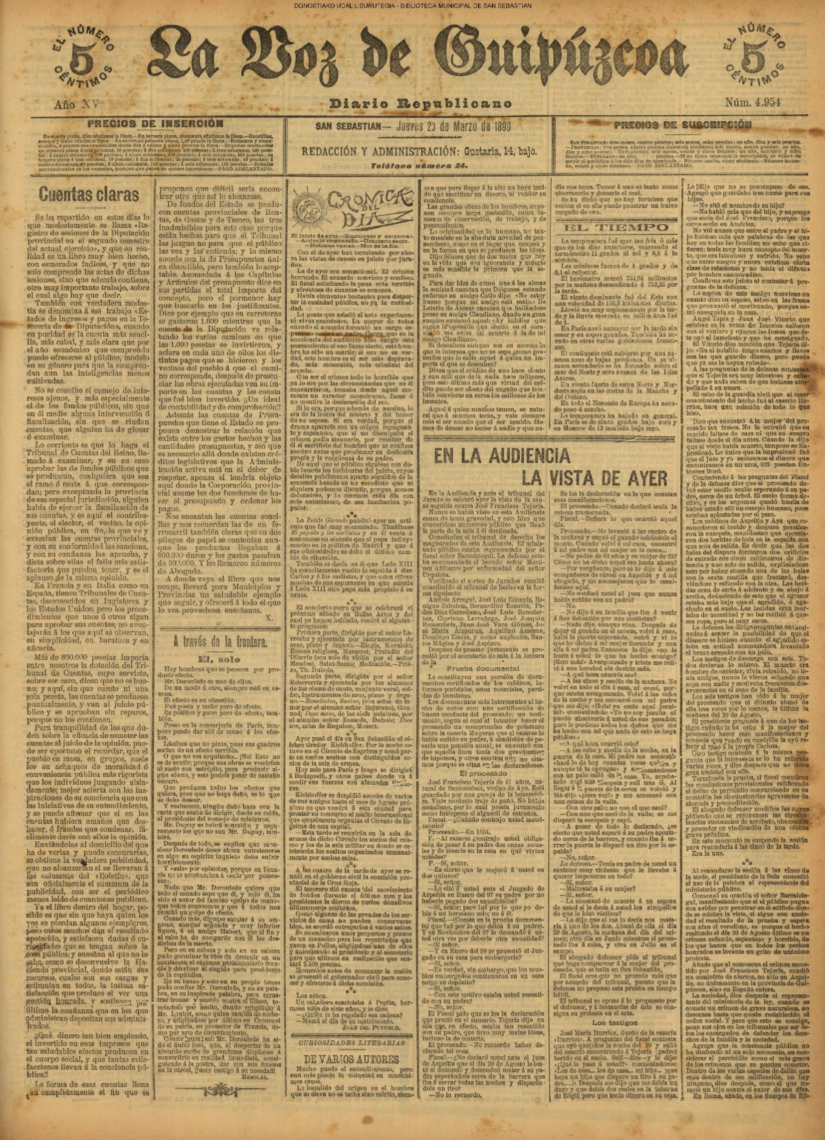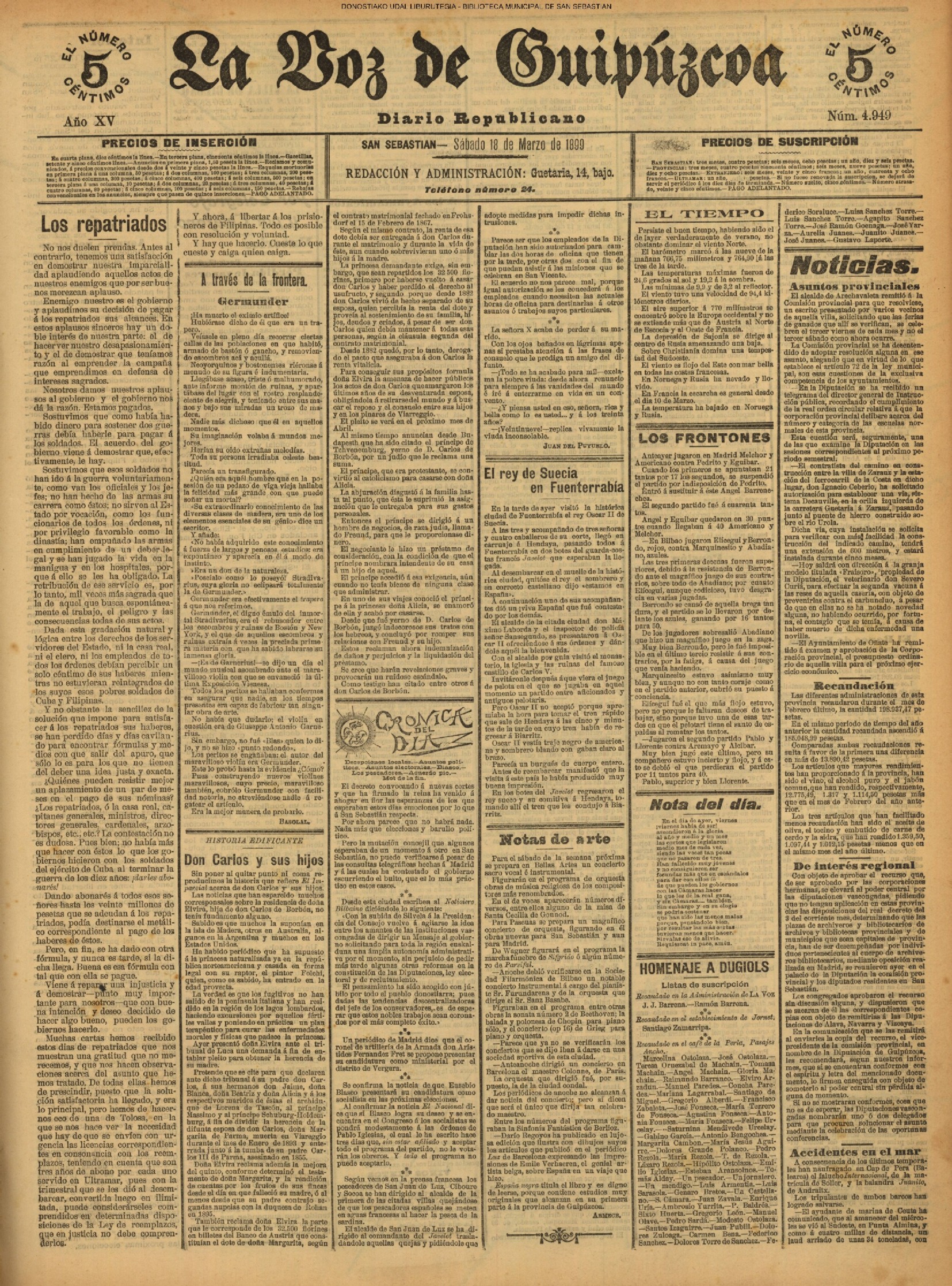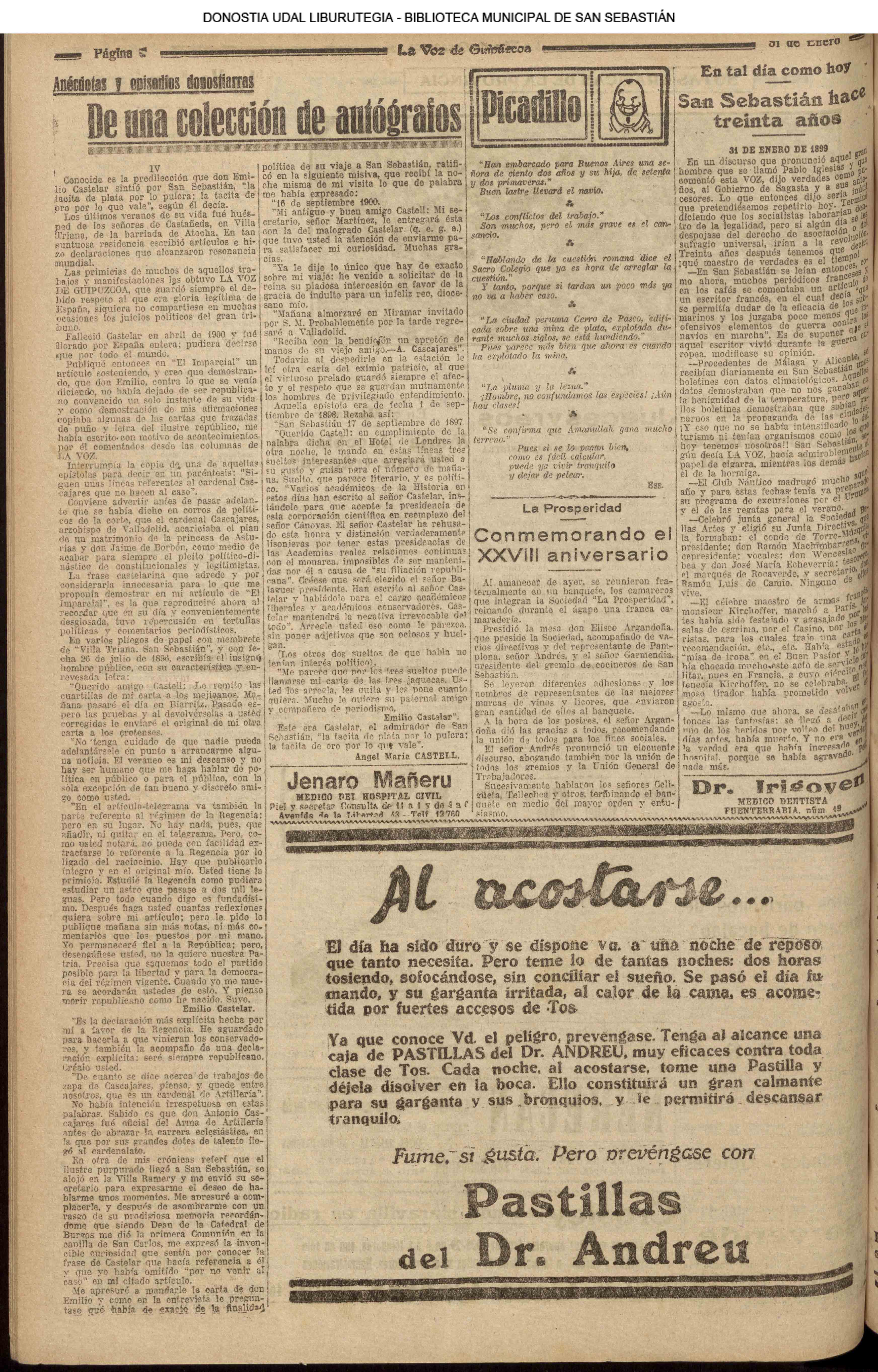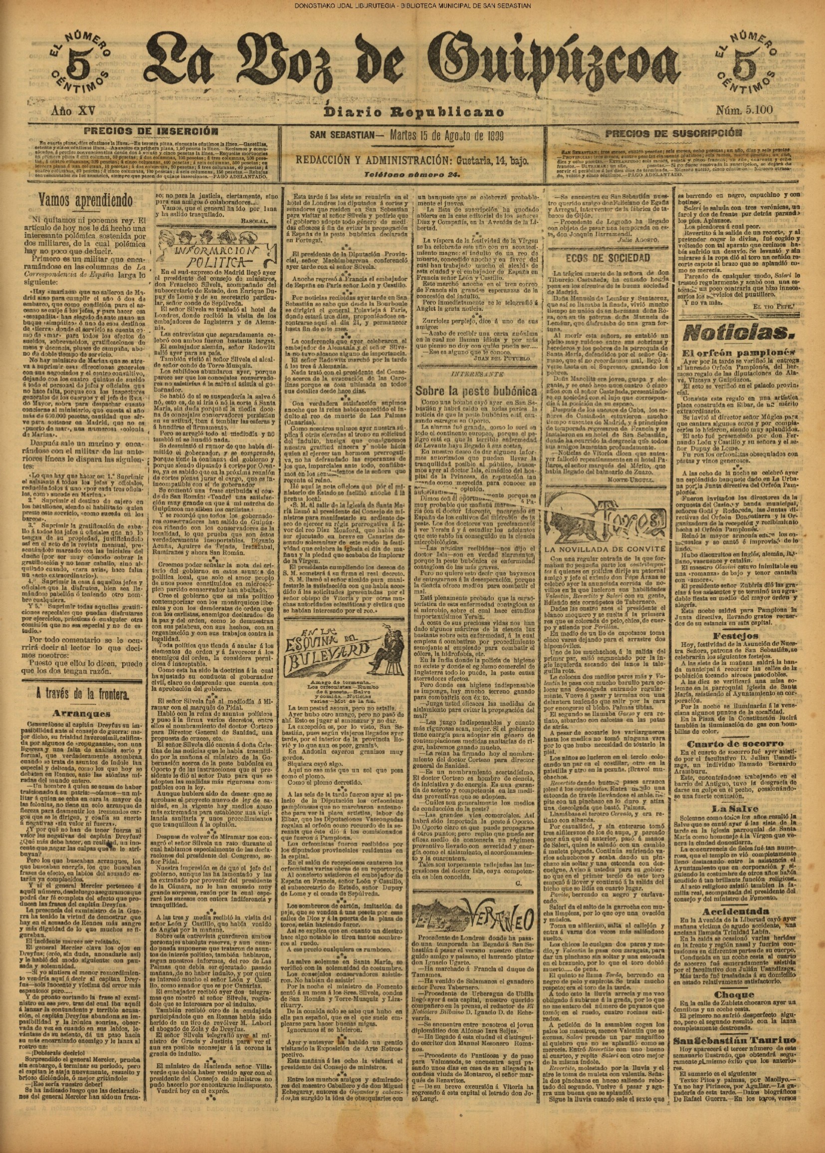 | 03/11/1899 RESEÑA DE LA PUESTA EN ESCENA DE LA VIEJECITA EN EL TEATRO PRINCIPAL DONOSTIARRA, CON GRAN EXITO. | ||||||