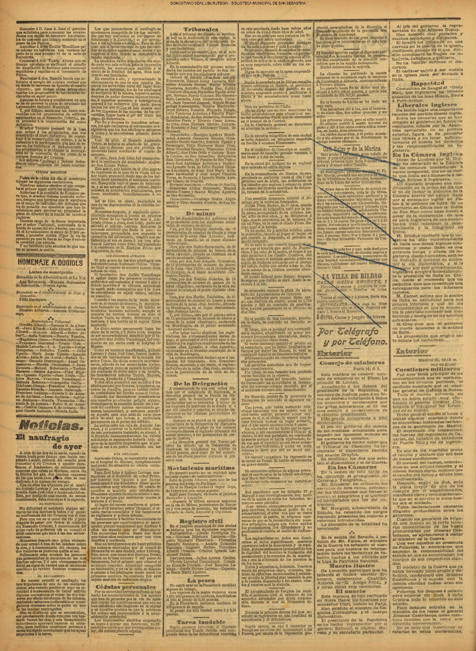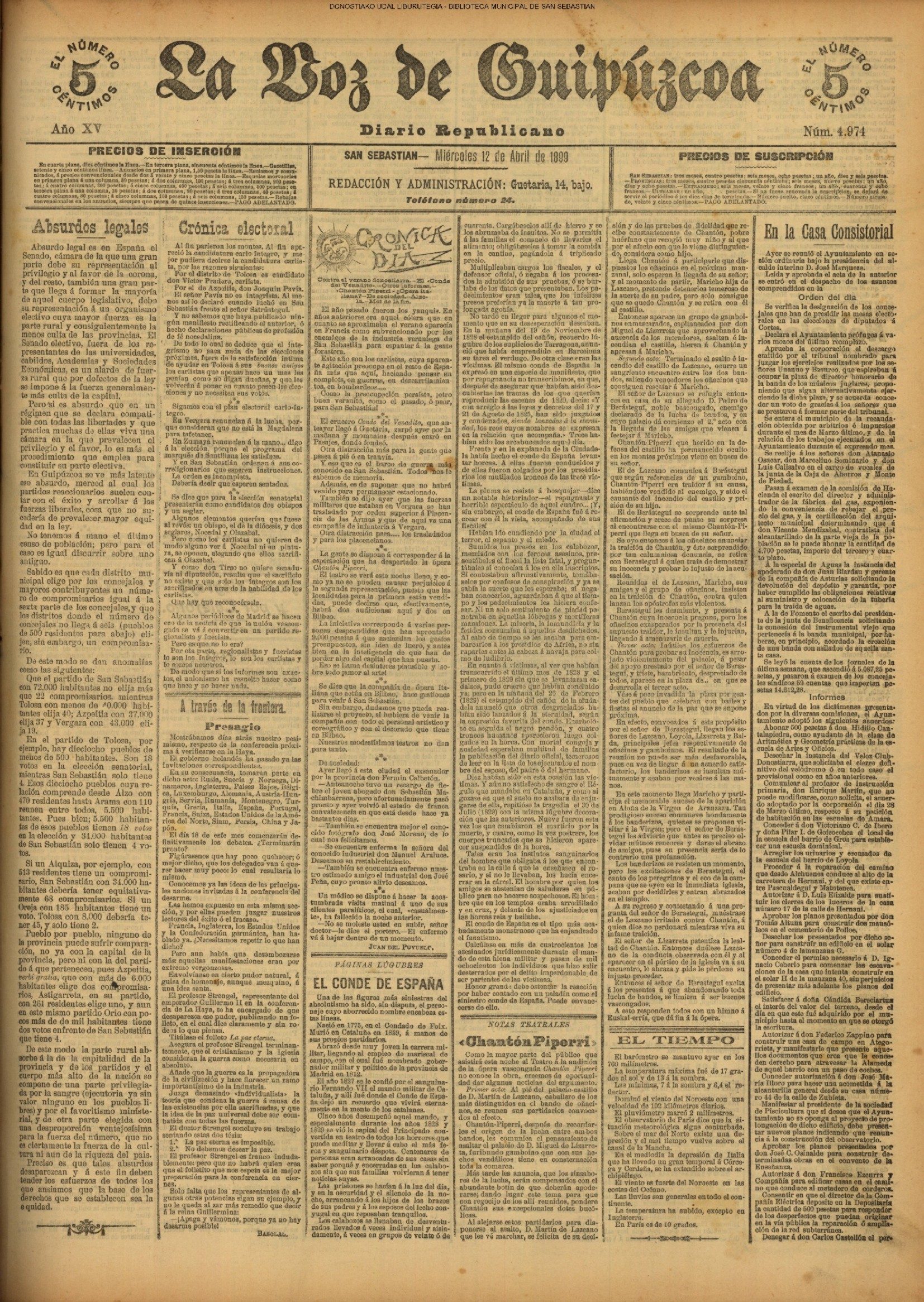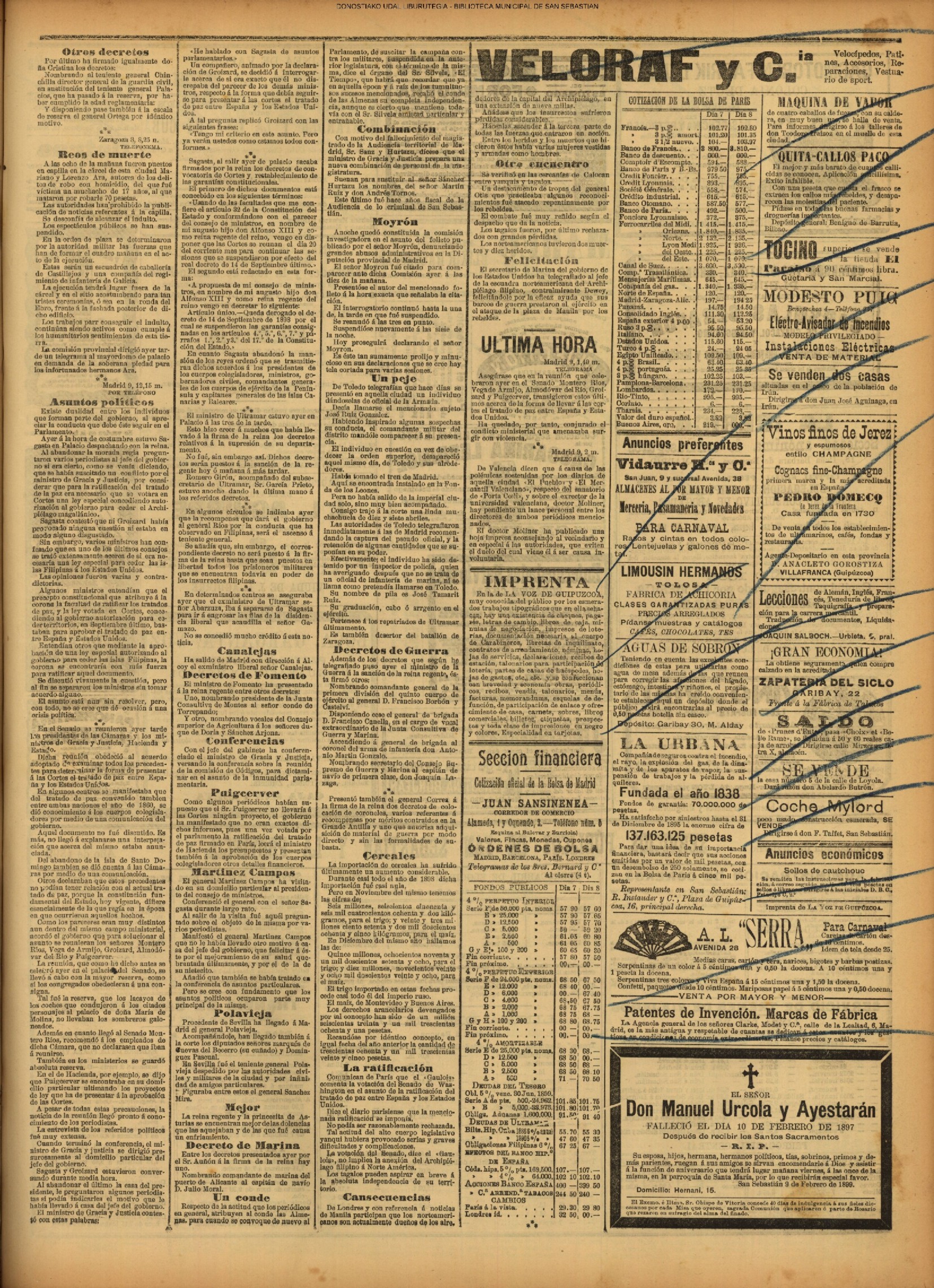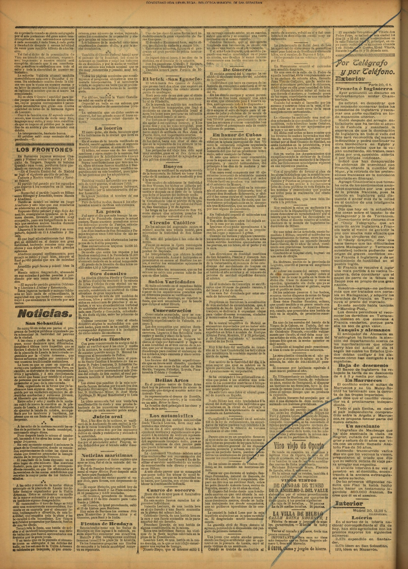 | 03/11/1899 RESEÑA DE LA PUESTA EN ESCENA DE LA VIEJECITA EN EL TEATRO PRINCIPAL DONOSTIARRA, CON GRAN EXITO. | ||||||