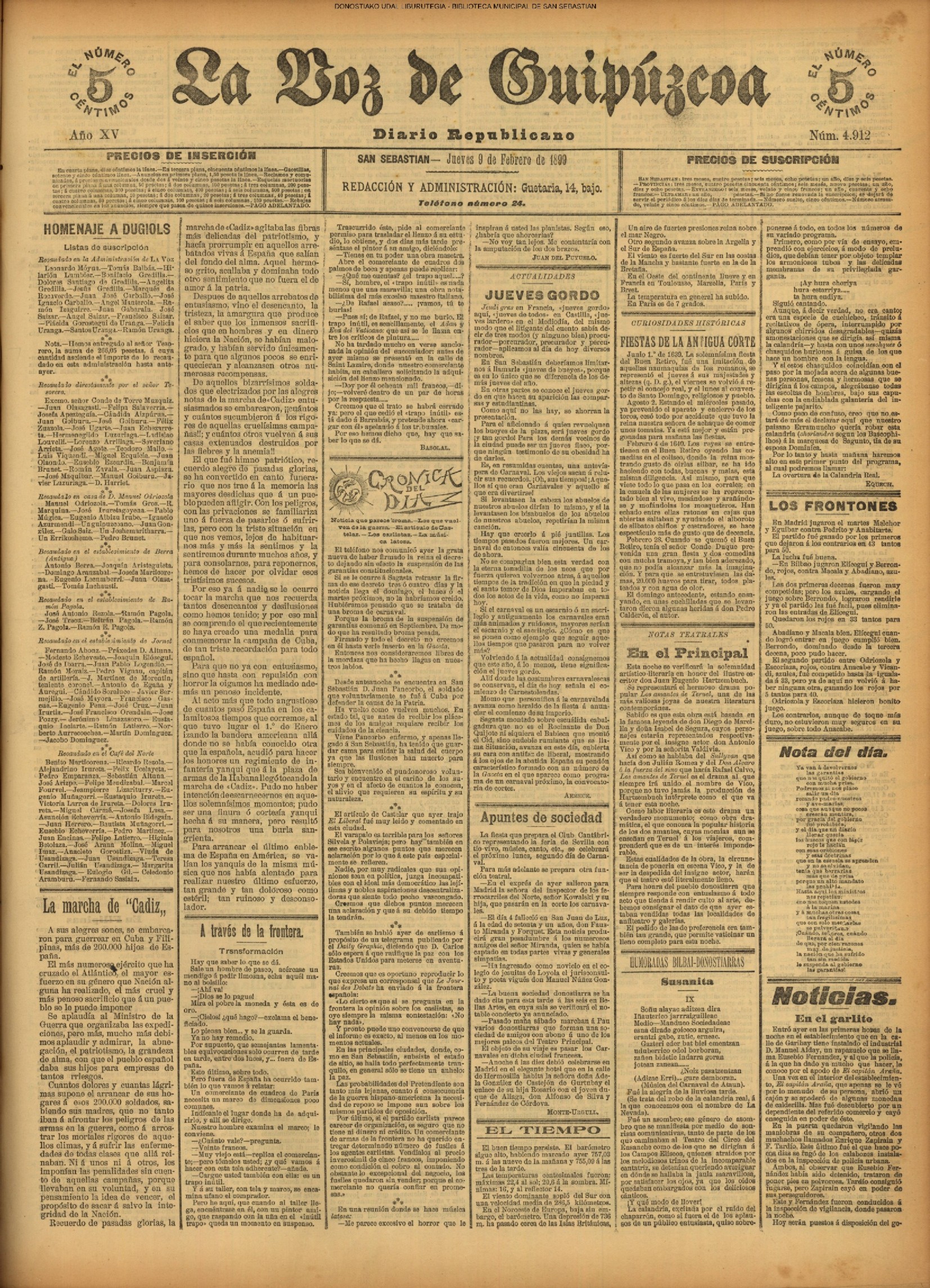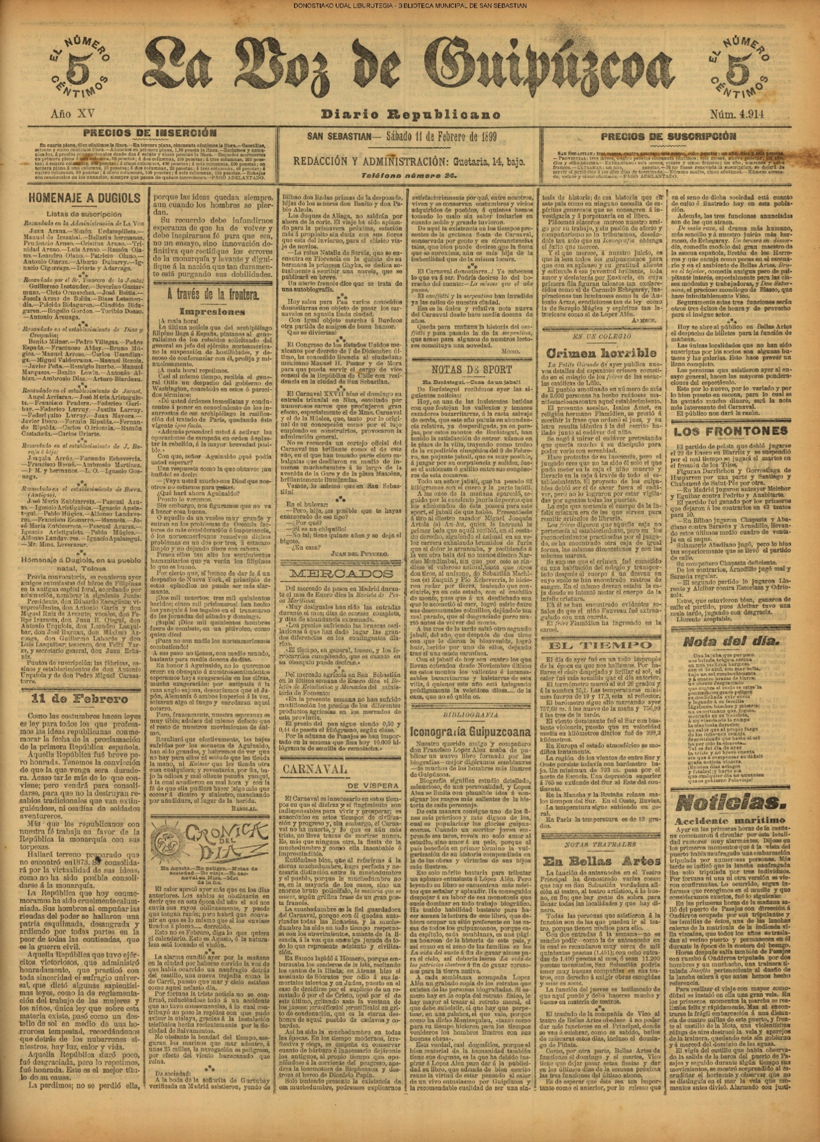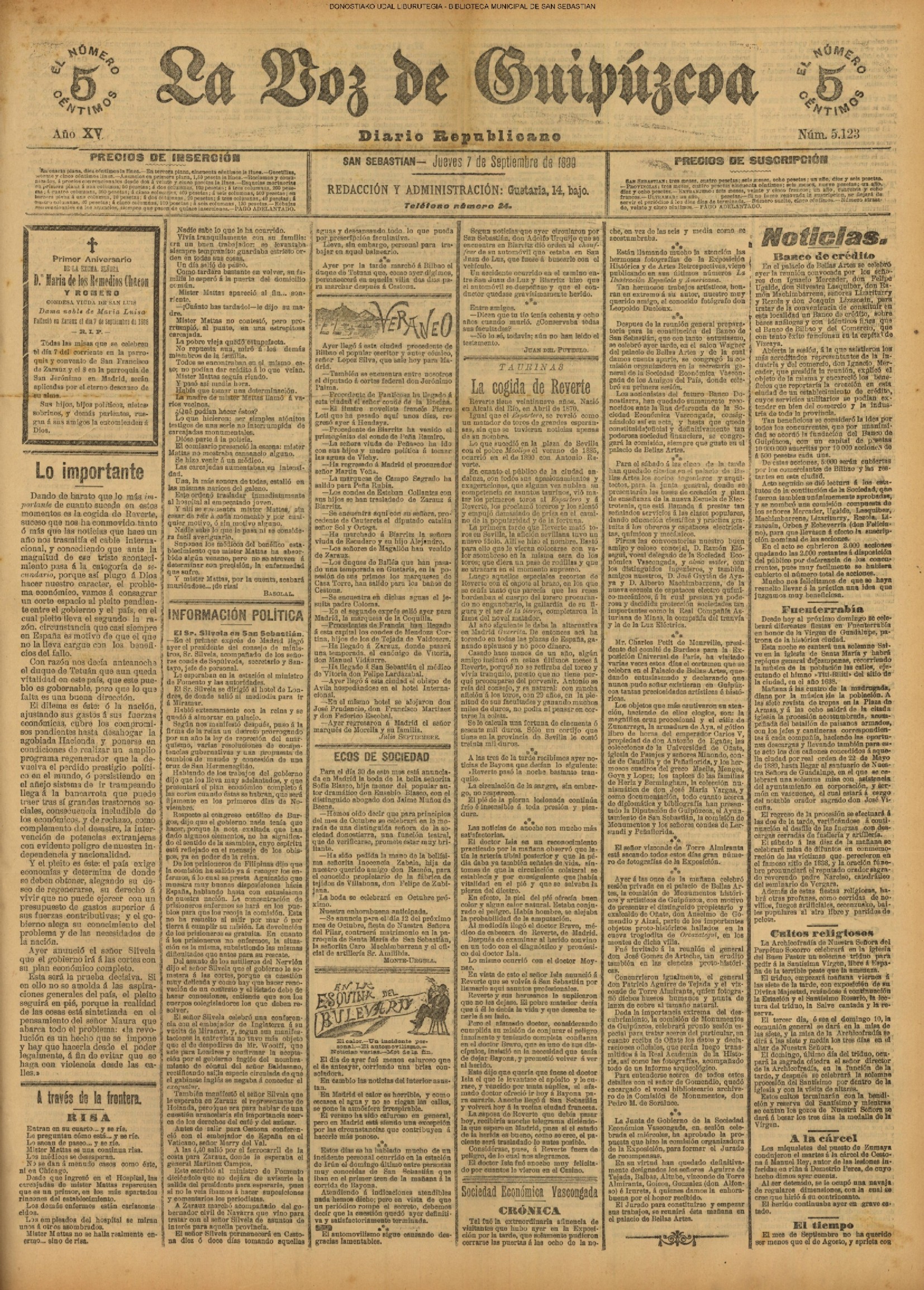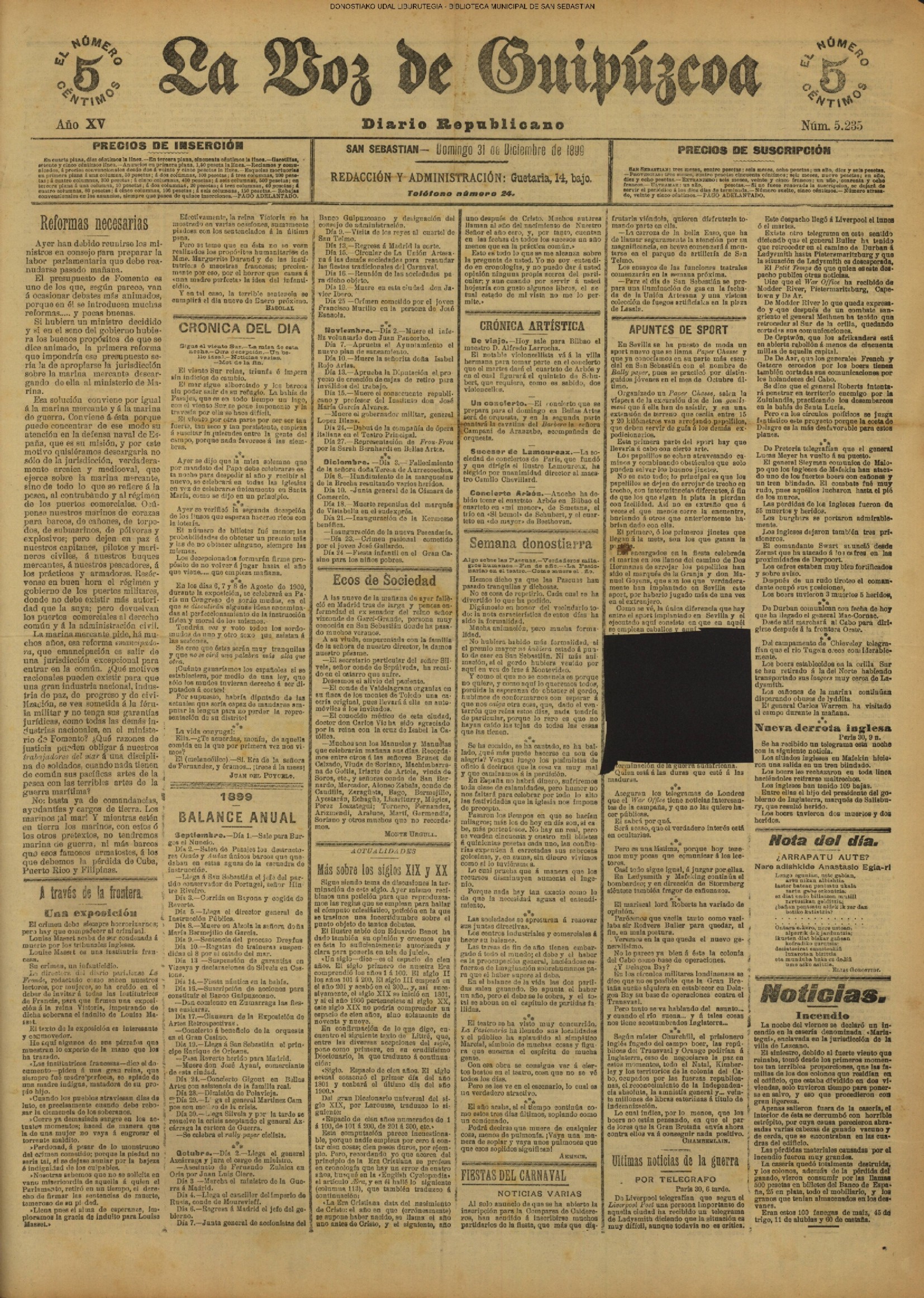 | 04/11/1899COMUNICAN QUE ESTE VERANO HABRA TREN ELGOIBAR-DONOSTIA. | ||||||