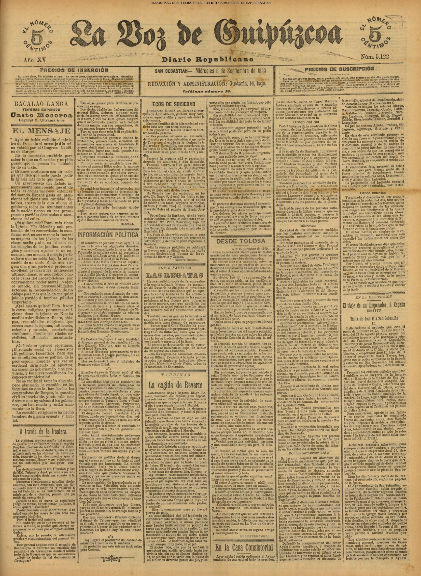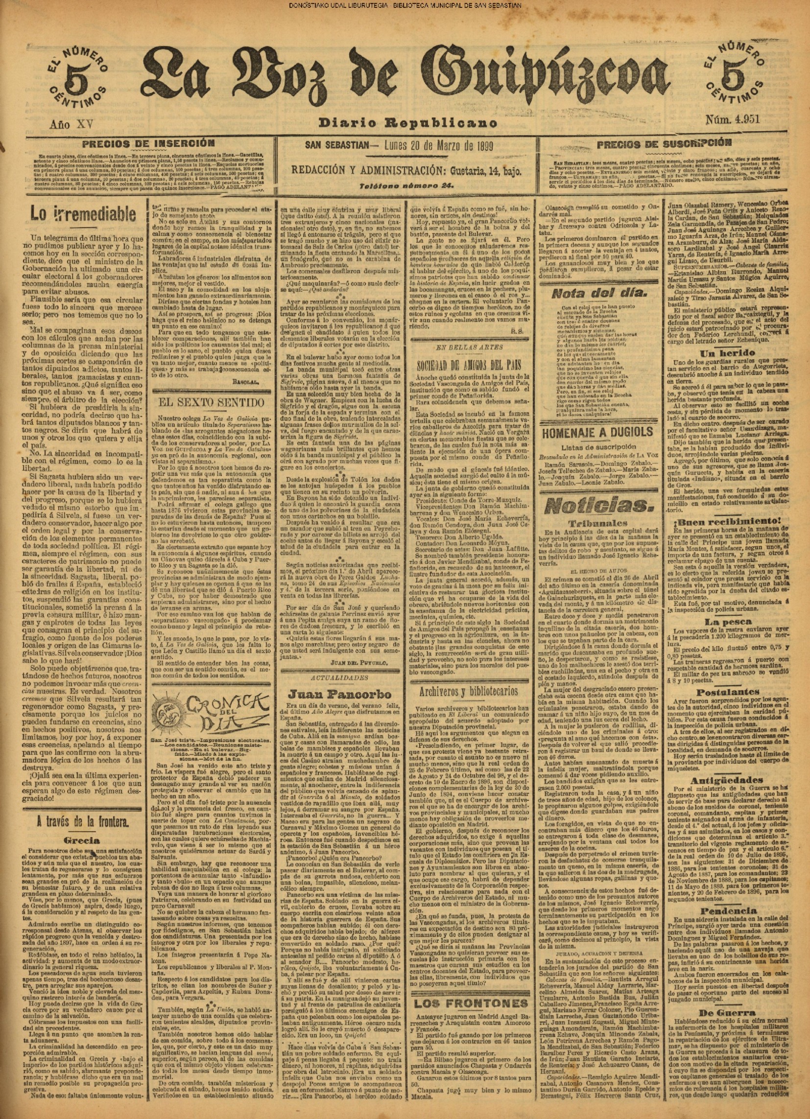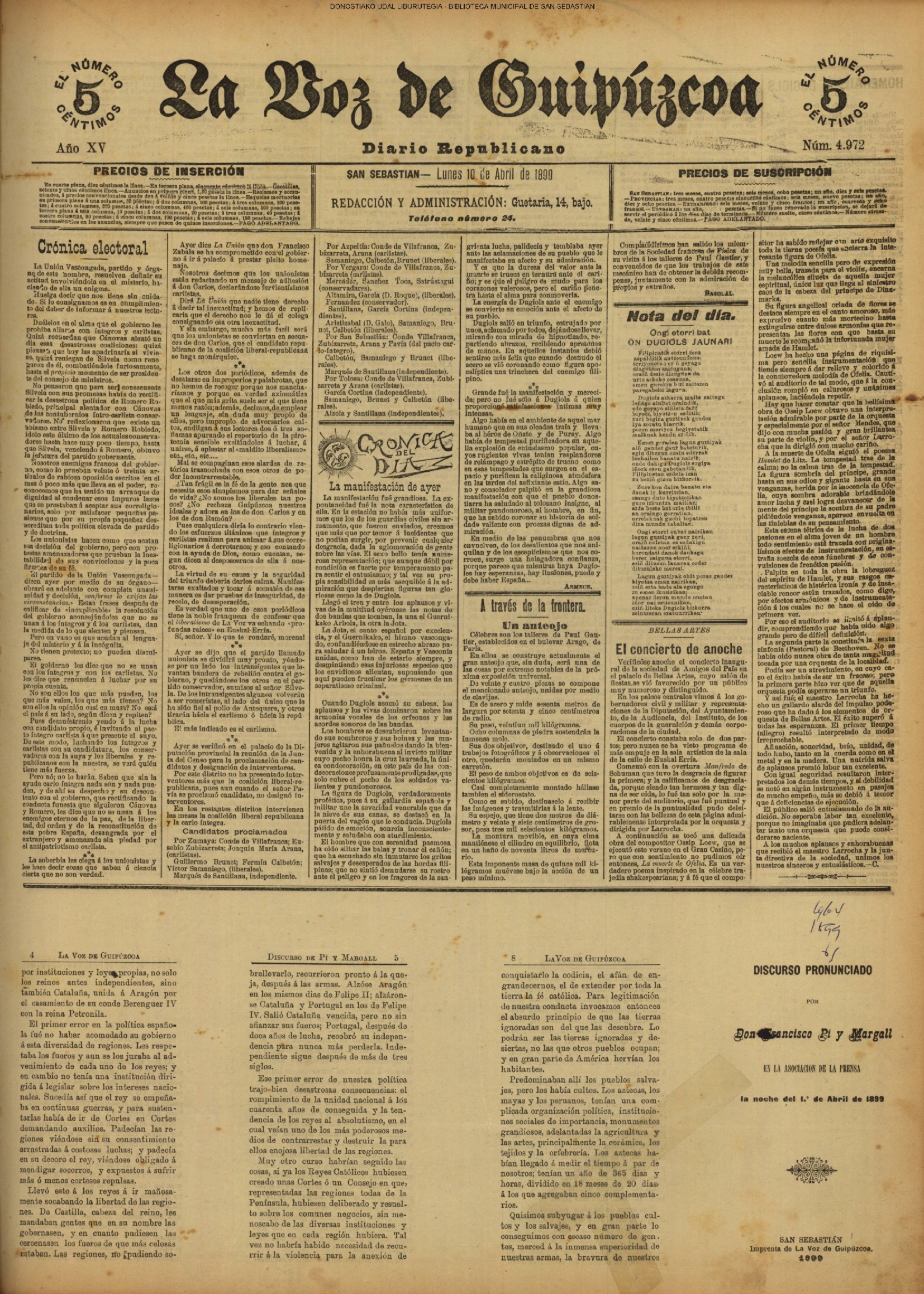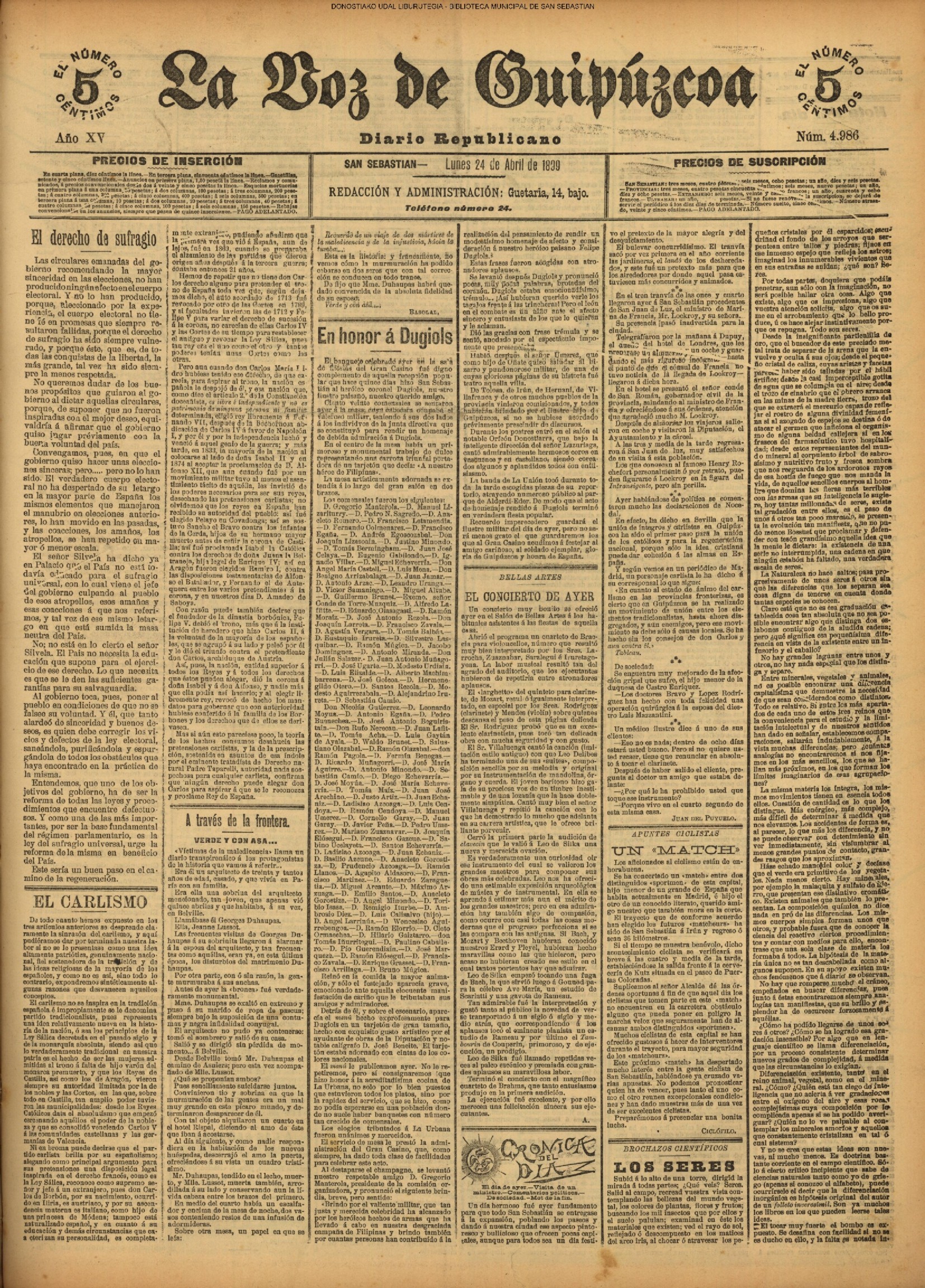| 04/11/1899COMUNICAN QUE ESTE VERANO HABRA TREN ELGOIBAR-DONOSTIA. | ||||||