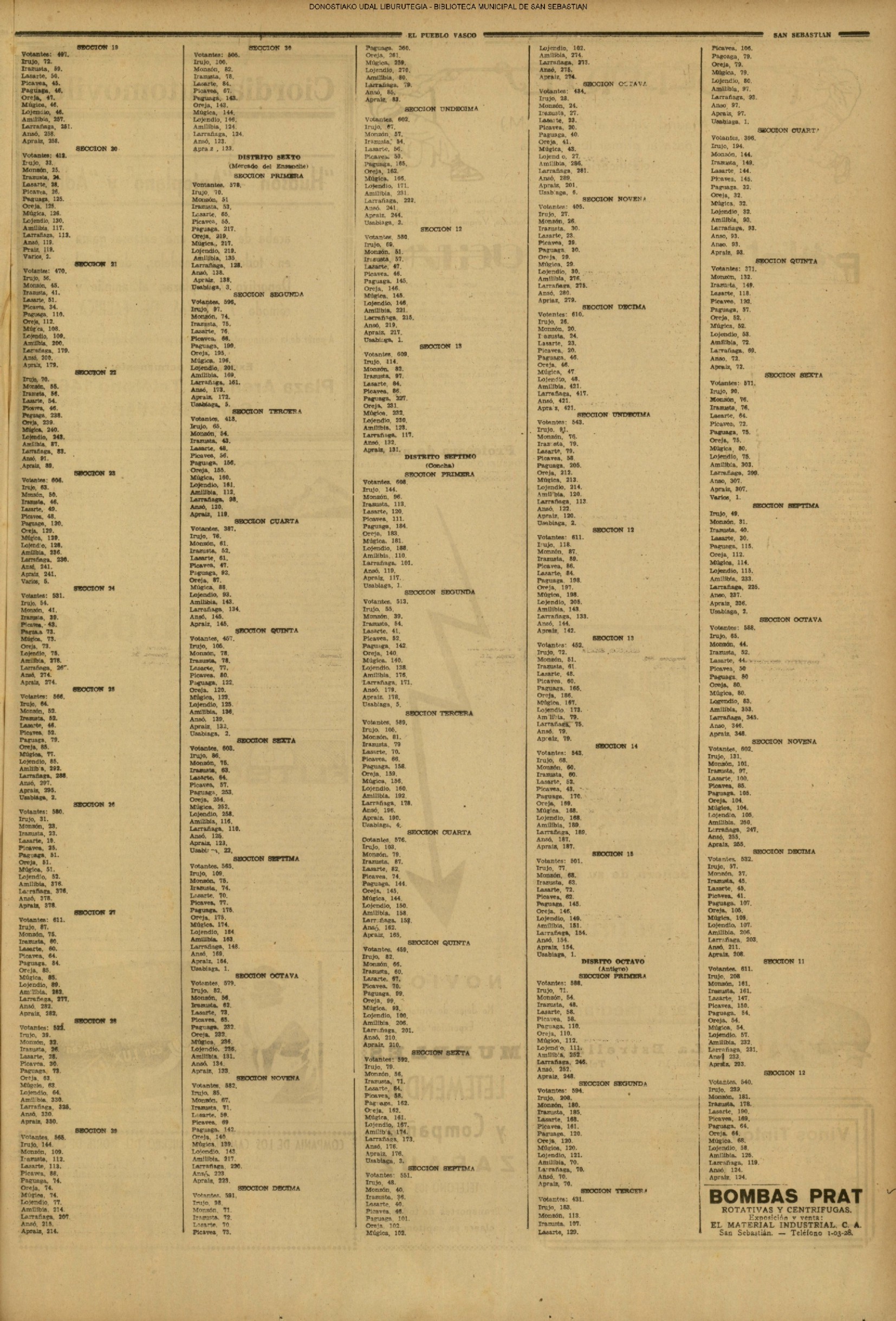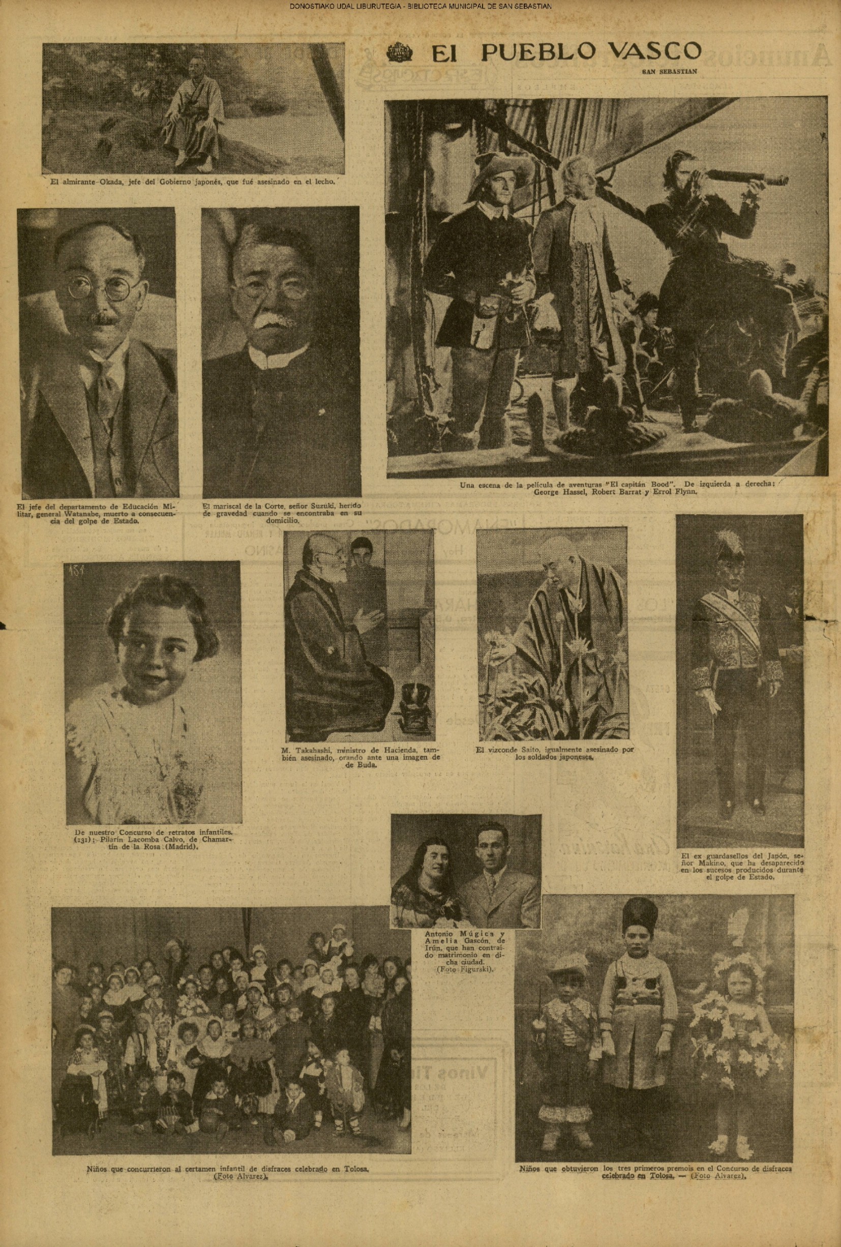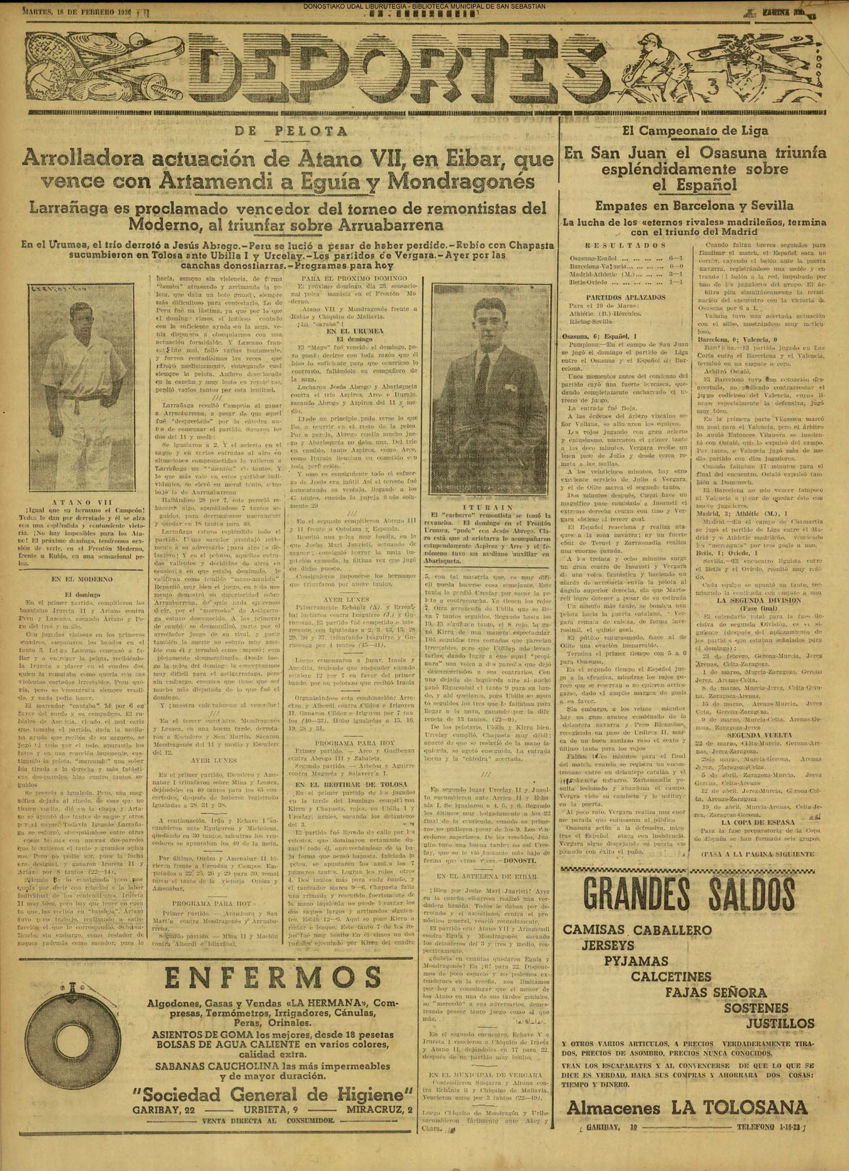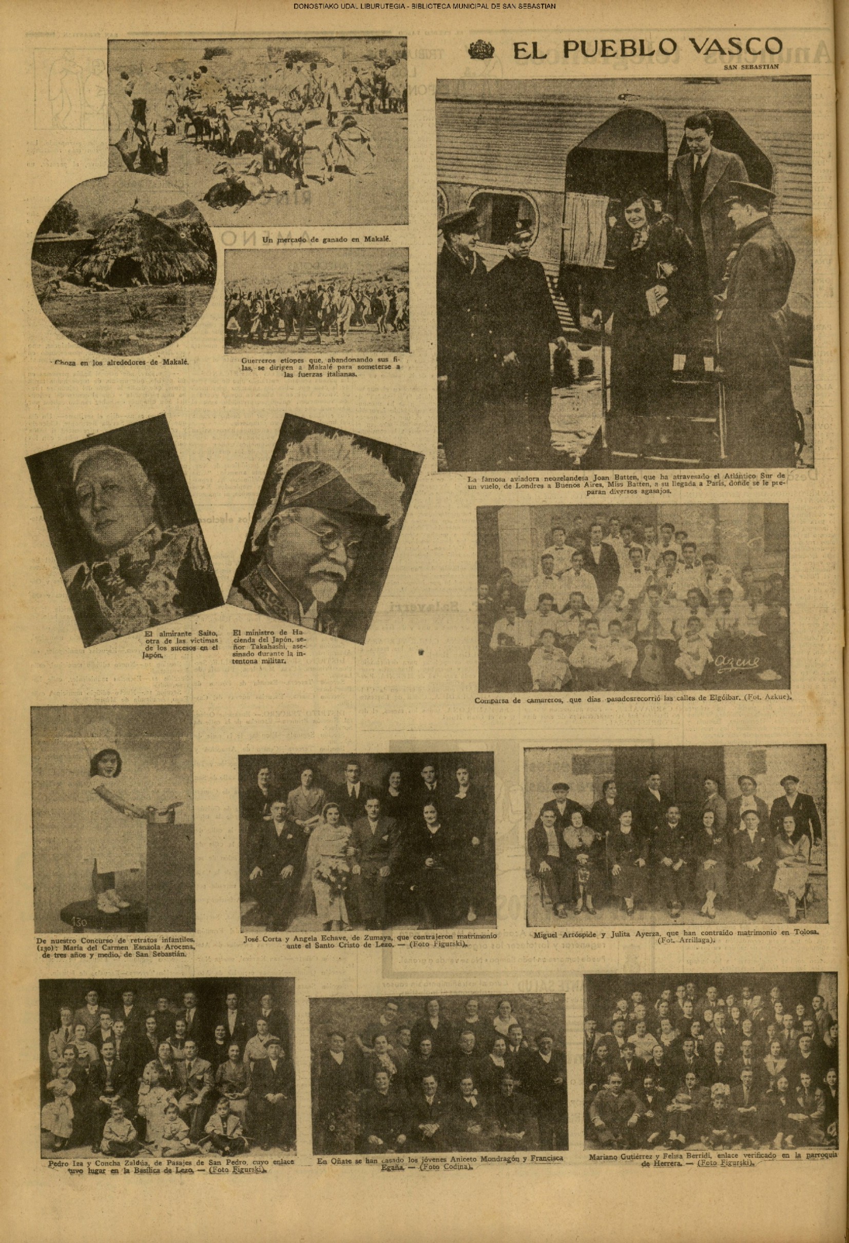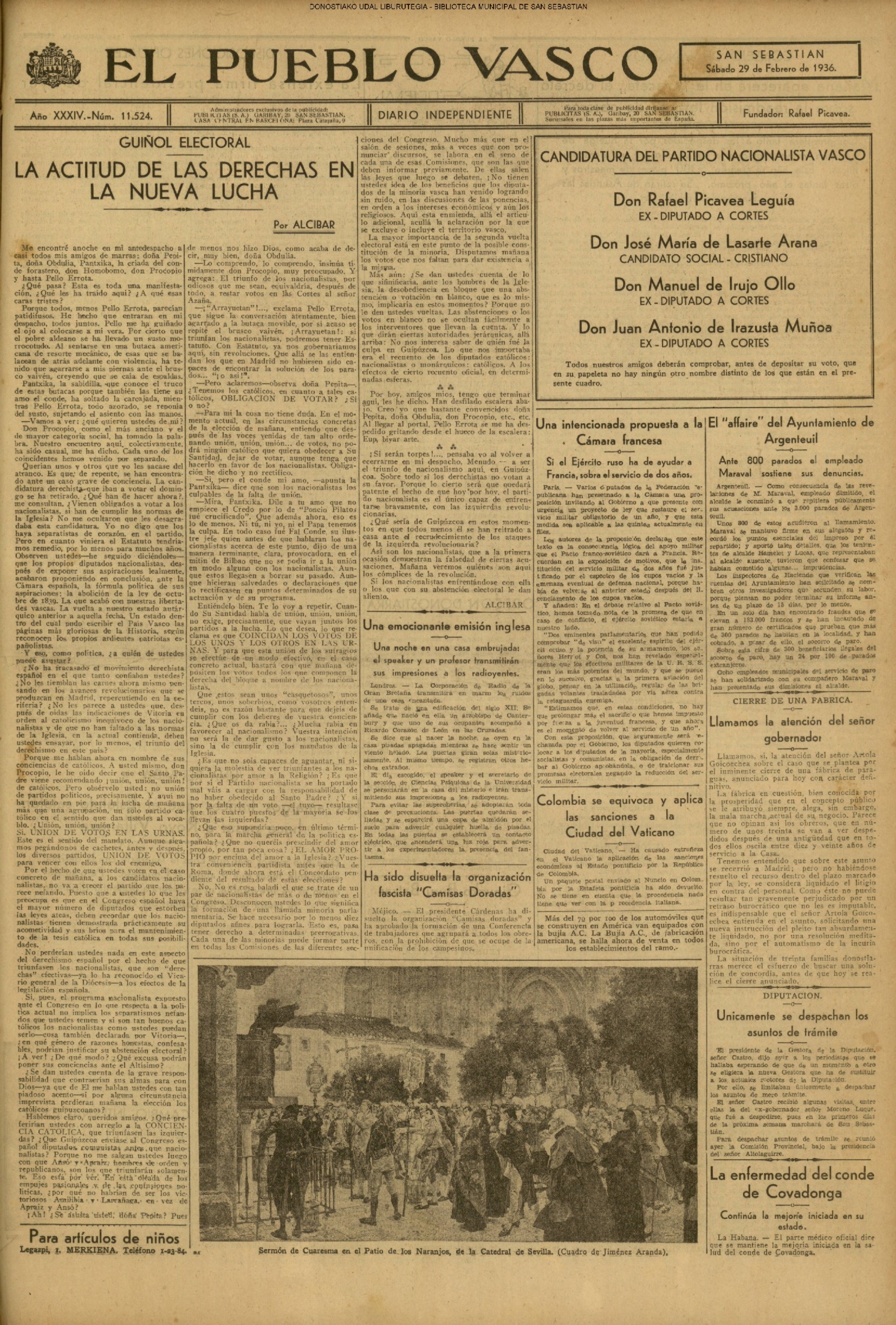 | 14 (DOMINGO) (*) .- En Azpeitia se celebró brillantemente el III Día del Nekazari. (*).- HOMENAJE A LA VEJEZ DEL MARINO. En la Delegación Marítima tuvo lugar el reparto de libretas a los ancianos arrantzales de Guipúzcoa. (*).- En el frontón Urumea, brillantísimo final del Campeonato de pelota de Euzkadi. | |||||||