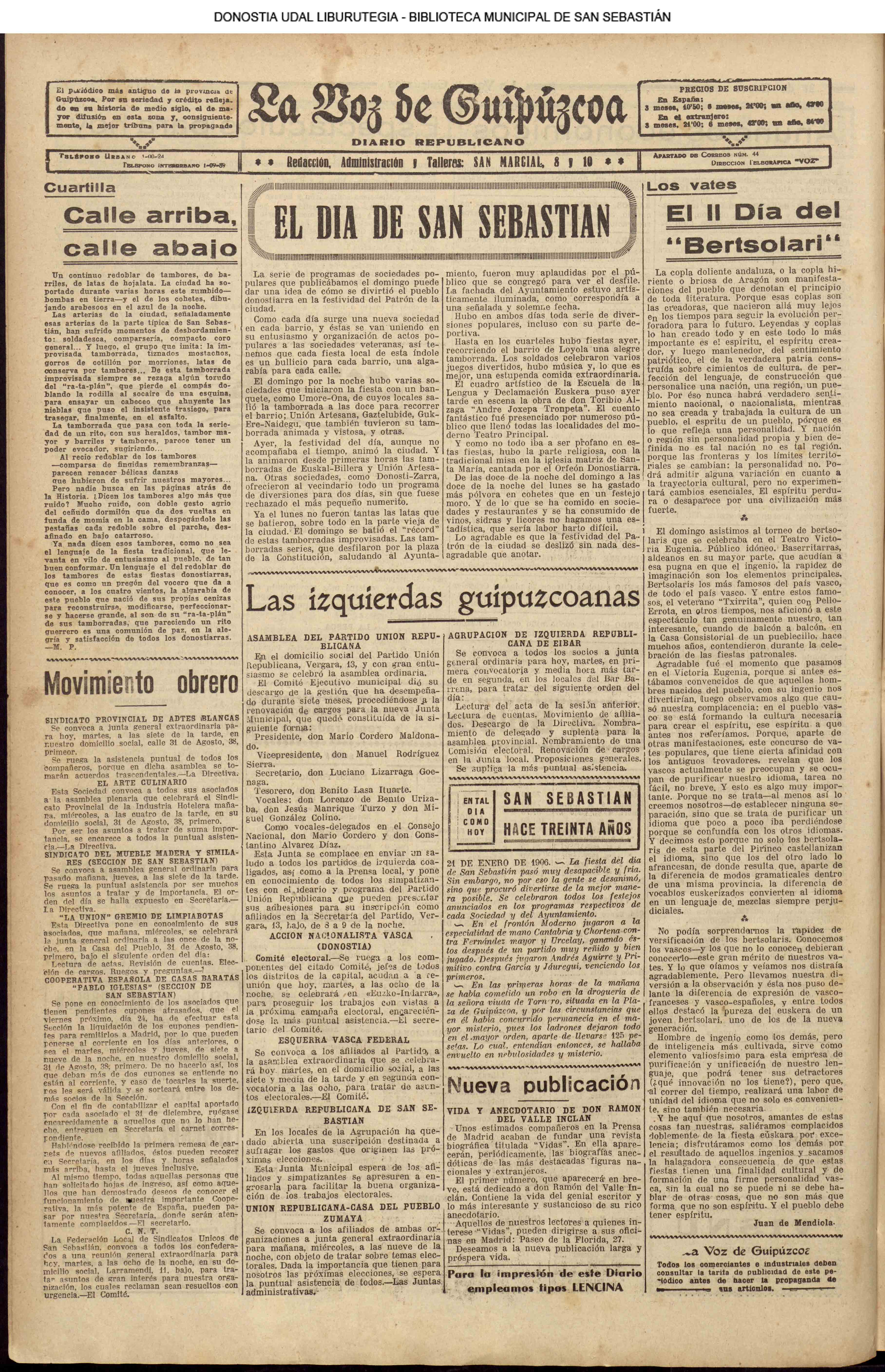| 13 (SÁBADO) (*).- Hoy, sábado, se inauguran las famosas Ferias de Amara (LA VOZ DE GUIPUZCOA.Descargar) | |||||||