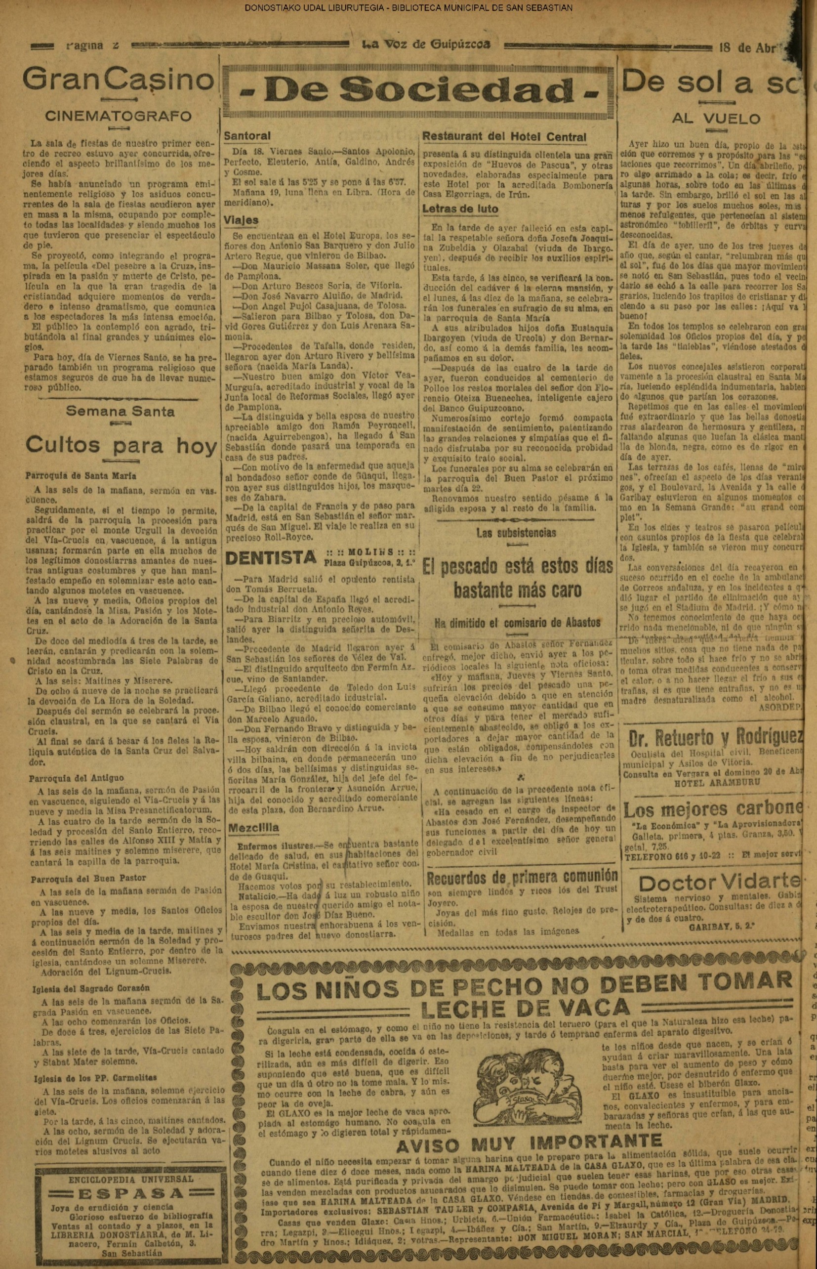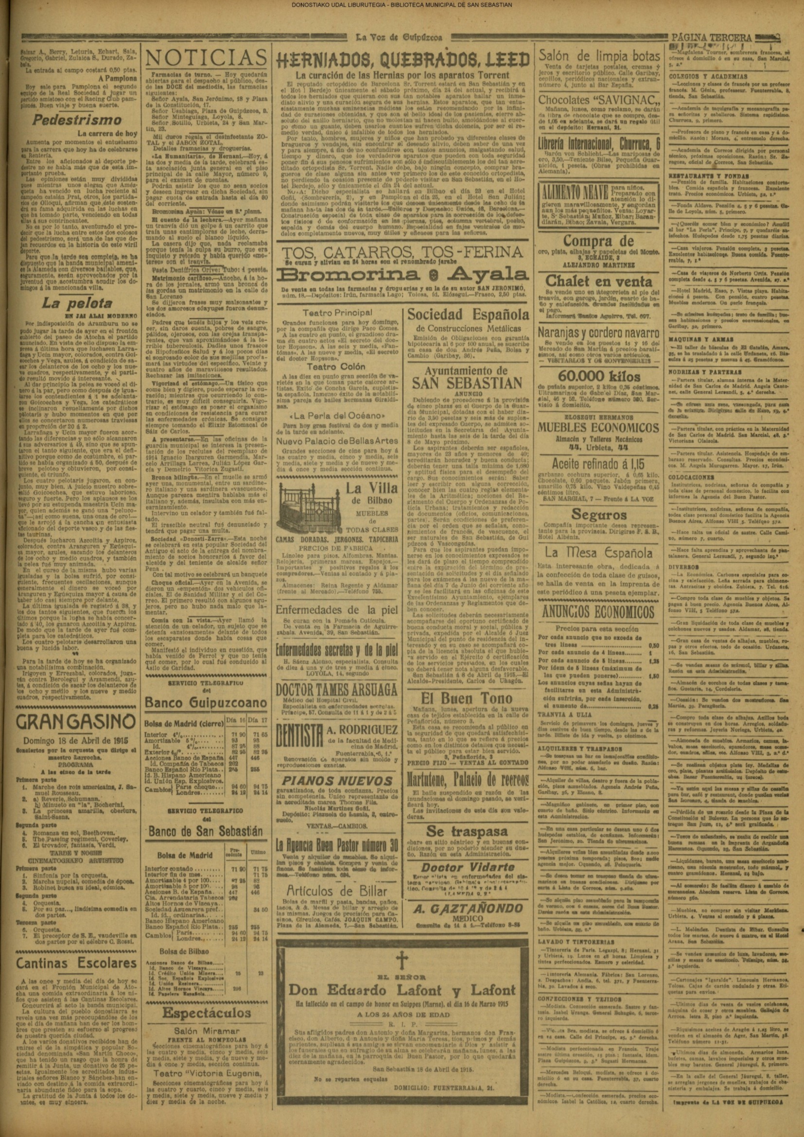 (1915) Nuevo establecimiento .- Se inaugura un salón de limpiabotas, "Fausto", en la Calle de Garibay, núm.4, junto al Bar España. (La Voz de Guipúzcoa)