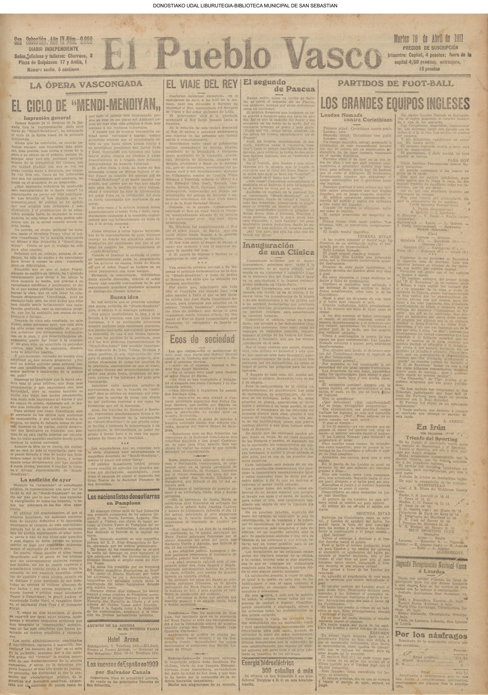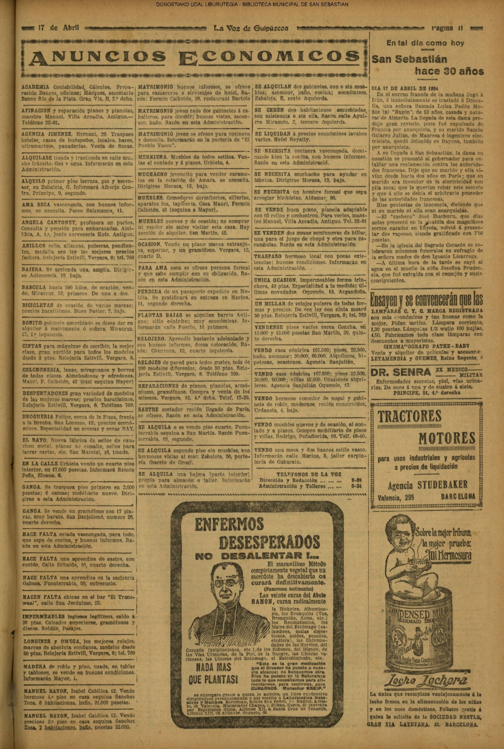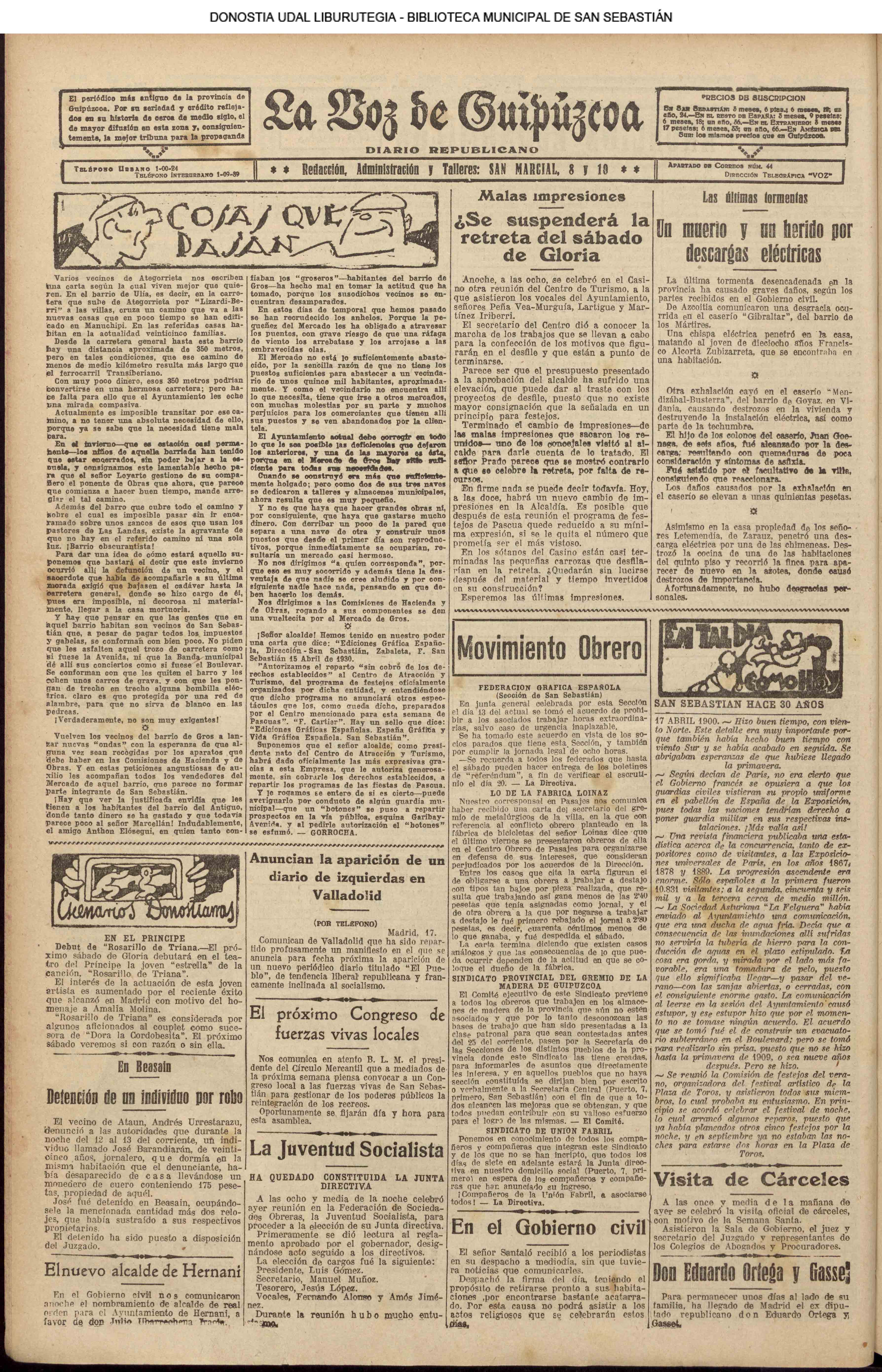 (1915).—Aparece el número 1 de "El Ciclón", semanario crítico-independiente, "defensor de los intereses de San Sebastián"; redacción, administración y talleres, 31 de Agosto, 13 (imprenta Altuna). Se vendía a 10 céntimos.