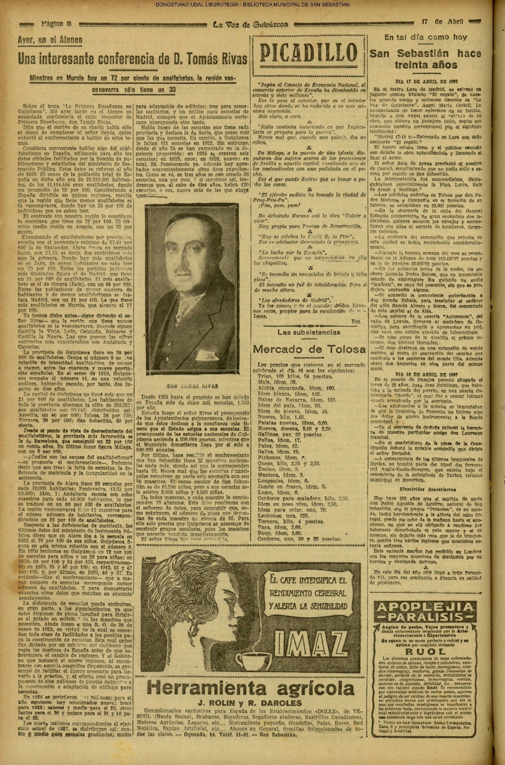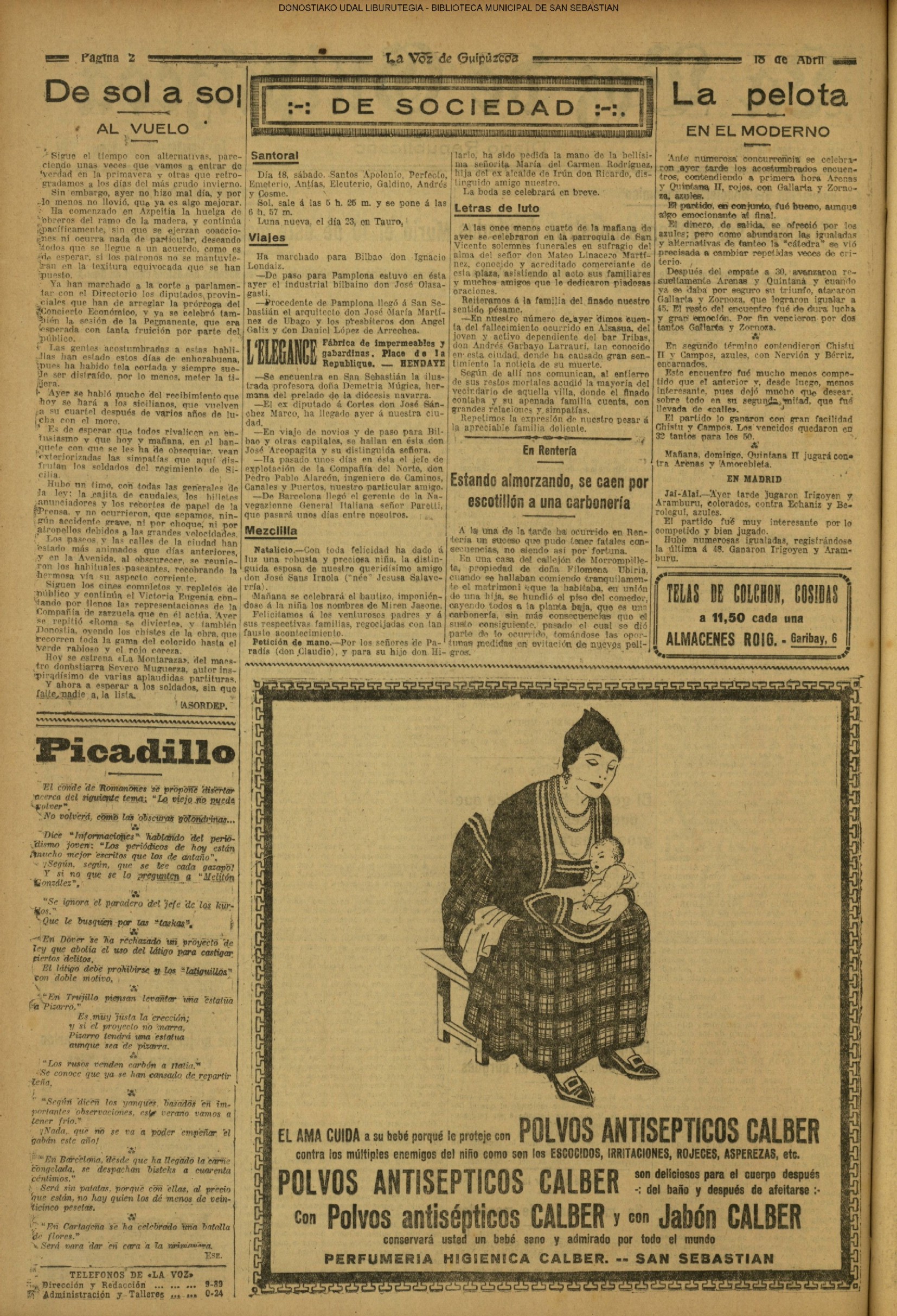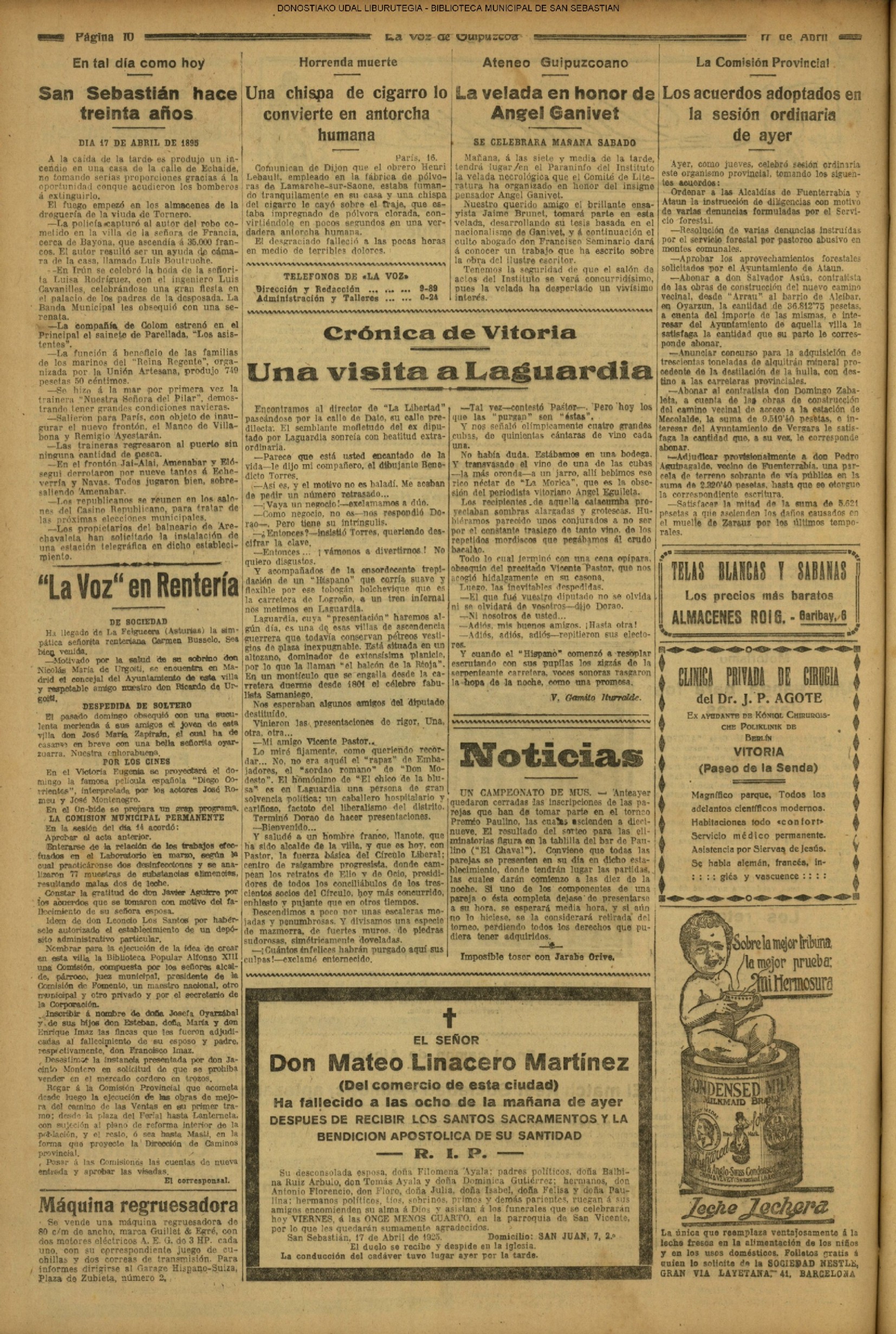 (1915).—Aparece el número 1 de "El Ciclón", semanario crítico-independiente, "defensor de los intereses de San Sebastián"; redacción, administración y talleres, 31 de Agosto, 13 (imprenta Altuna). Se vendía a 10 céntimos.