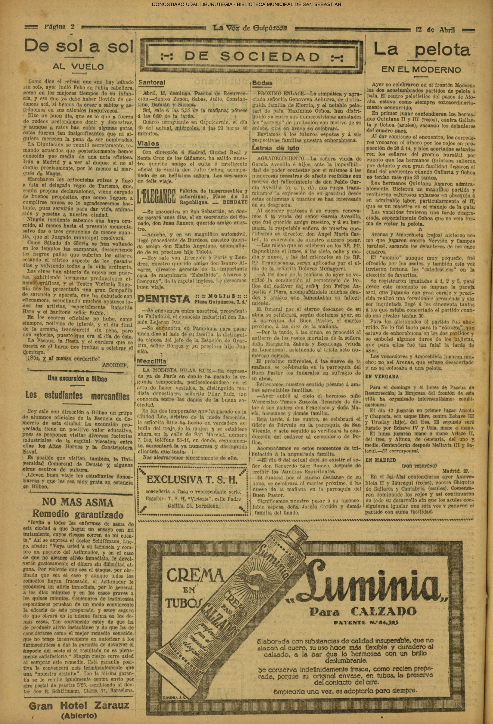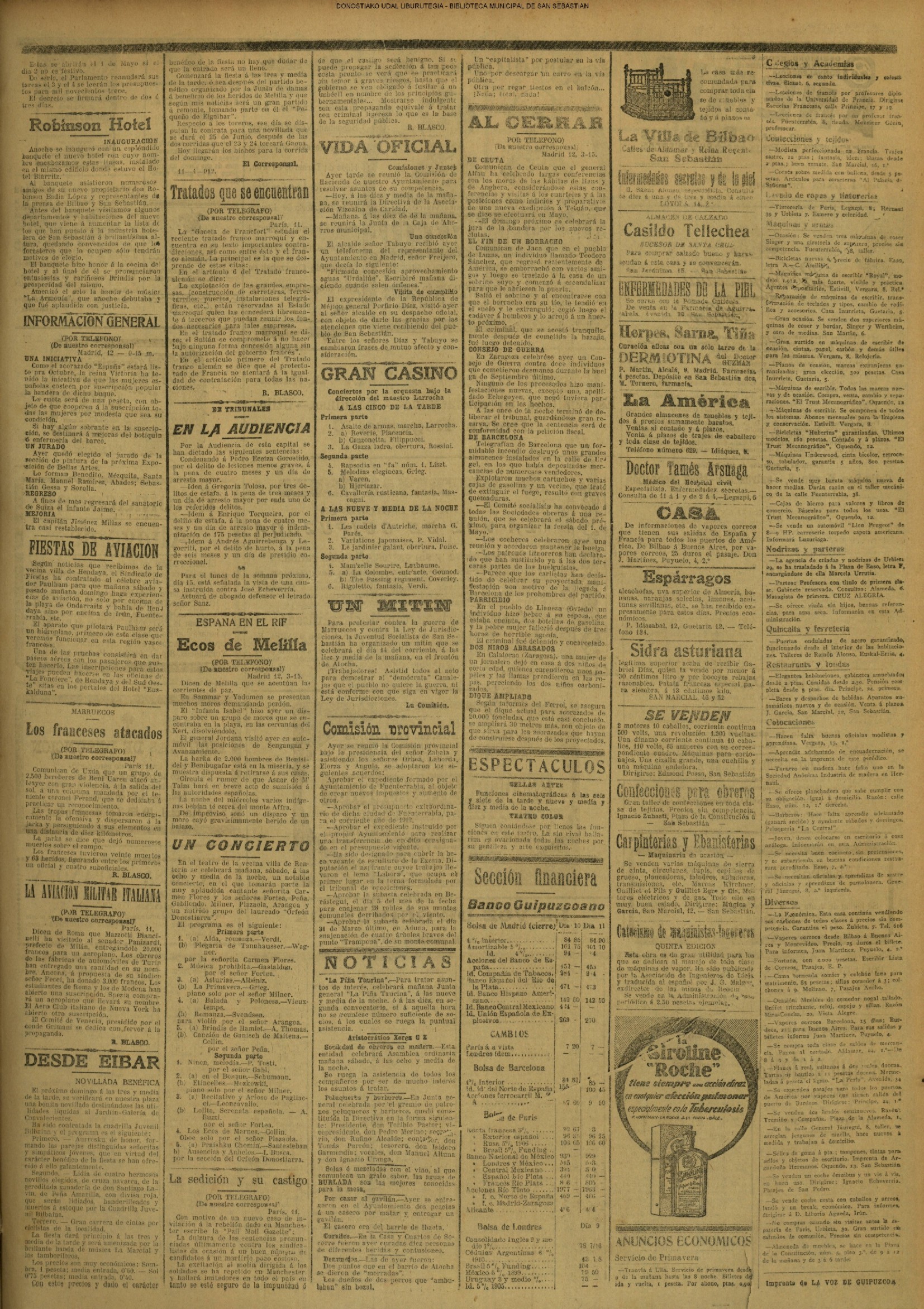 (1912) Se inaugura en la calle de Guetaria el Hotel Robinson, cuyo propietario era D. Robinson Badía López. En el mismo edificio estuvo anteriormente el Hotel Biarritz.(La Voz de Guipuzcoa)