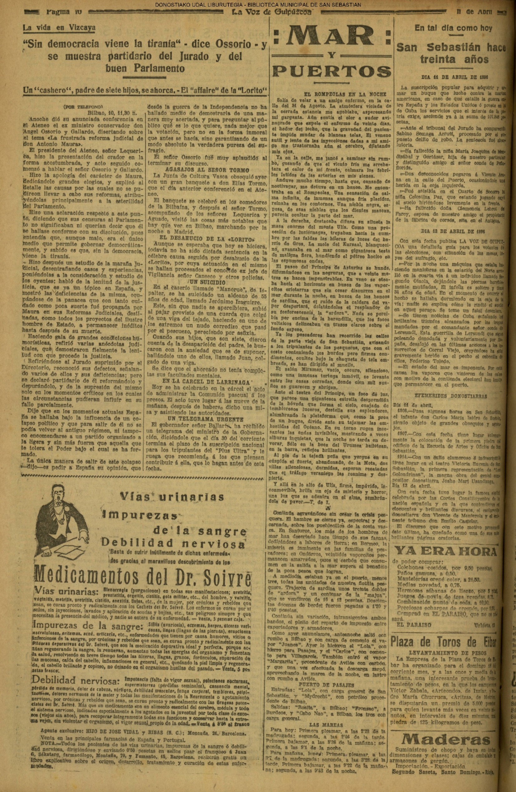 # Llega en el correo D. Tancredo, que breves días después actuaría por primera vez en la plaza de toros donostiarra, que estaba entonces en Atocha.