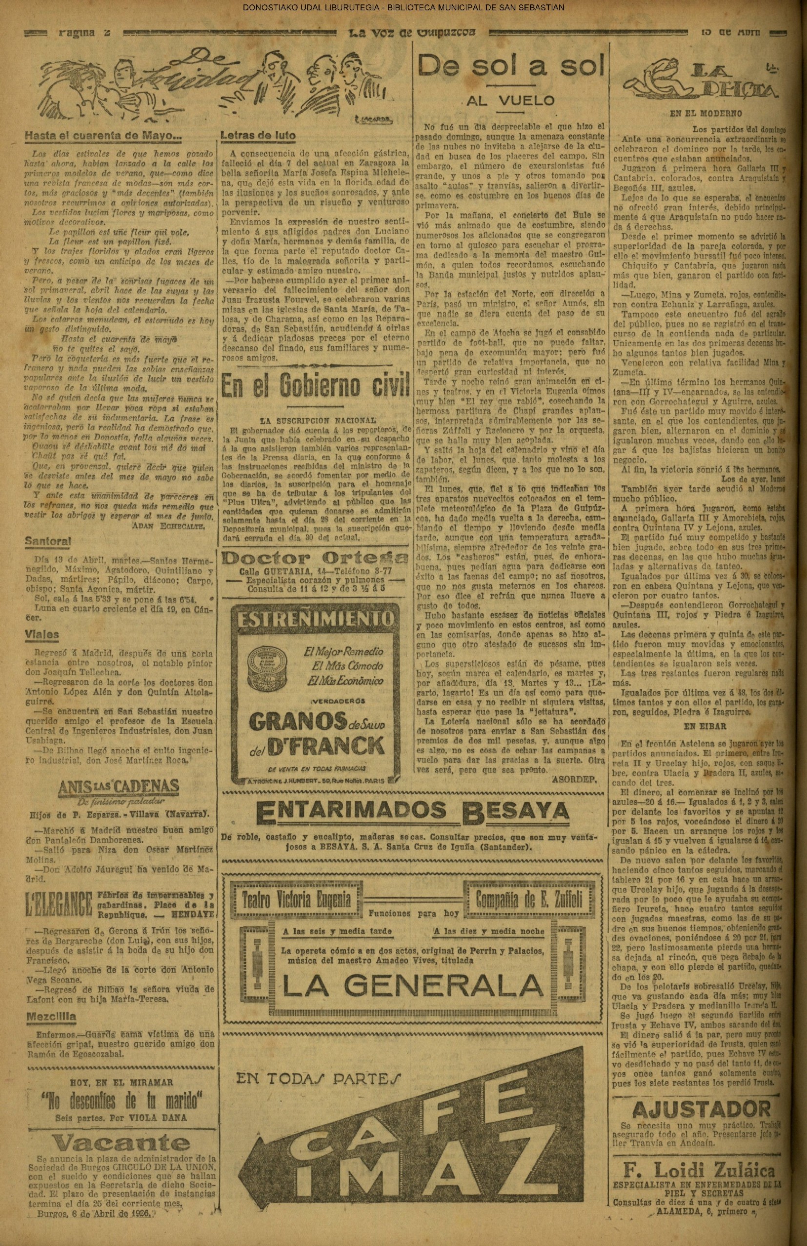 (1914) Por primera vez se representa en San Sebastián «Las Golondrinas», de Usandizaga. (La Constancia)