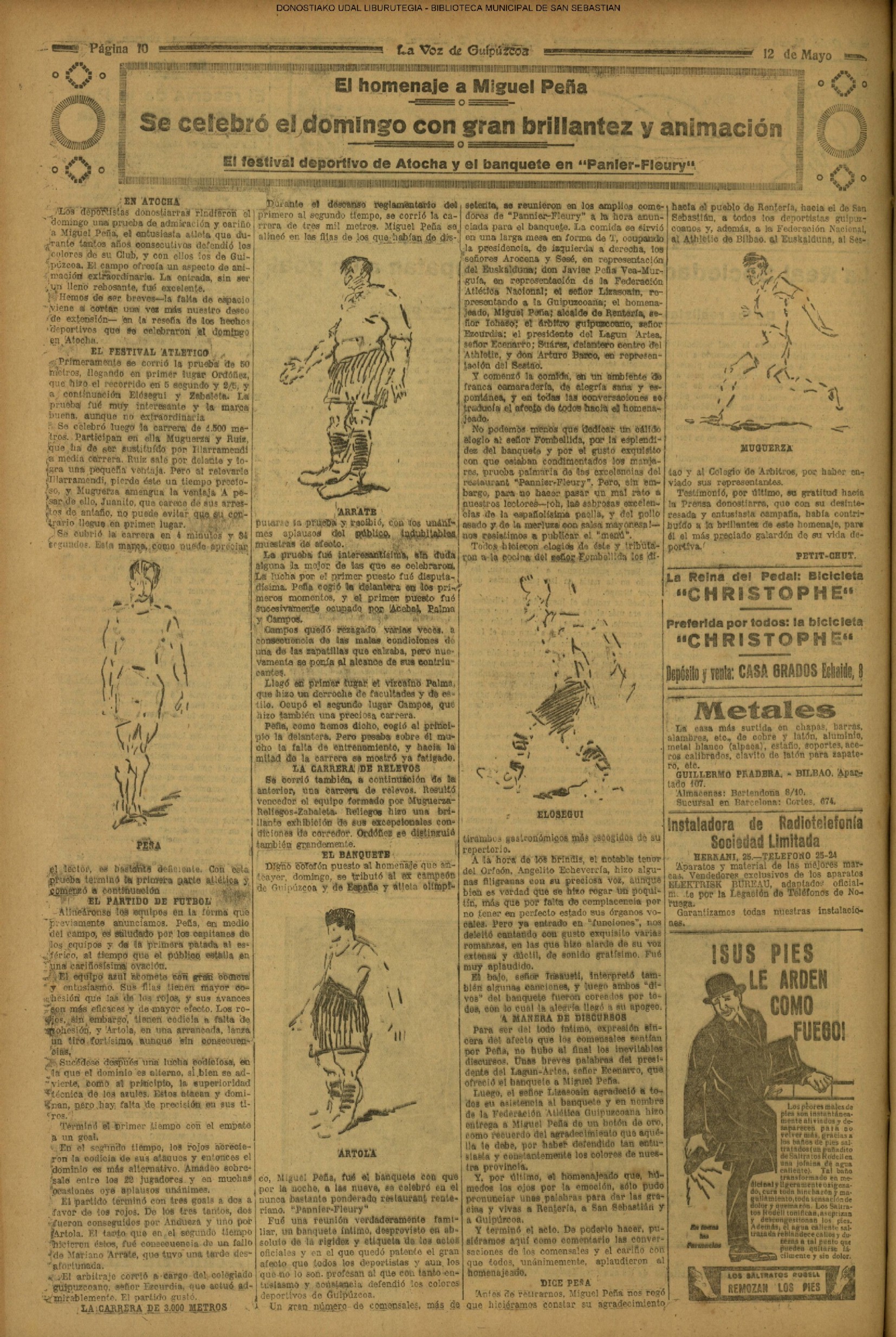 Hubo unas carreras y un partido de fútbol en Atocha y un banquete en Panier Fleuri (Rentería).(La Voz de Guipuzcoa !!!!)