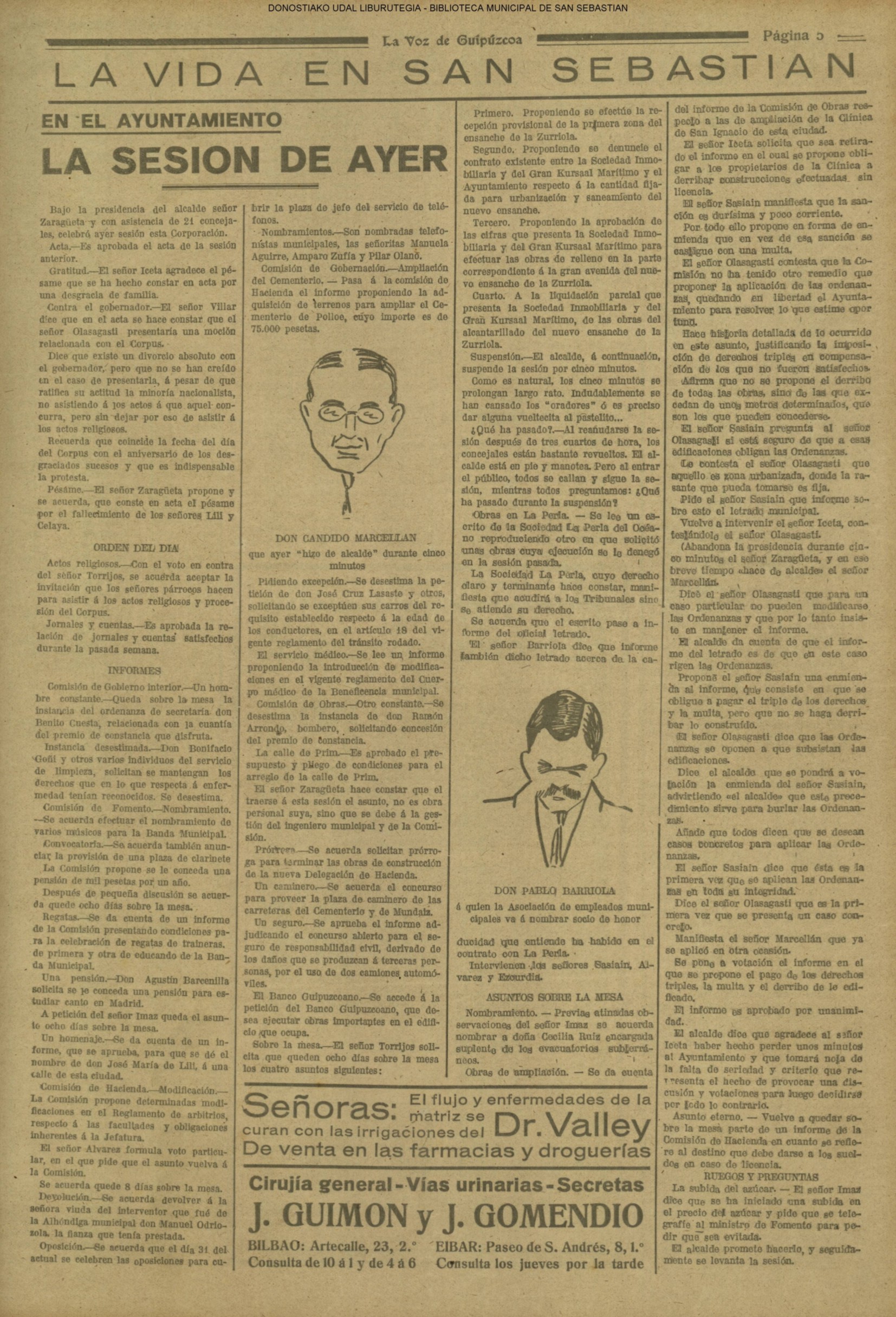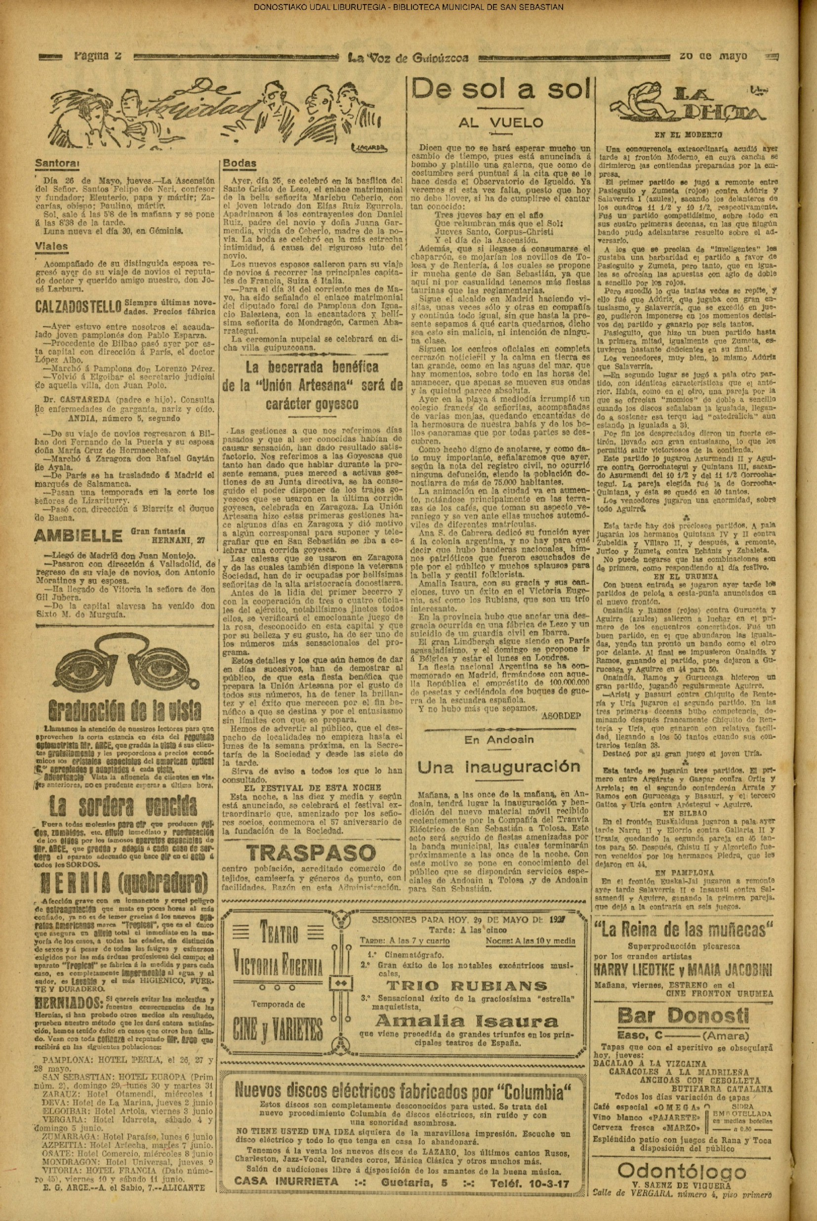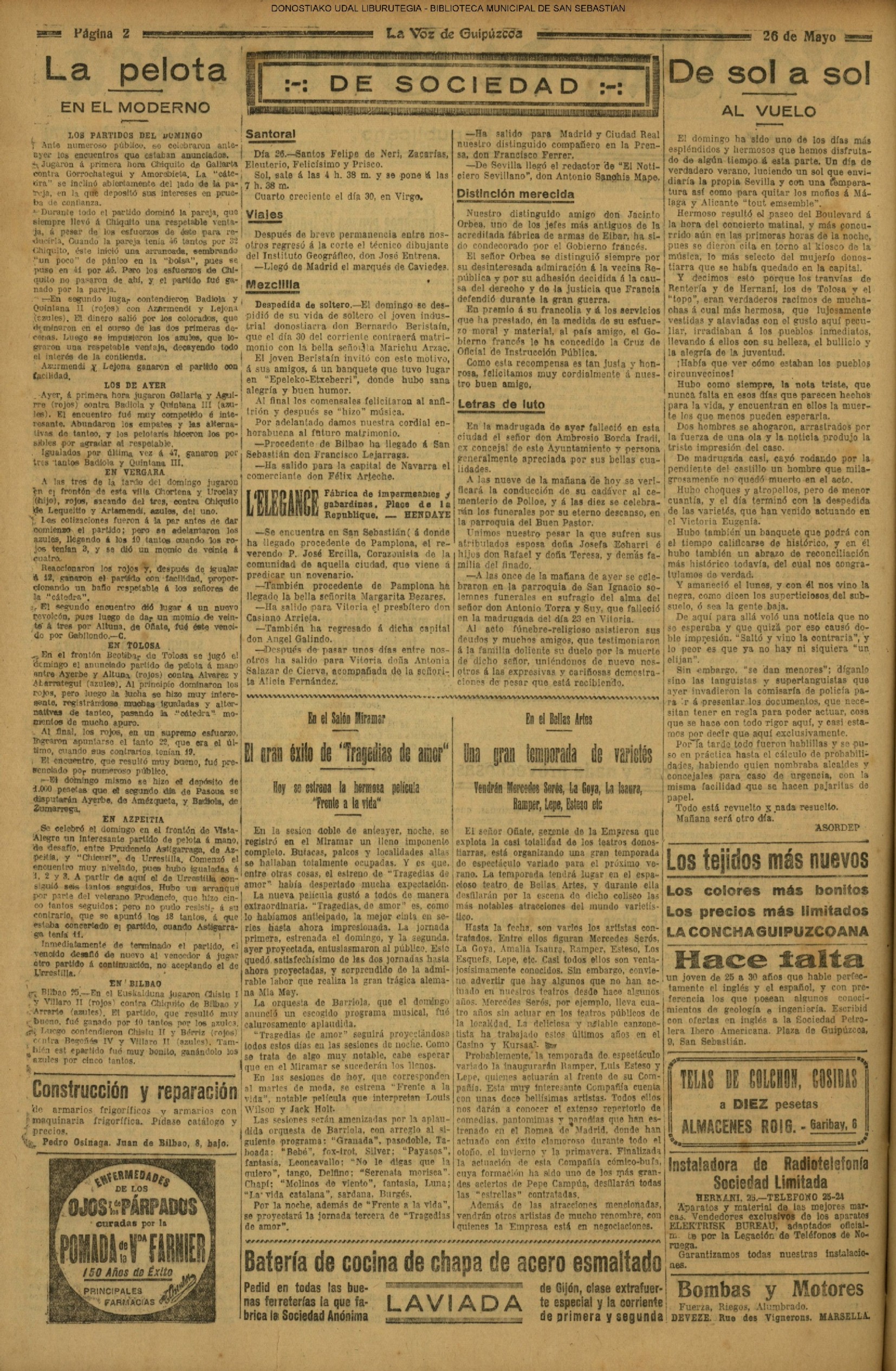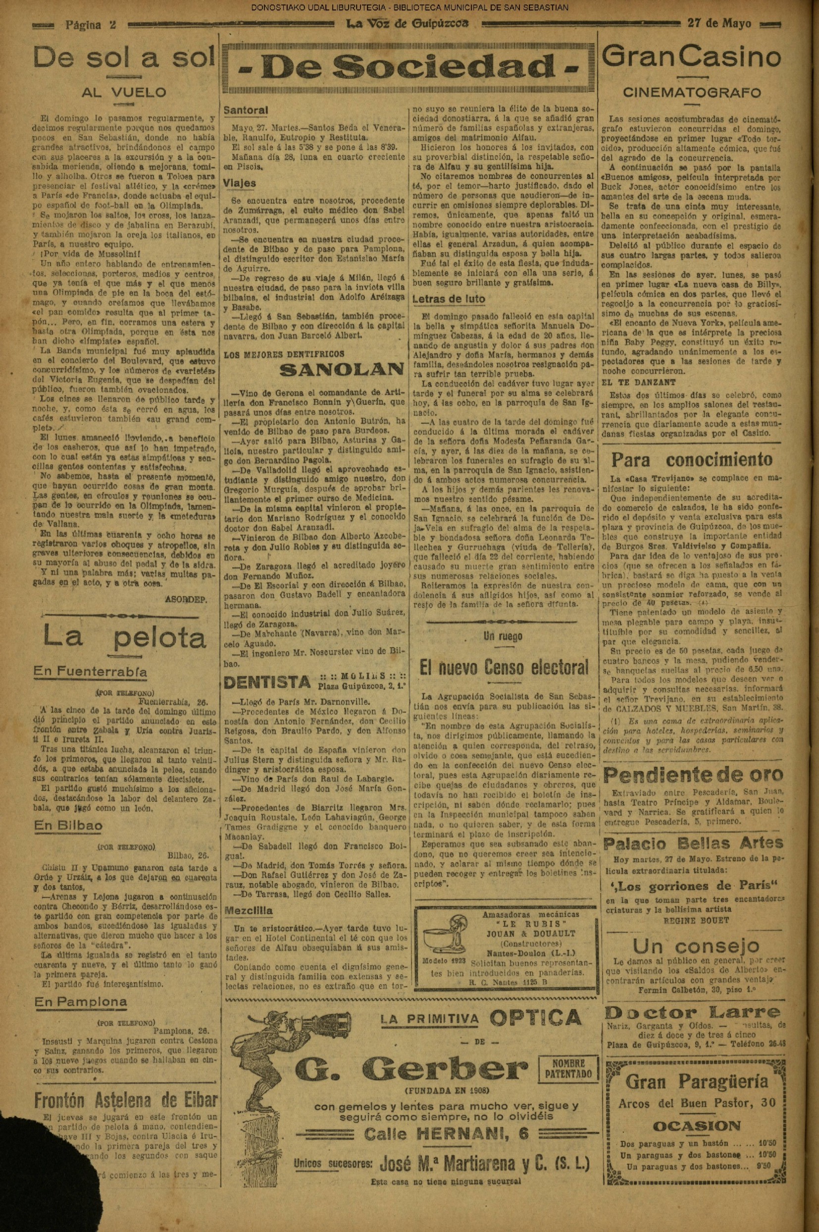 EN el primer año del siglo XX San Sebastián era bastante diferente a lo que es hoy. Aquí la Reina Doña María Cristina había construido su residencia veraniega sobre la bahía de La Concha. Había en los veranos tertulias de políticos en la galería de los baños de la Perla. Azares de la ruleta en el Gran Casino. Música en el Boulevard. Y cierta indecisión ante la prestancia de la Zurriola, terrenos ganados al mar por iniciativa del marqués de Salamanca, раseo del que los elegantes se preguntaban si resultaría o no deambular por él durante las tardes. Así lo escribió Fernando Castán Palomar, gran periodista de la época, al que copio una de sus crónicas casi te tualmente. En aquelel añc a 1901 la novedad en Madrid era la apertura de la nueva central de la Compañía Madrileña de Teléfonos, que acababa de inaugurar las obras de la red, con la «asombrosa audacia» -frase de la épоca- de llevar los hilos conductores por las galerías del Canal de Isabel II. La Central de Teléfonos tenía en aquella época 65 empleados más 12 suplentes. A cada uno de ellos le correspondía atender a un cuadro de 50 abonados. Por lo que se ve, entonces no había erı Madrid ni casi 350 casas con teléfono. ¿Cuántos había en San Sebastián? Entonces eran frecuentes las fiestas en las casas aristocráticas. Se abrían varias veces al año los salones de los Squilache, de los Arguelles, de los Cerralbo, de los Villamediana de los Casa Valencia, de los Castillo de Chirel… La clase media se esforzaba por dar brillo y realce a sus reuniones caseras, a sus tertulias de domingo, a sus fiestas íntimas con motivo de un onomástico o de una petición de mano. Una clase media pobre y afanada en apariencia de un bienestar económico, lucha por el querer y no poder, que era la frase más dolorosamente expresiva de las señoritas de la clase media. Estas paseaban en las mañanas domingueras por la calle de Alcalá, al salir de Calatravas, cuya acera era conocida por el Pinar de las de Gómez. Al atardecer, la reunión casera con amigos entrañables y vecinos de más frecuente trato. Por menos de nada organizaban una cachupinada. Dicen que fueron las señoritas de Cachupin quienes dieron nombre a estas tertulias, en las que tocábase el piano, se jugaba a las prendas, se hacían juegos de prestidigitación, se recitaban versos y se armaban proyectos de verano suntuarios que no llegaban a tener efectividad nunca. Y había llegado el foot-ball. Los muchachos daban en las calles con el pie a un pelotón y en este ejercicio atropellaban a los señores con barba.. |