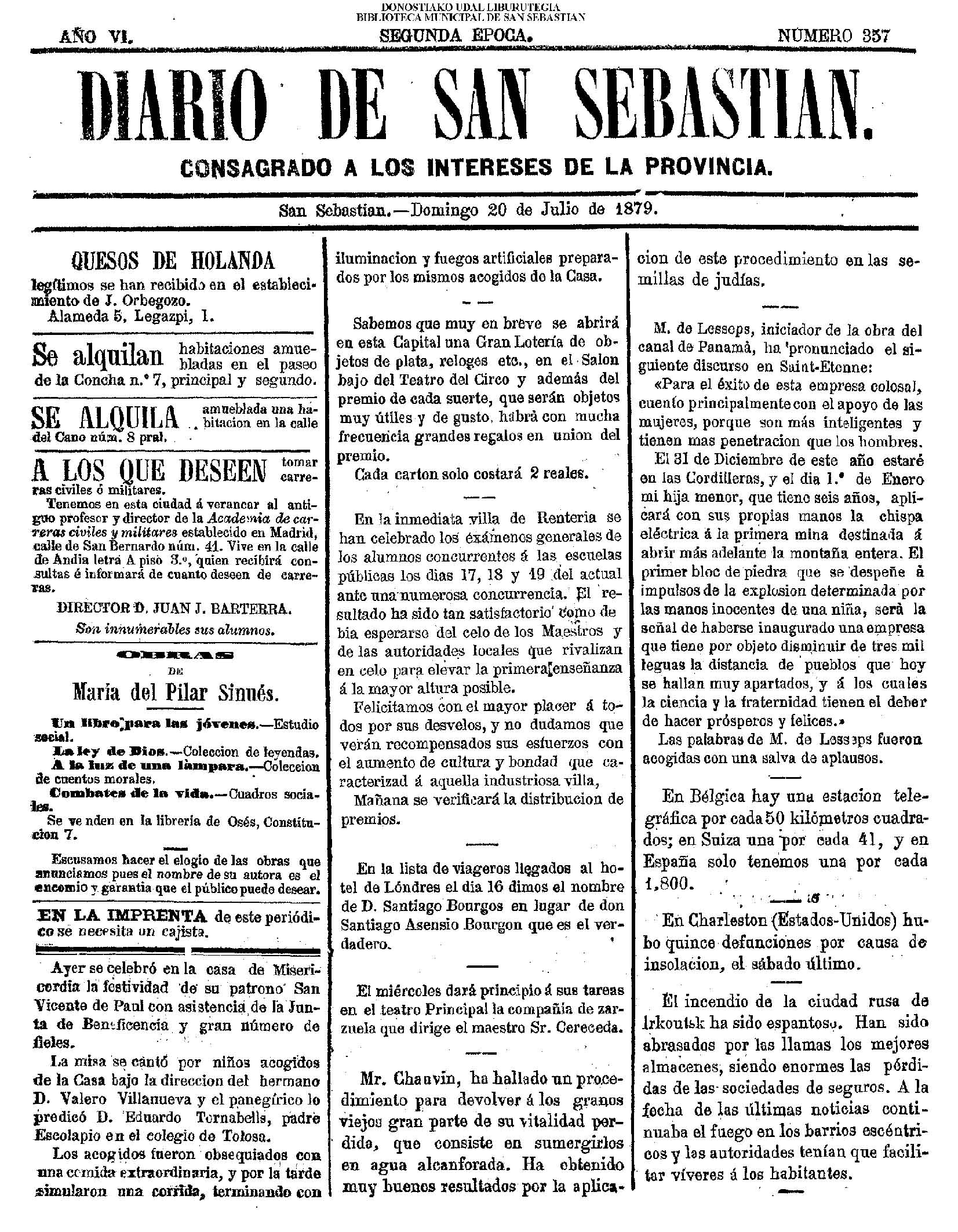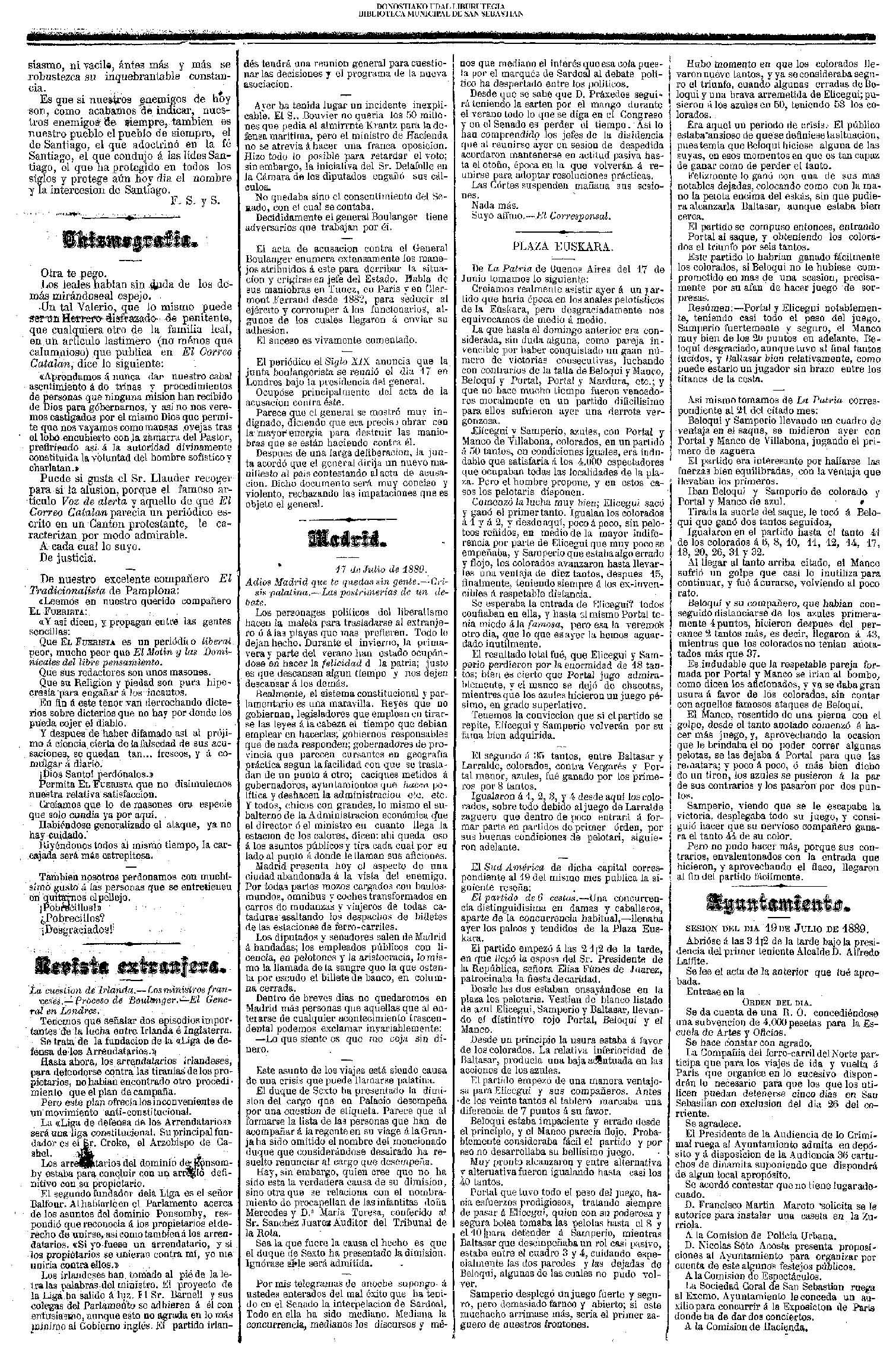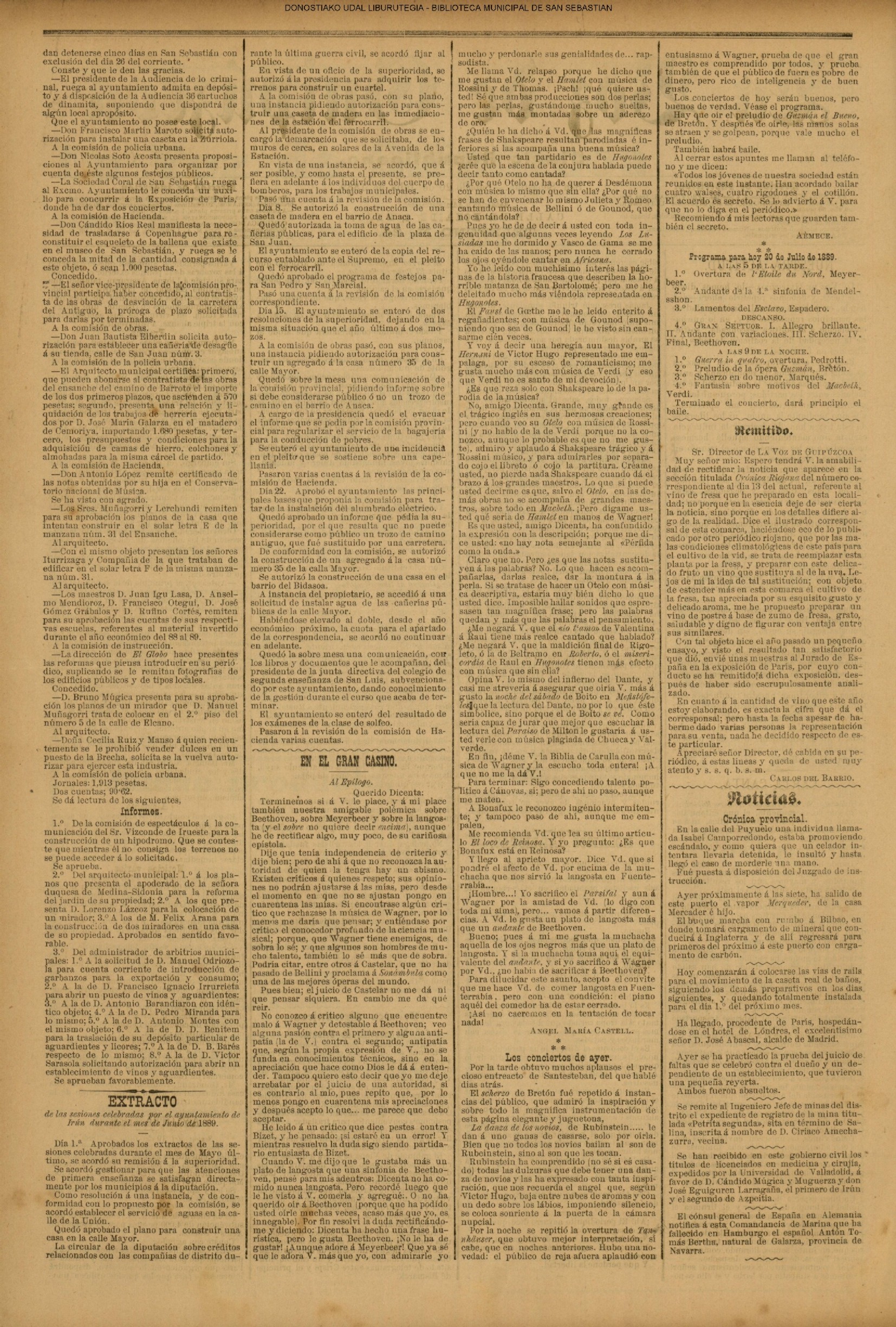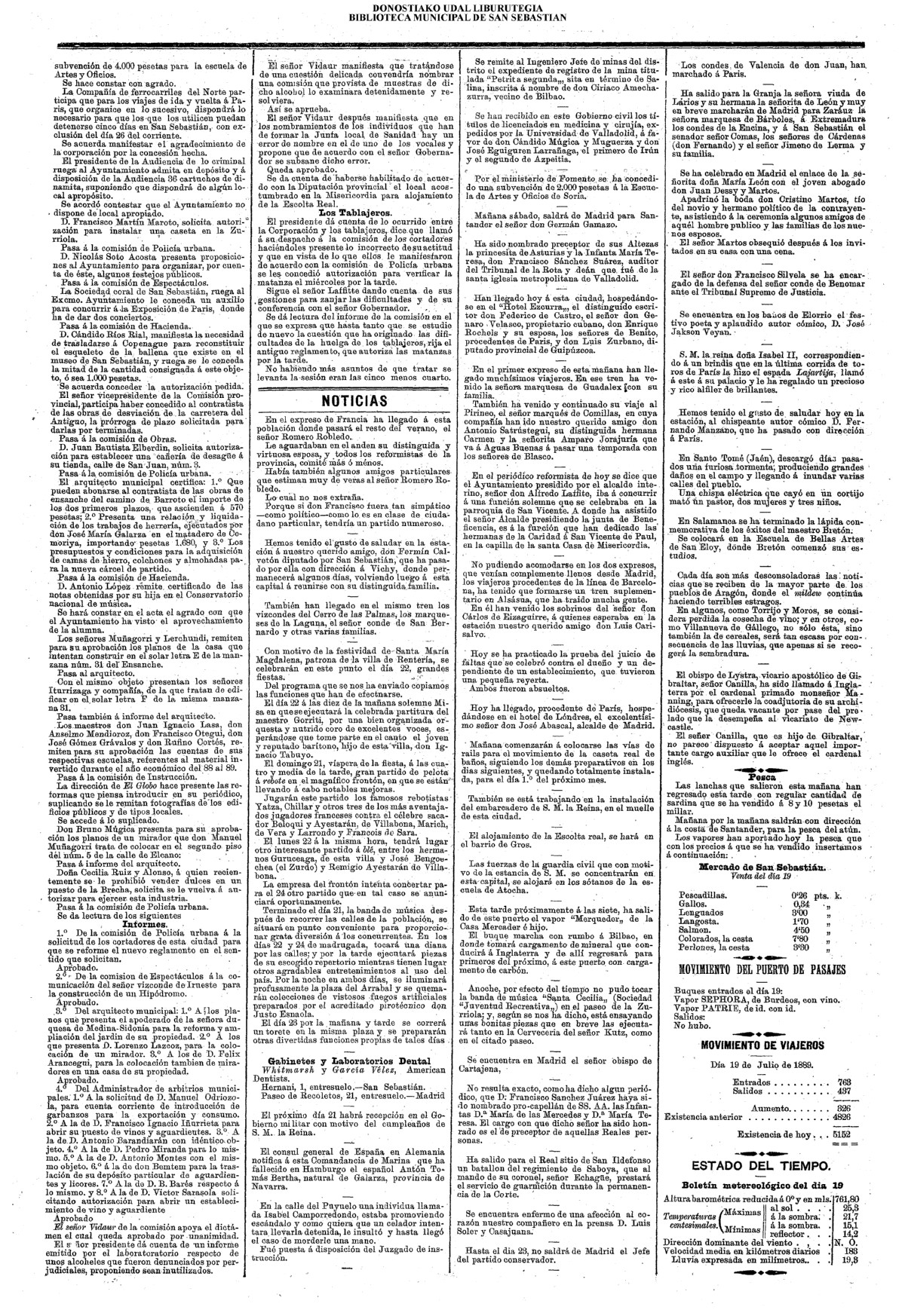 La noche de 19 a 20 han continuado en hacer un soberbio trabajo formando otra línea o retrincheramiento entre el mar de la Concha y el río de Santa Catalina, empezando desde la casa y ermita de San Martín por lo más eminente de los montones de arena de esta parte del arrabal de San Martín , tirando la paralela hasta encontrarse y aun pasar de la pared sobre el (sic) cual viene la fuente a esta ciudad, formando también otro trozo de línea desde esta parte dirigiendo en línea recta al convento de monjas del Antiguo, que hasta llegar a la orilla del camino que se forma en dicho arenal para para la calzada y convento de San Bartolomé, recelando iban formando otras líneas semejantes la noche inmediata, no obstante el gran fuego de la artillería y mosquetería.