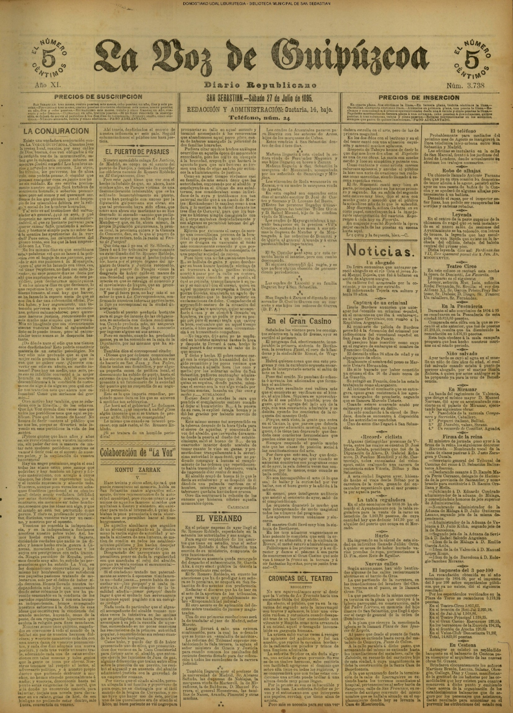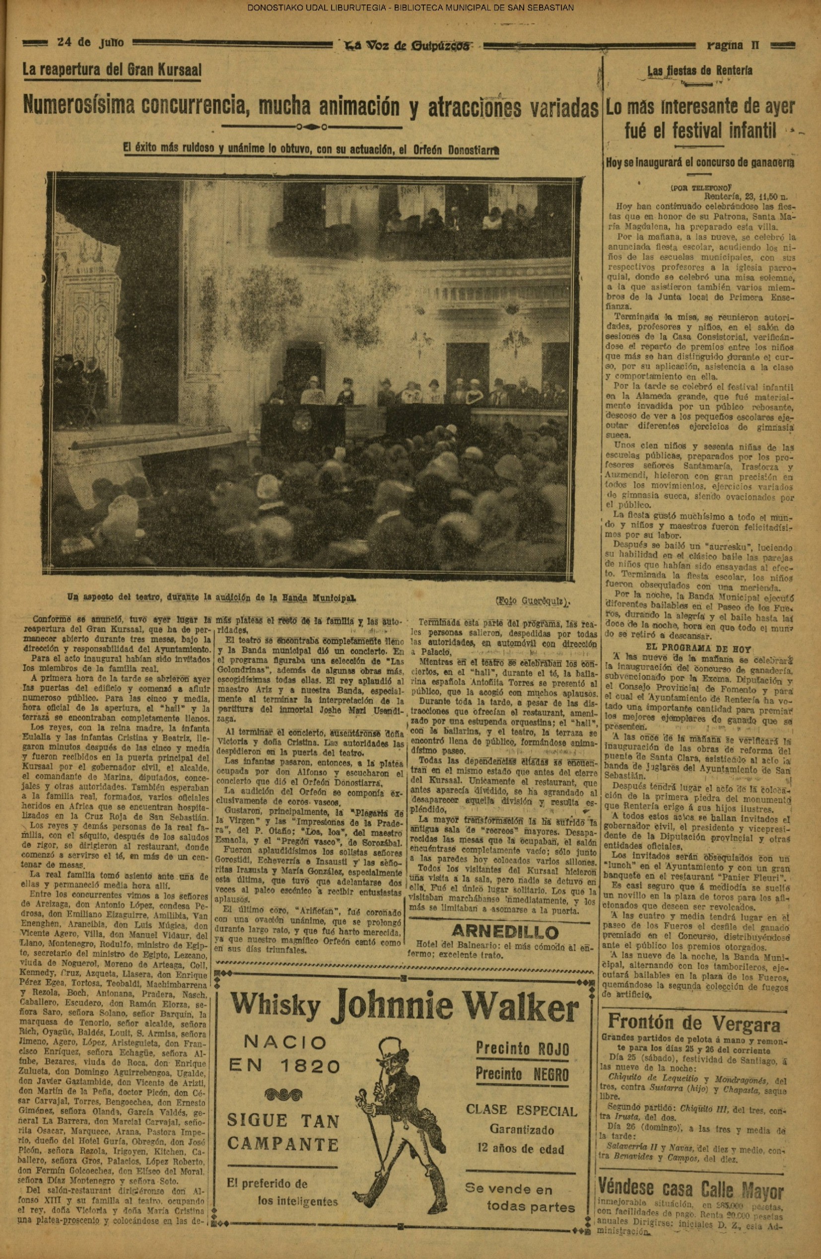 (1920) La Compañía Xirgú-Borrás, que actuaba en el Principal, da a conocer a los donostiarras el drama de Marquina, "Alimaña", .que obtiene franco éxito.