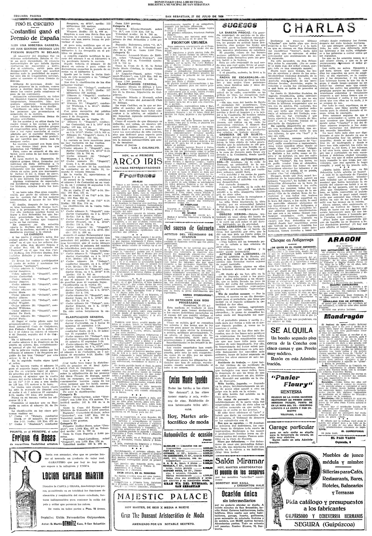 (1926) SEMANA AUTOMOVILISTA DONOSTIARRA - Última jornada - GRAN PREMIO DE ESPAÑA