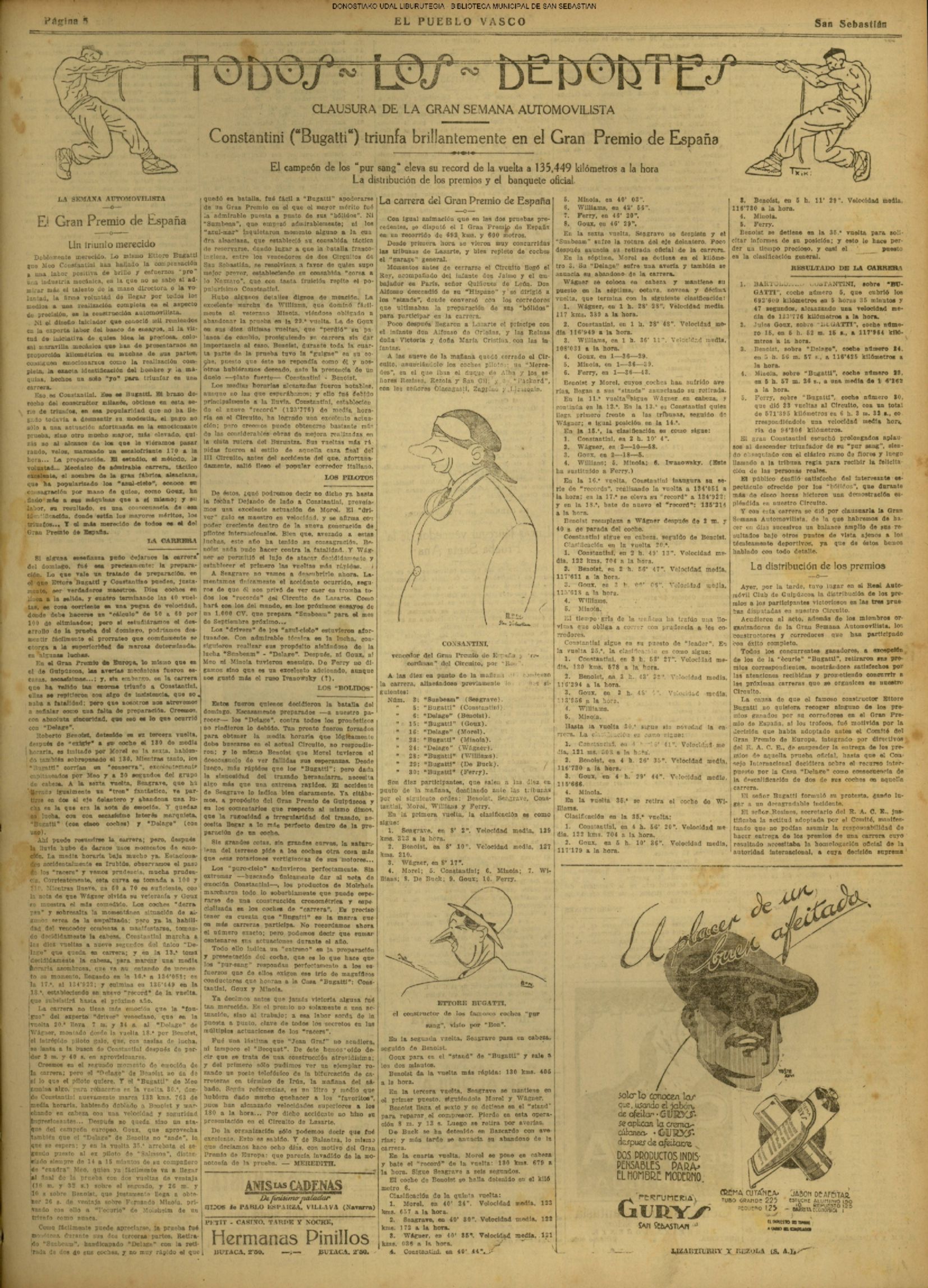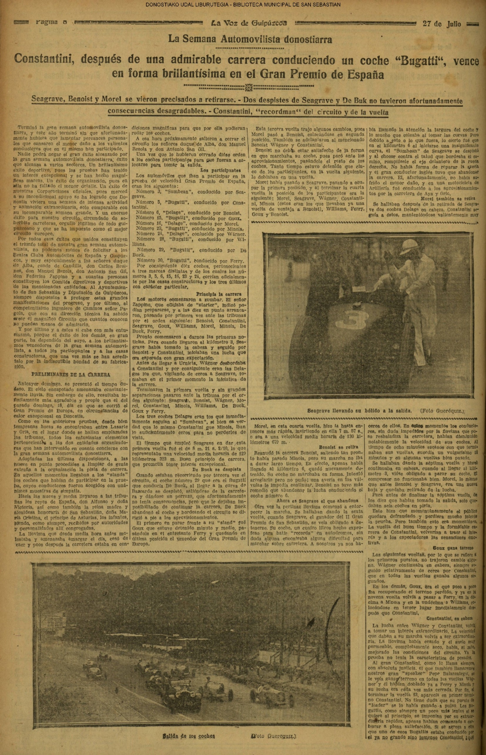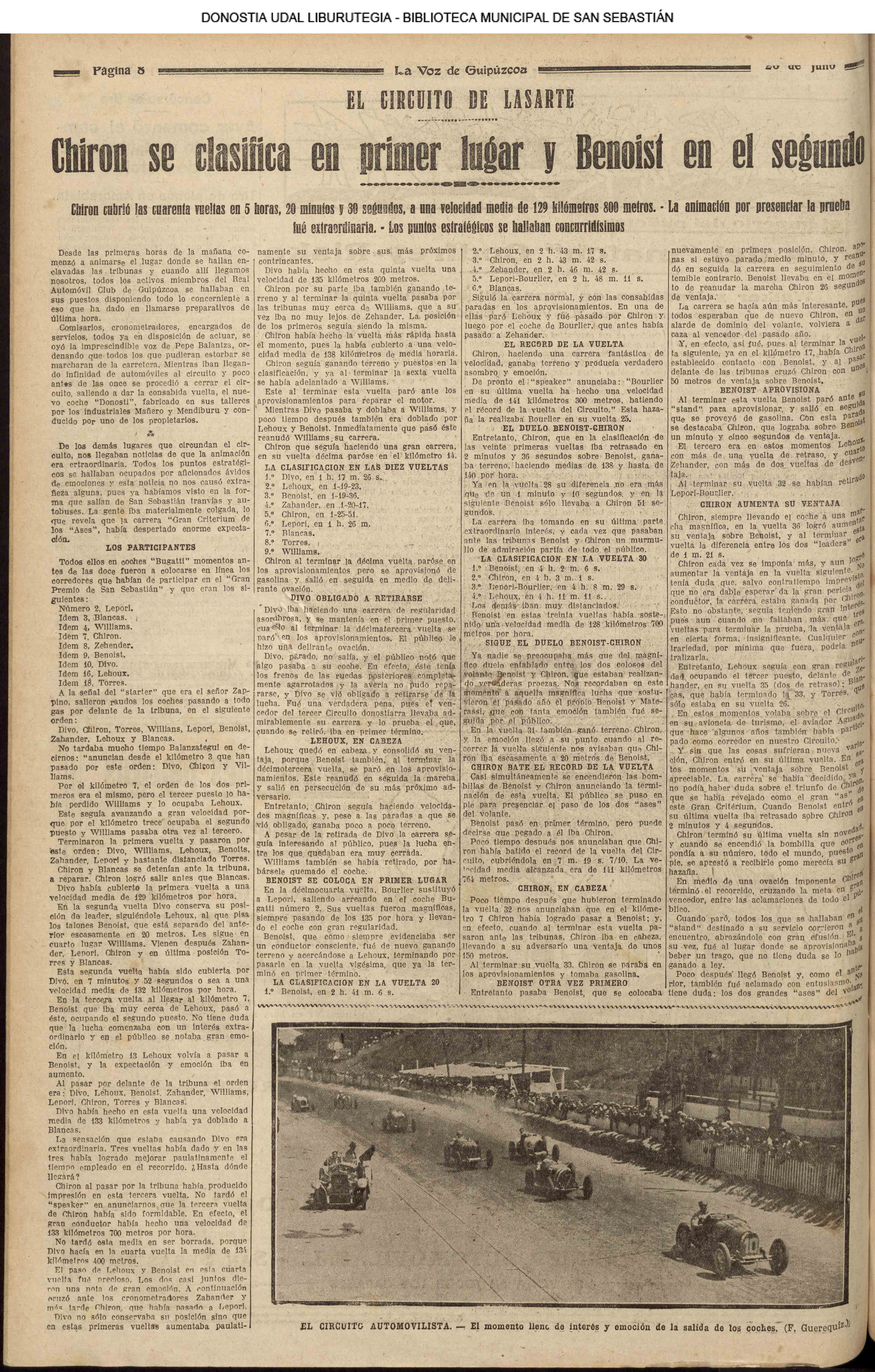 (1928) EL VI CIRCUITO DE LASARTE- GRAN PREMIO DE SAN SEBASTIÁN