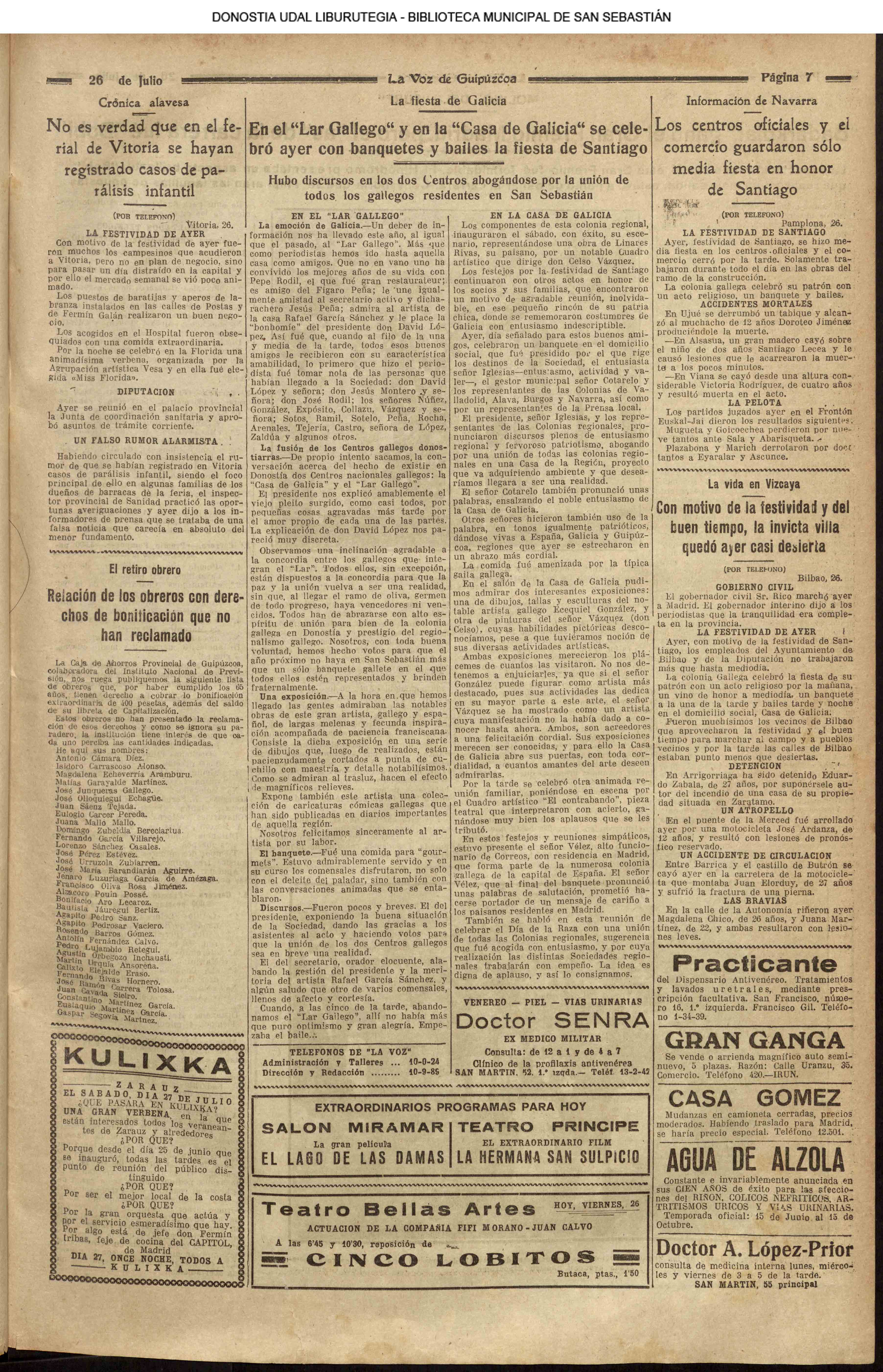 (1935) LA FIESTA DE GALICIA en el "LAR GALLEGO" y en la "CASA DE GALICIA"