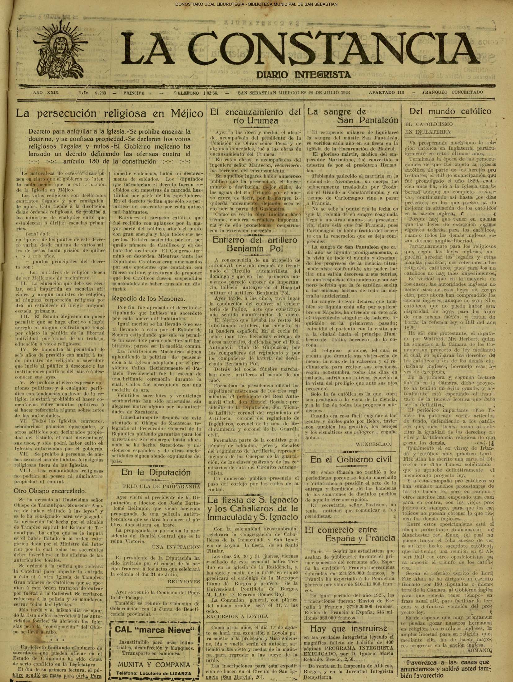 (La Voz de Guipúzcoa)(El Pueblo Vasco / El Pueblo Vasco)(El Pais Vasco)(La Constancia)