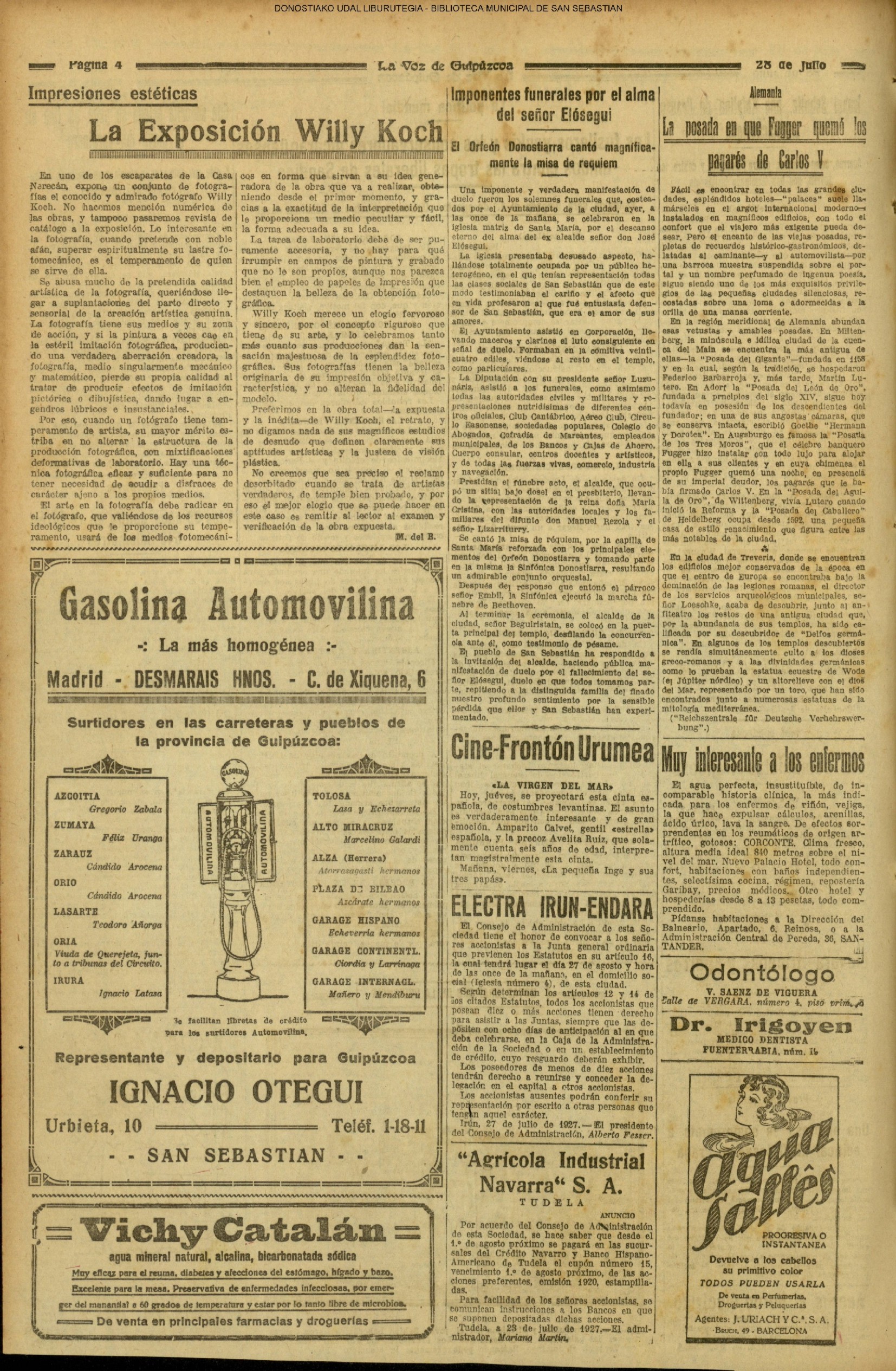 (1927) Imponentes funerales por el alma del ex alcalde, señor Elósegui