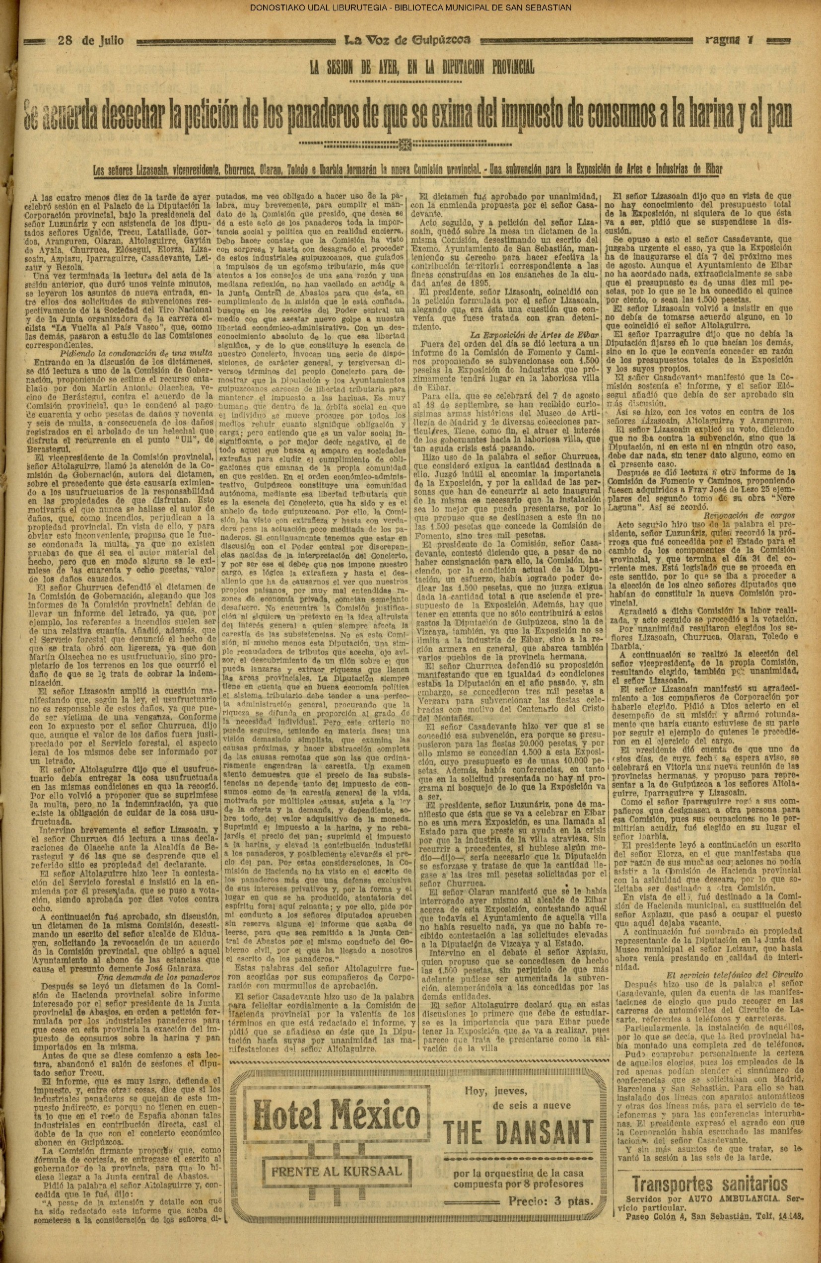 # SESIÓN EN LA DIPUTACIÓN PROVINCIAL.- Se acuerda desechar la petición de los panaderos de que se exima del impuesto de consumos a la harina y el pan