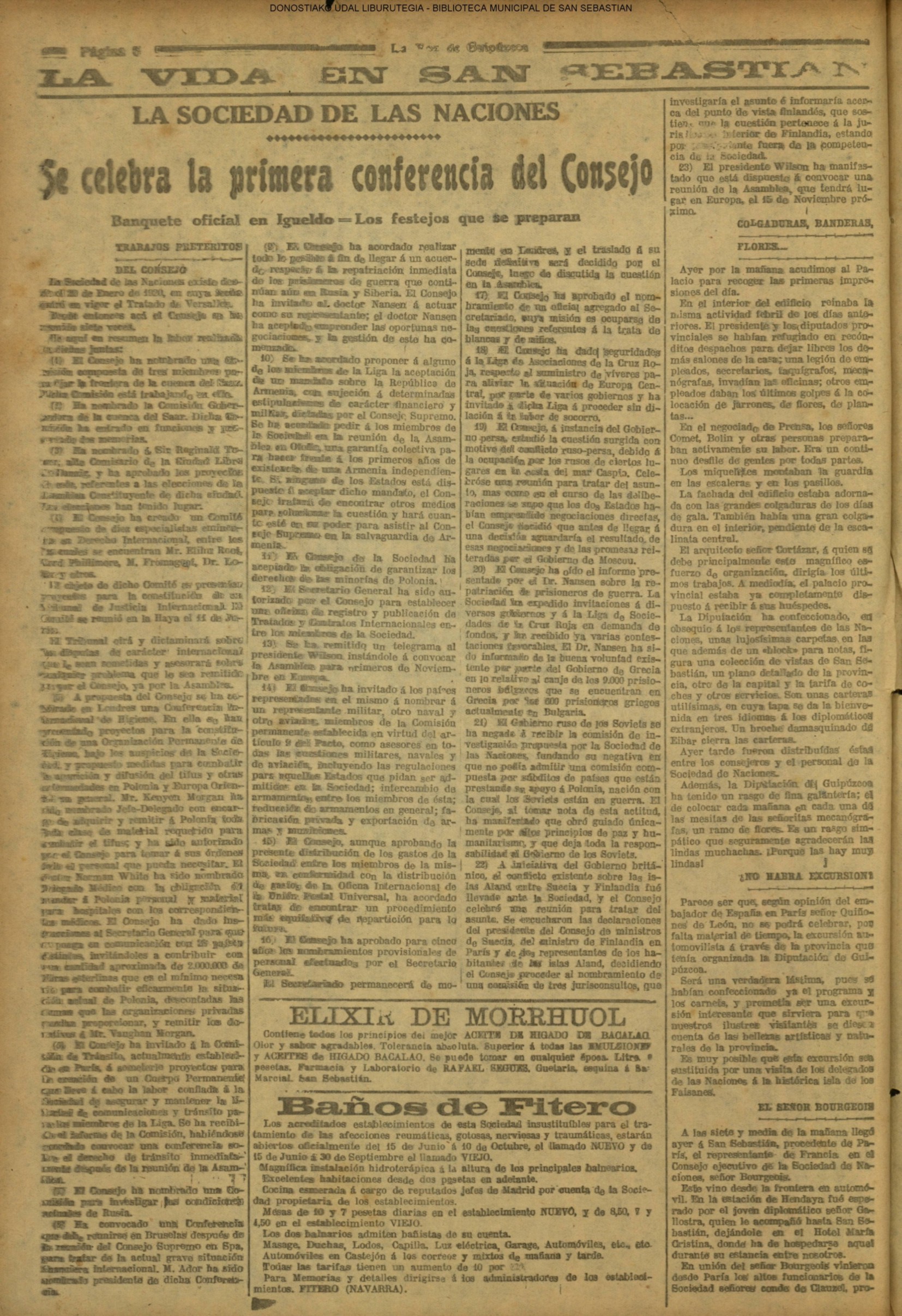 (1920) LA SOCIEDAD DE LAS NACIONES.- Se celebra la primera conferencia del Consejo.