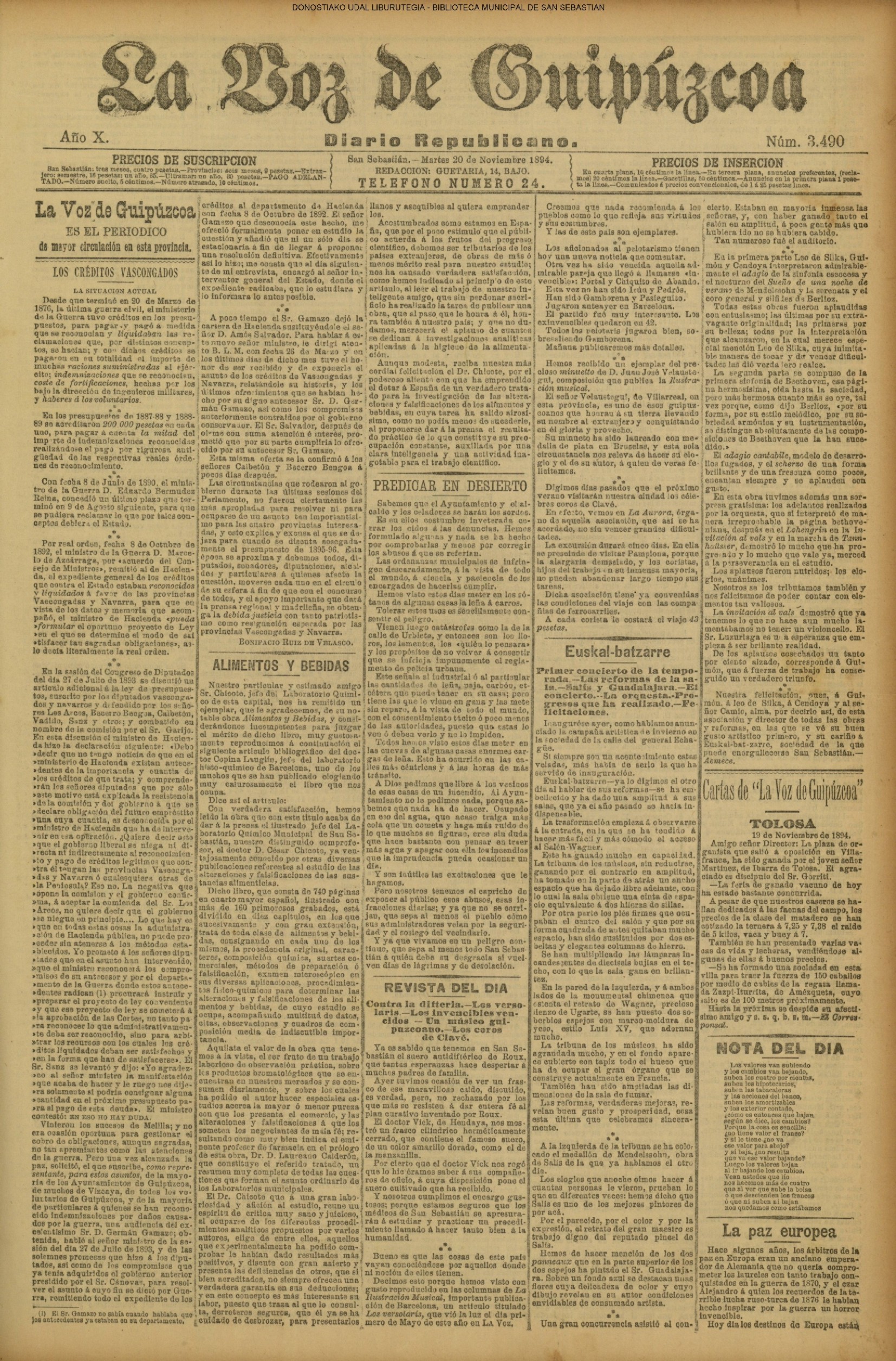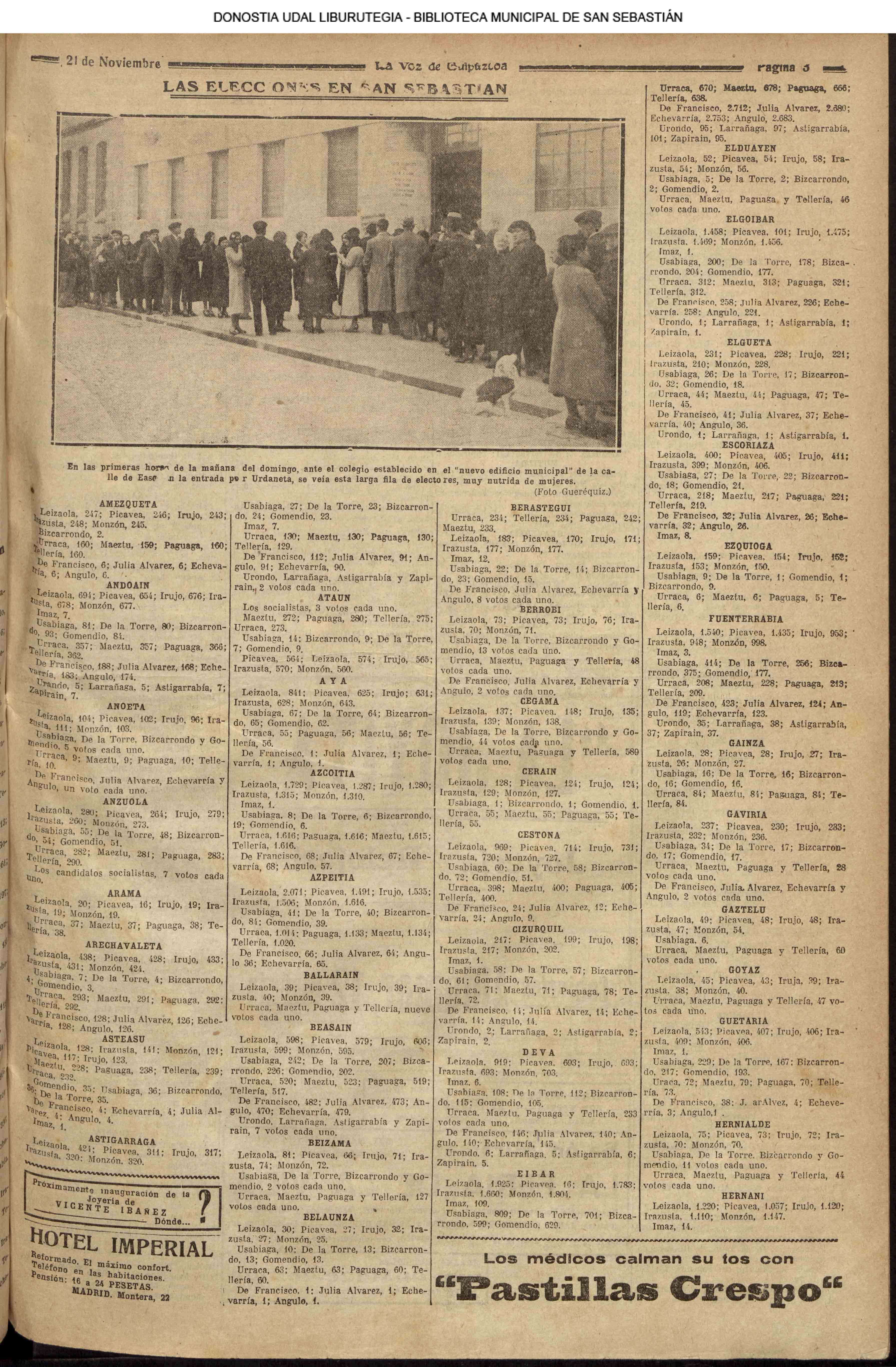 (La Voz de Guipúzcoa/cont)(El Pueblo Vasco)(El Pais Vasco)(La Constancia) |