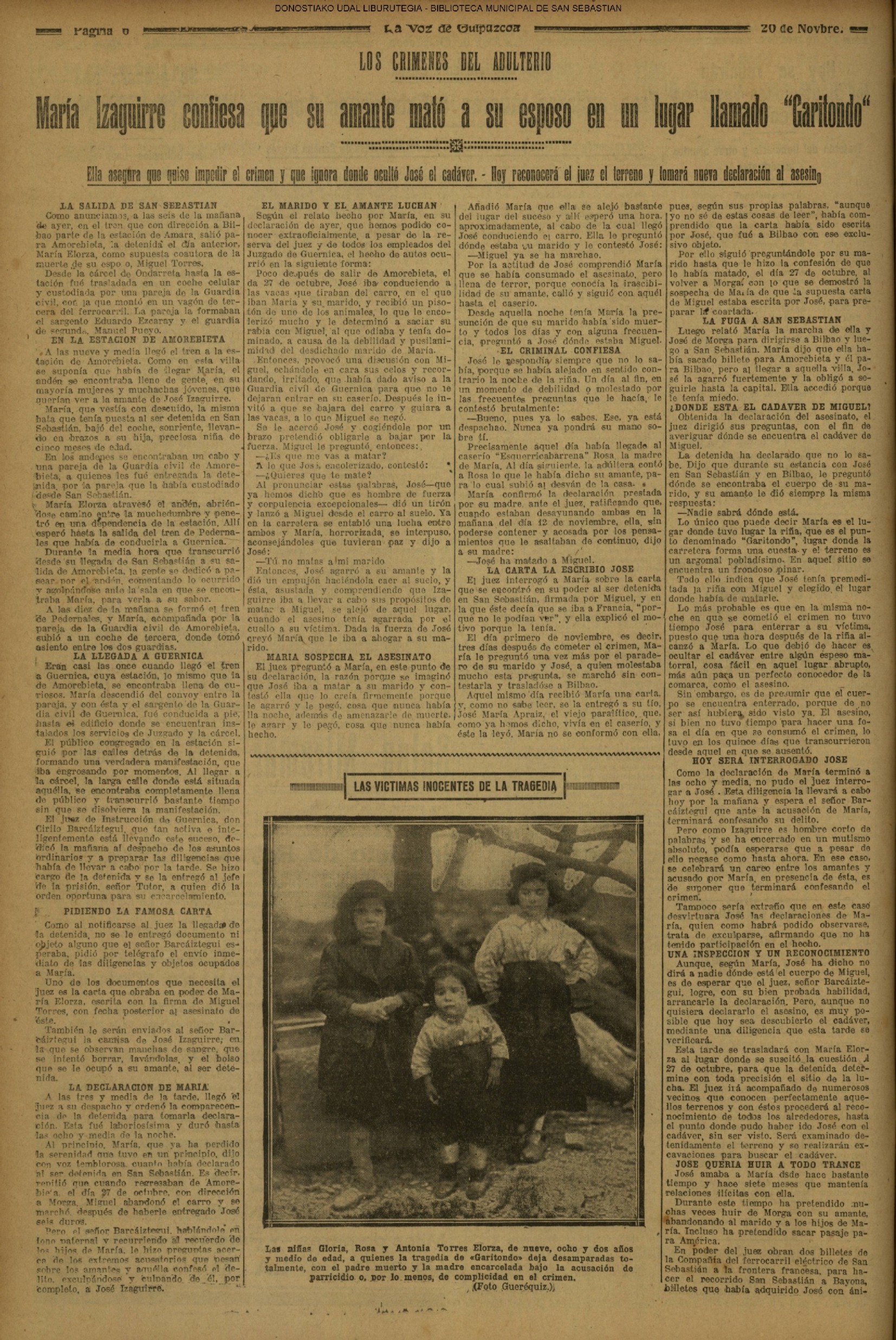 # LOS CRIMENES DEL ADULTERIO - María Izaguirre confiesa que su amante mató a su esposo en un lugar llamado "Garitondo"