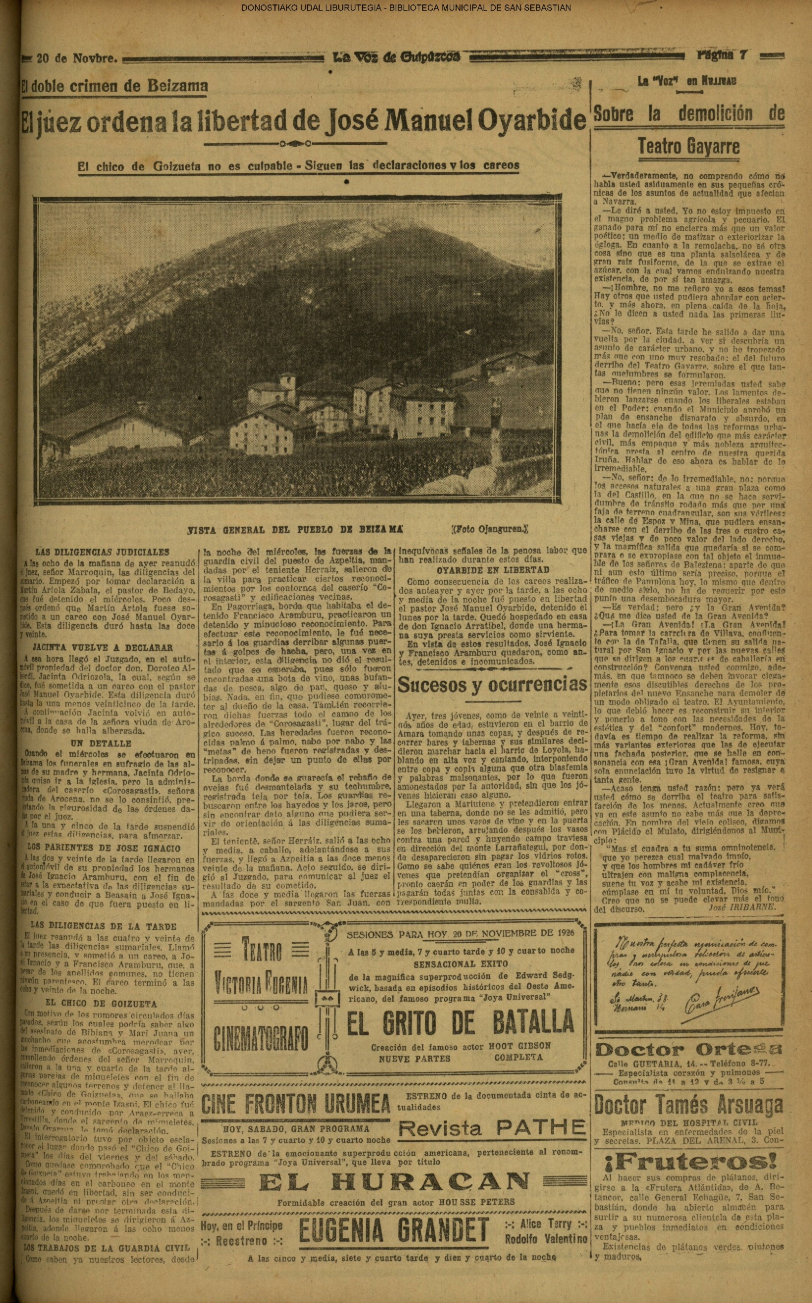 # EL DOBLE CRIMEN DE BEIZAMA - El juez ordena la libertad de José Manuel Oyarbide - El chico de Goizueta no es culpableSiguen las declaraciones y los careos