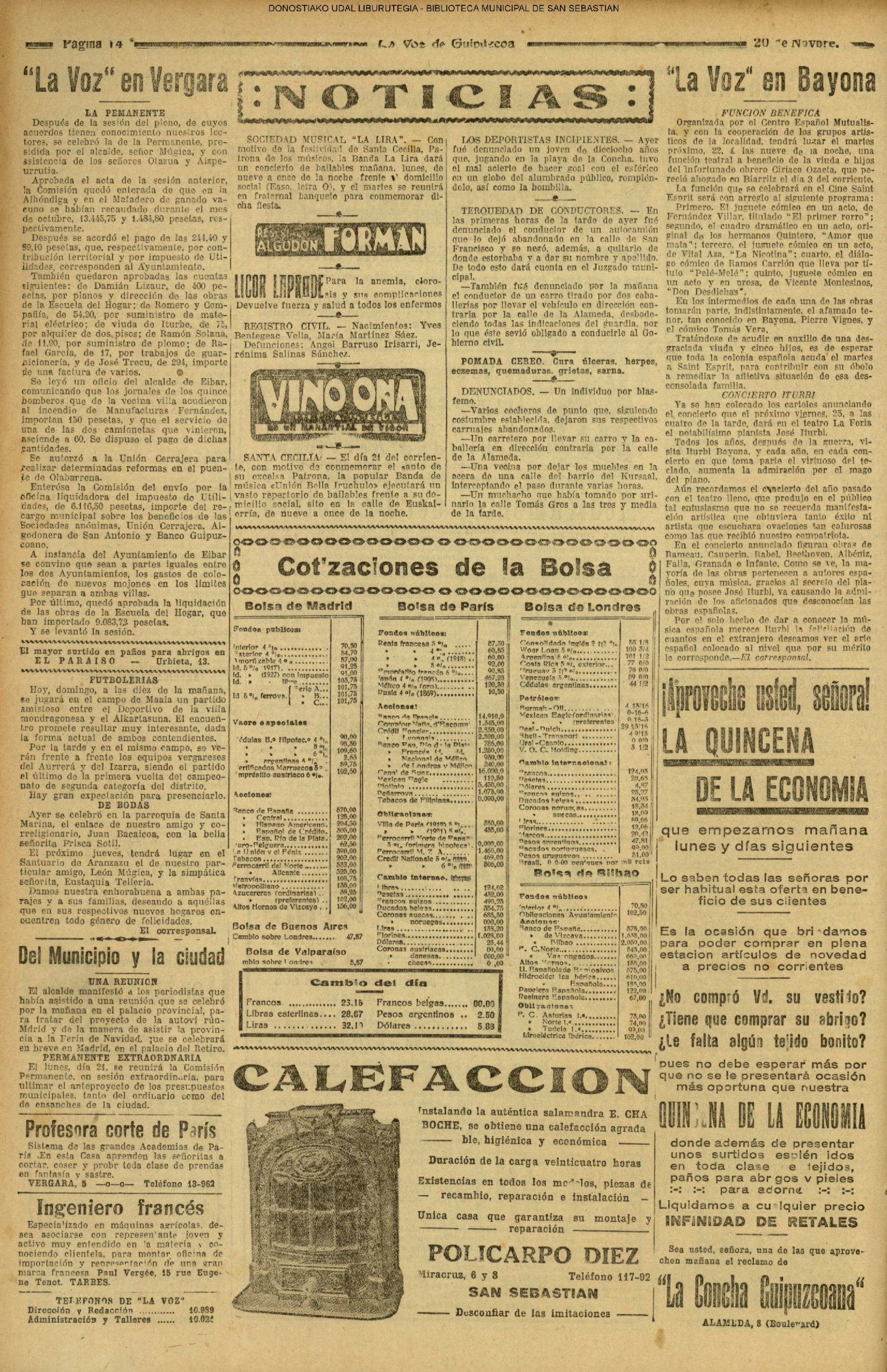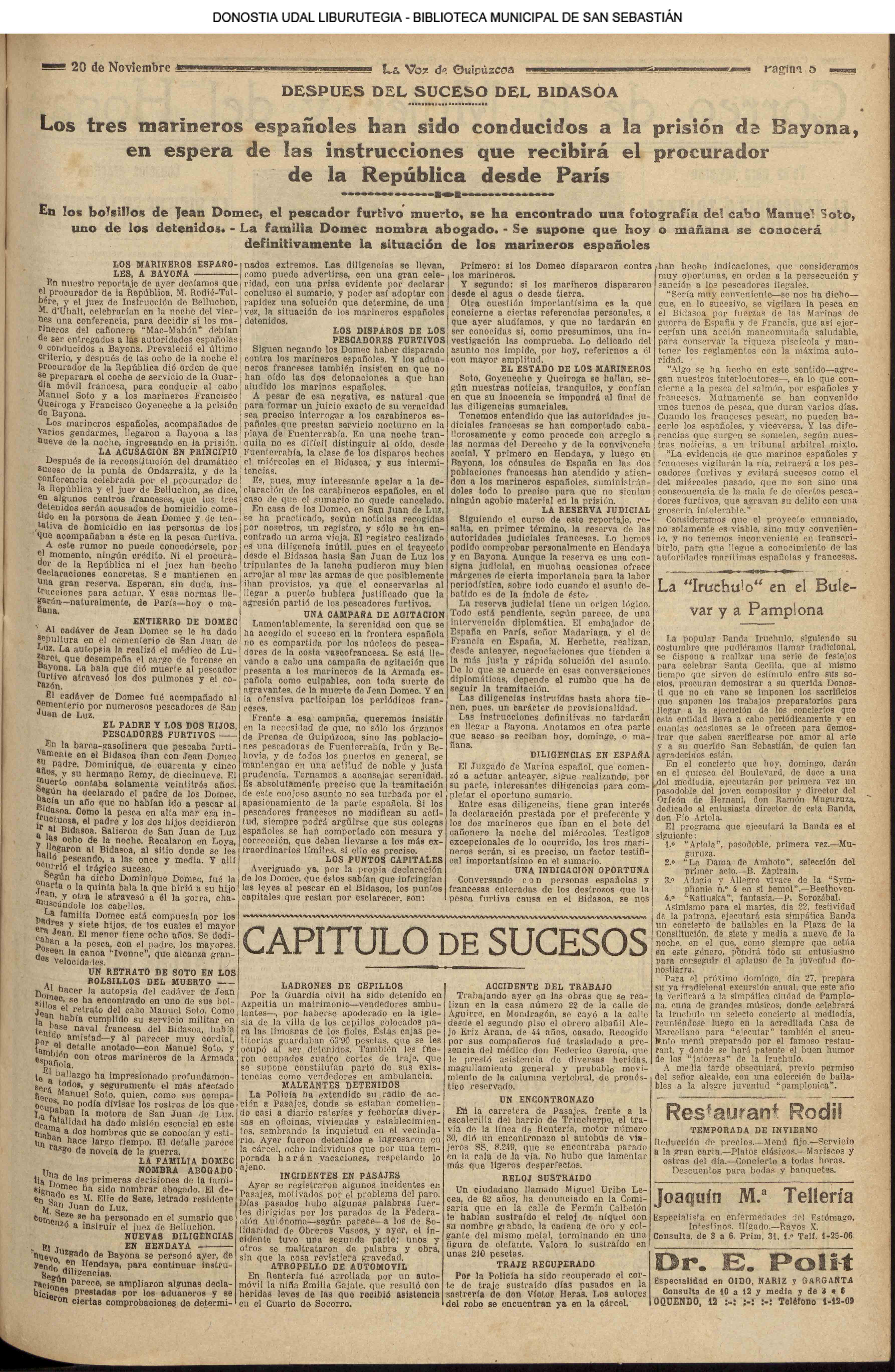 (La Voz de Guipúzcoa)(El Pueblo Vasco)(El Pais Vasco)(La Constancia) |