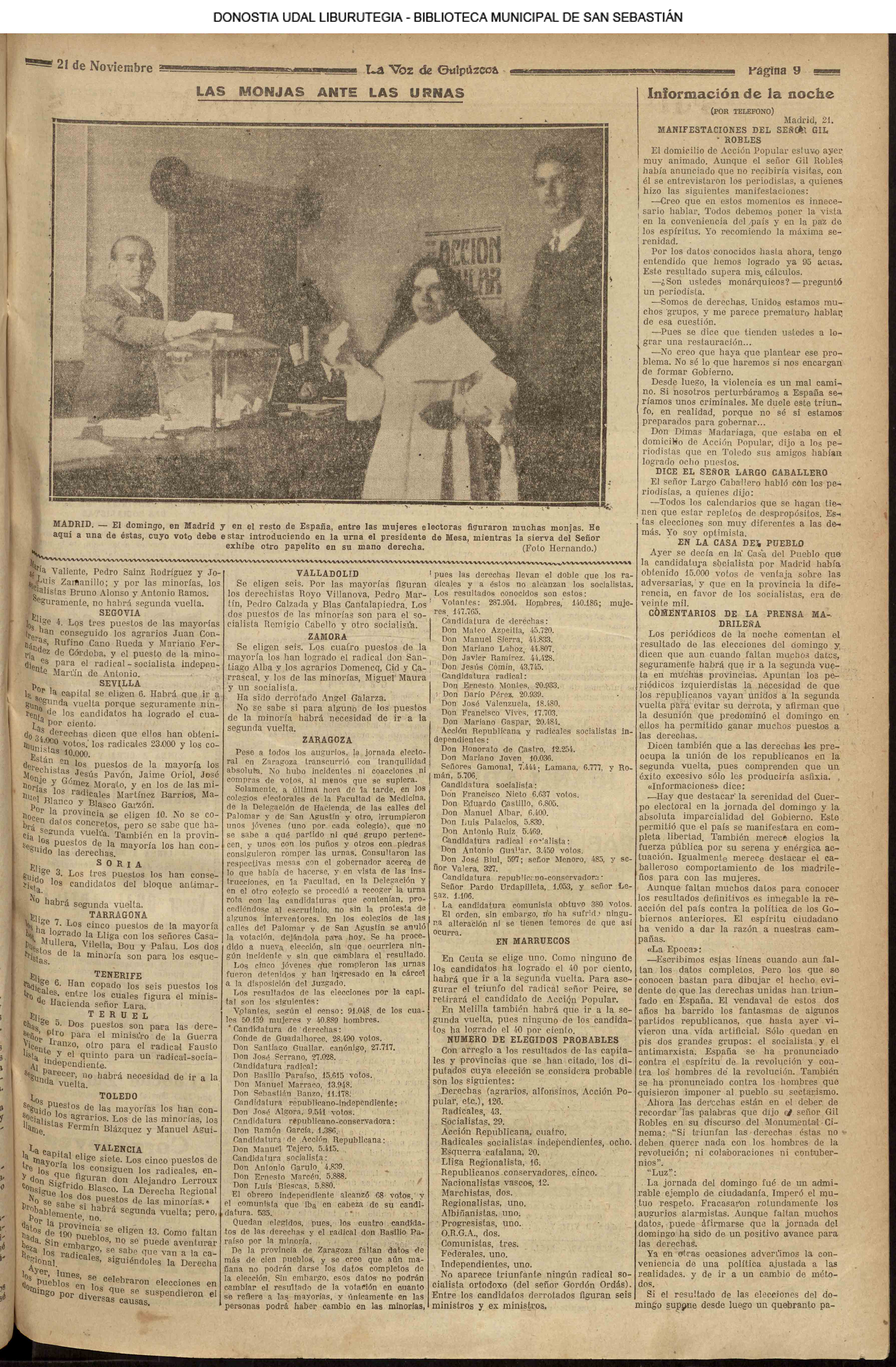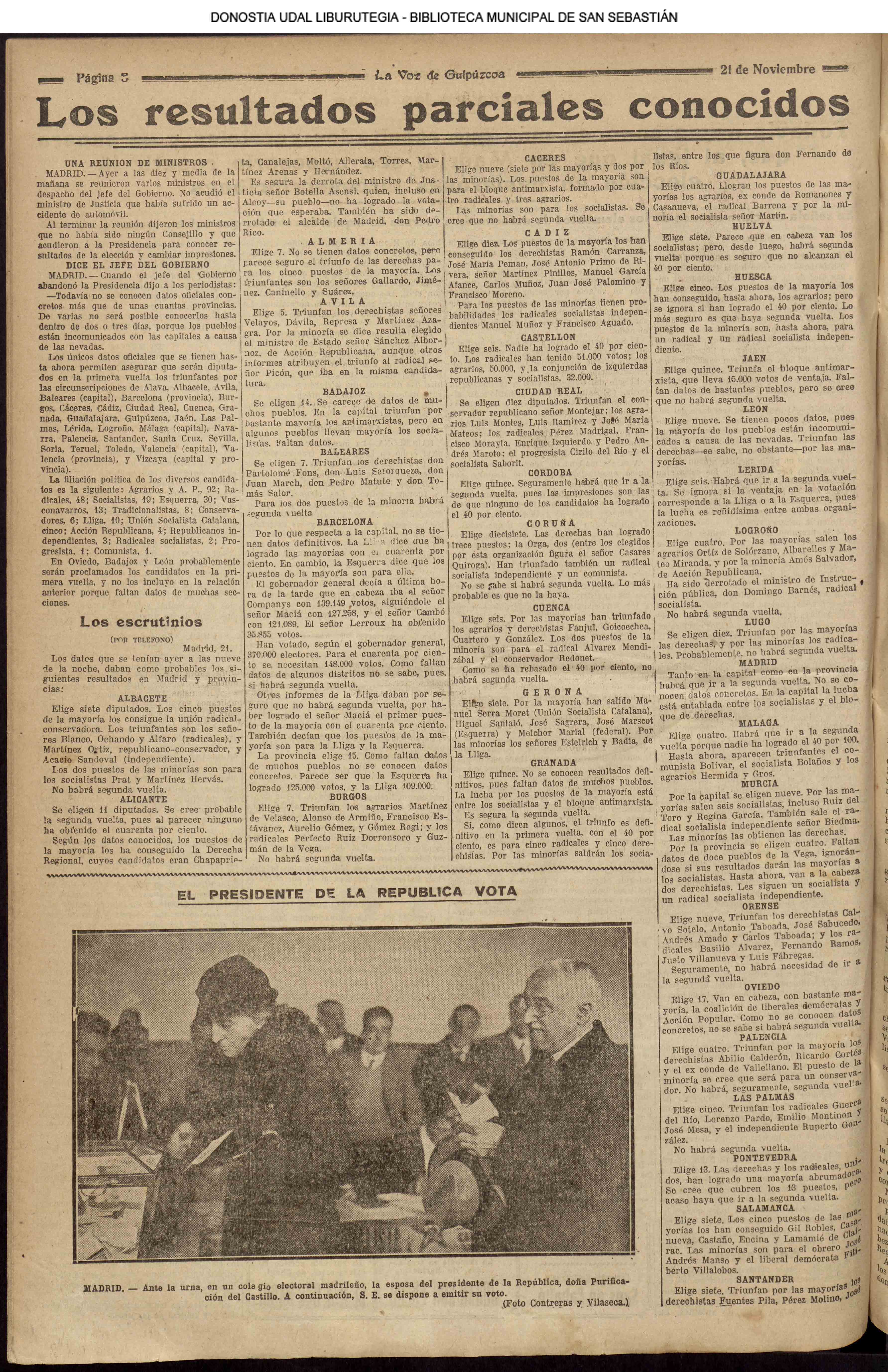 1933: en España se celebra por primera vez el sufragio universal en las Elecciones Generales que darán la victoria a los partidos de derechas.
