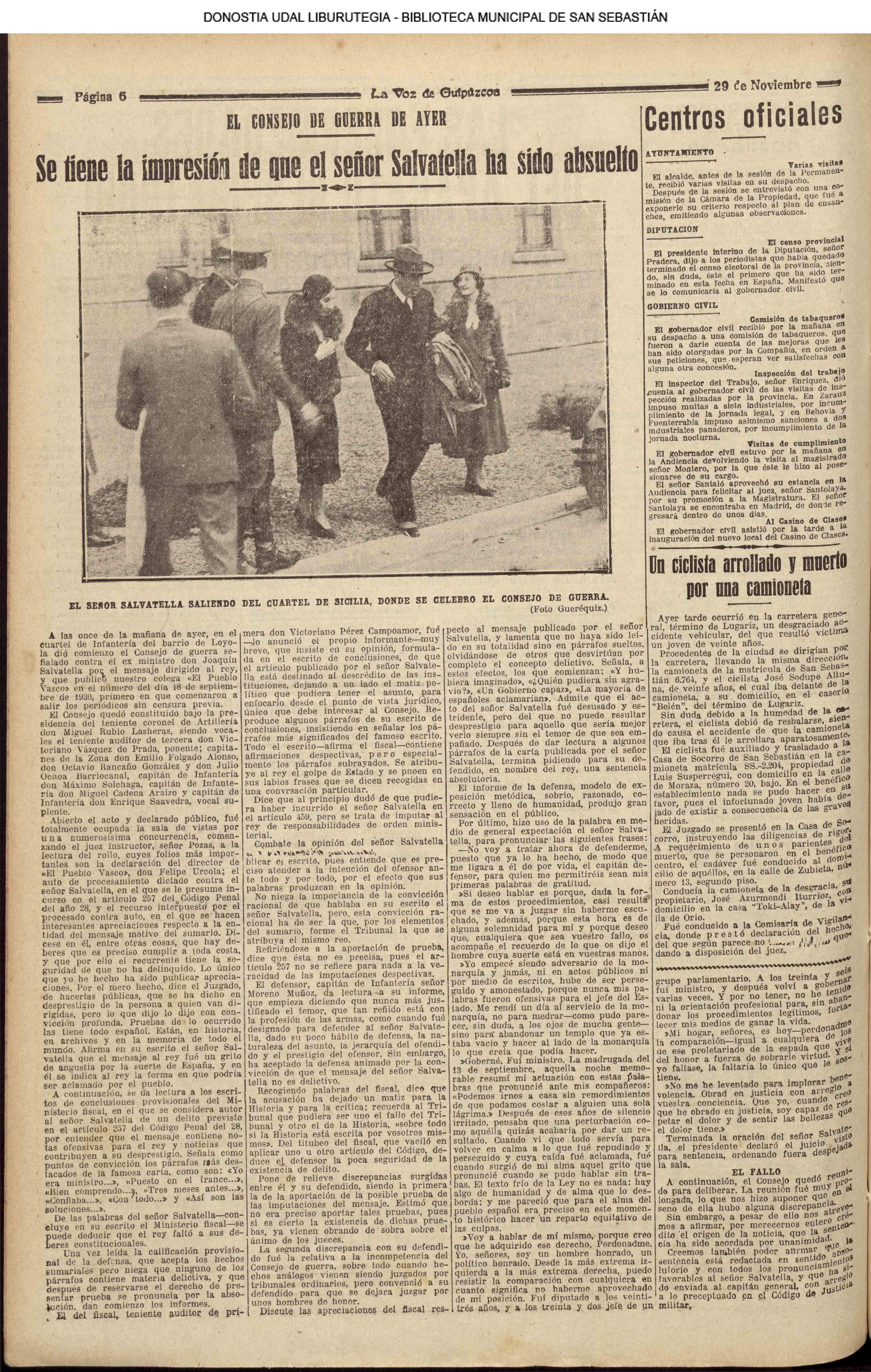 # Por un «mensaje abierto» dirigido al Rey, se celebra esta mañana en los Cuarteles de Loyola, un Consejo de Guerra contra el ex-ministro D. Joaquín Salvatella.