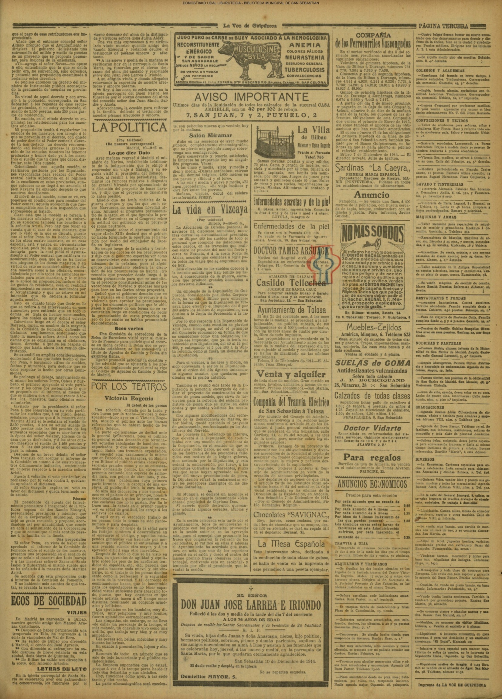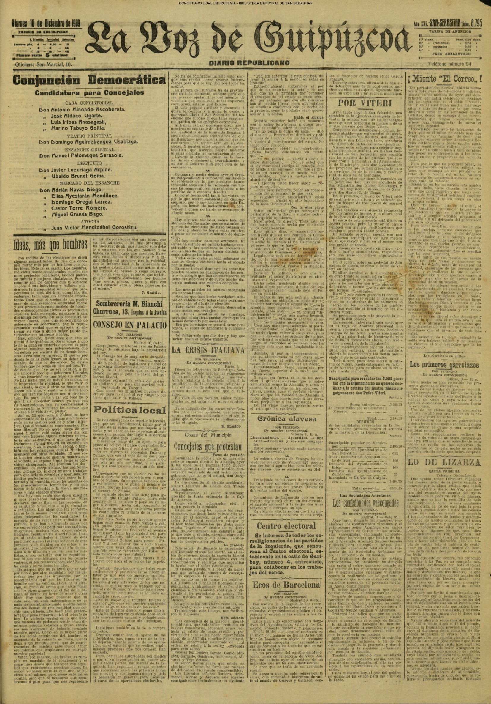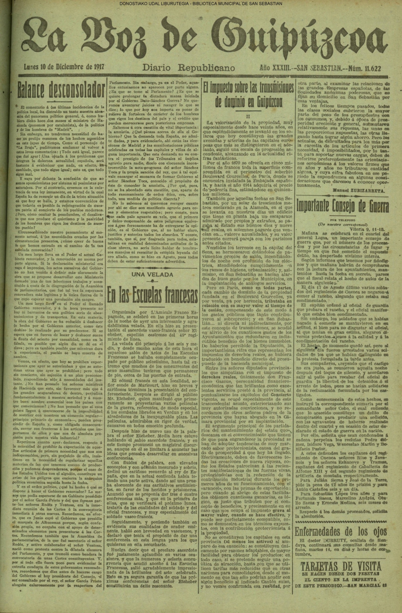 (1904)(V) COMISIÓN PROVINCIAL - Acuerdos (La Voz de Guipúzcoa) (1909)(J) COSAS DEL MUNICIPIO - Toma de posesión (La Voz de Guipúzcoa) (1914)(X) DIPUTACIÓN PROVINCIAL (La Voz de Guipúzcoa) PLENO MUNICIPAL (La Voz de Guipuzcoa/cont) (1917) UNA VELADA EN LAS ESCUELAS FRANCESAS