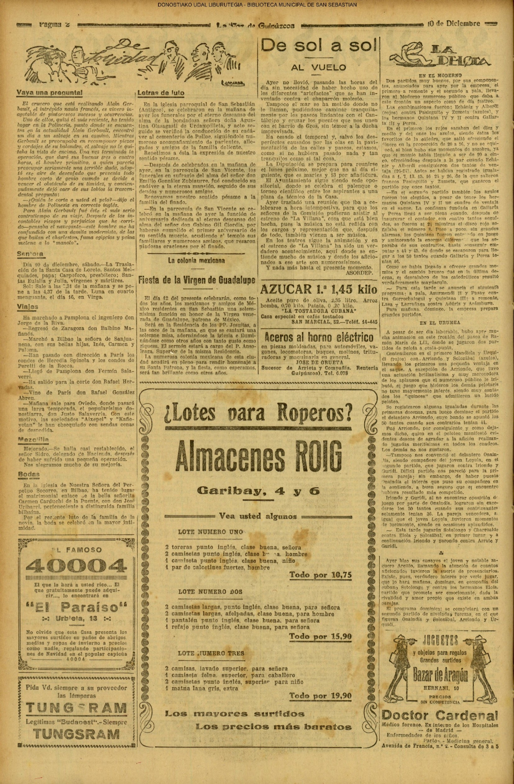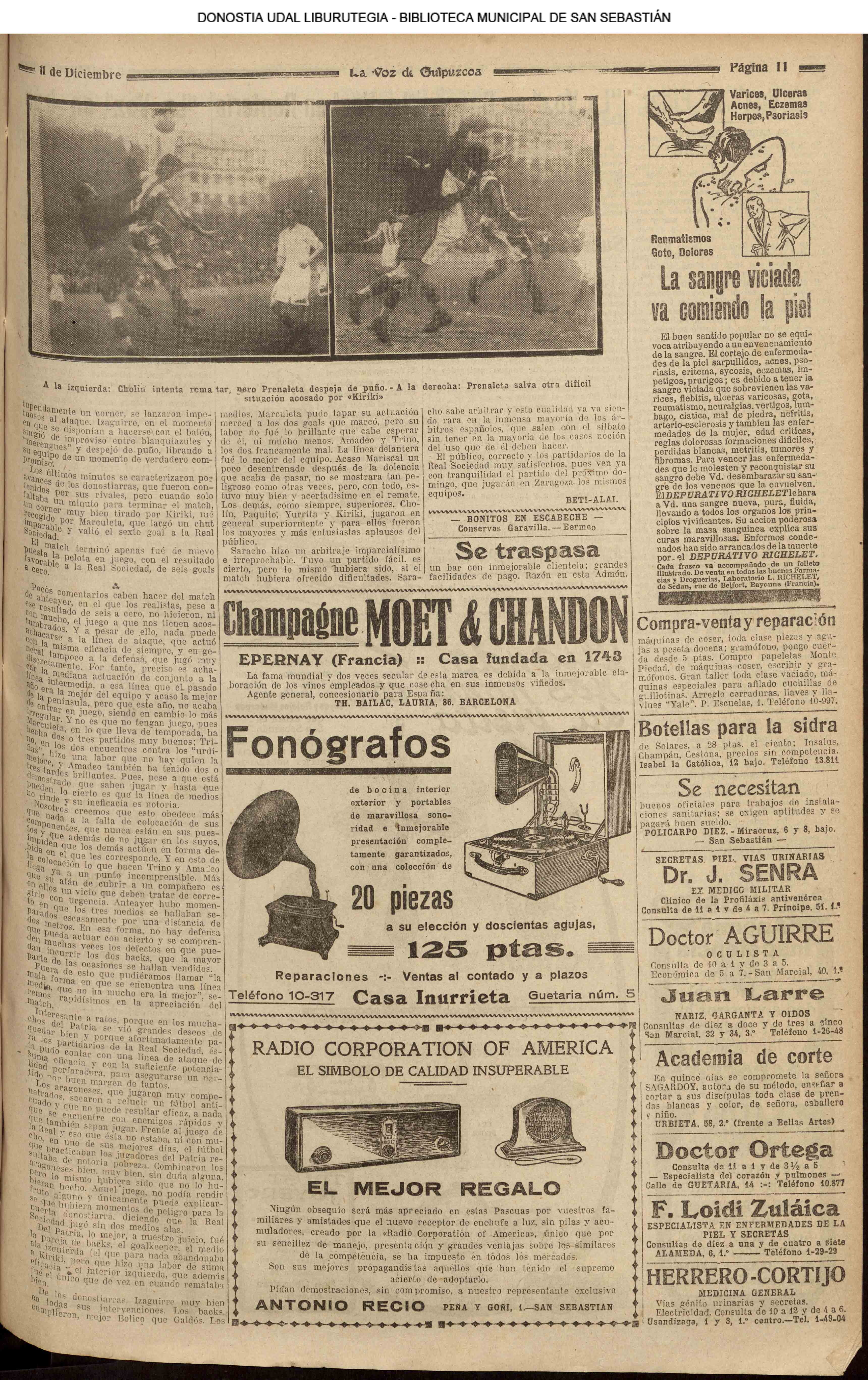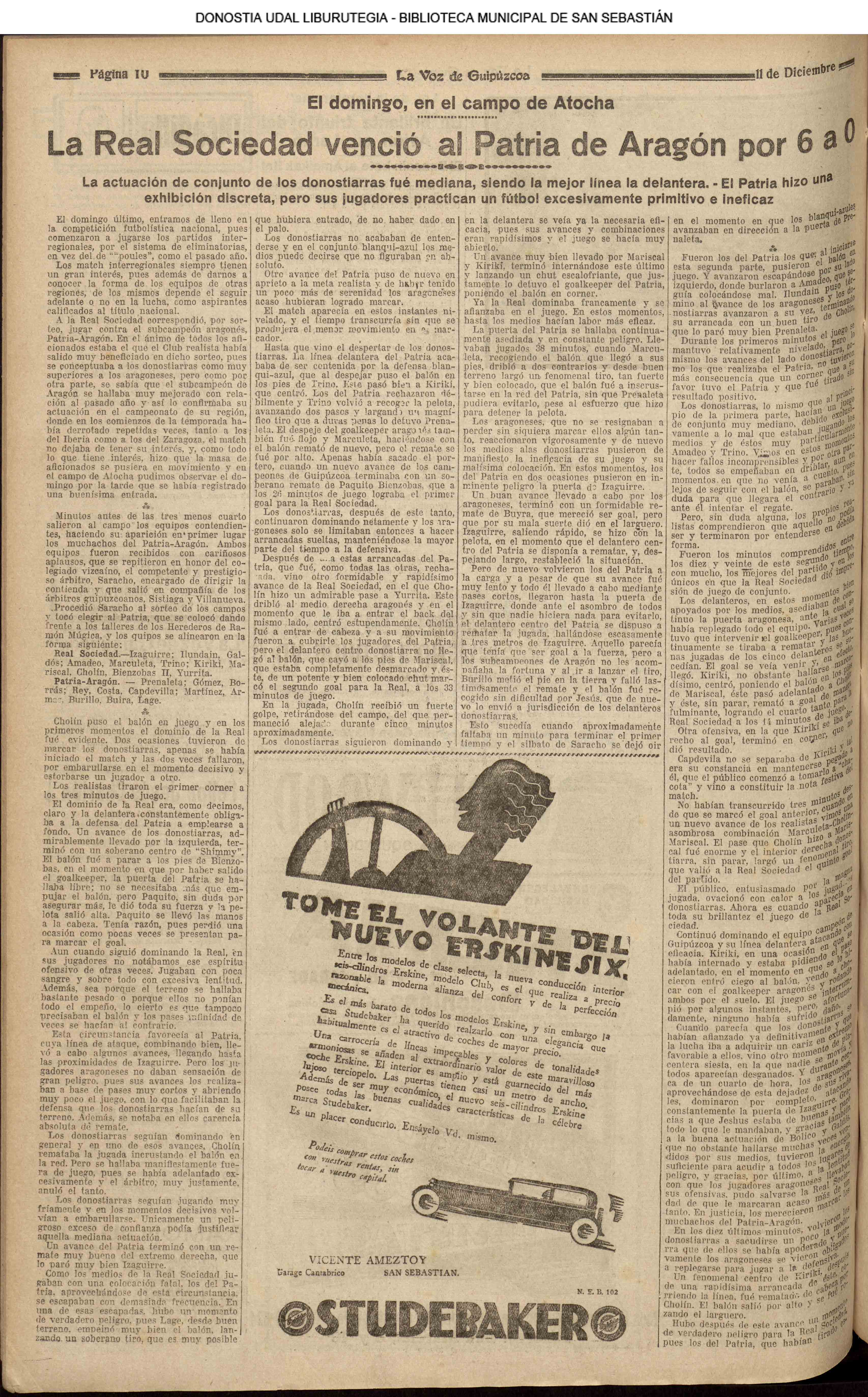 (La Voz de Guipúzcoa) (1928) FOOTBALL - REAL SOCIEDAD (6-0) PATRIA ARAGÓN (La Voz de Guipúzcoa/cont)(El Pueblo Vasco)(El Pais Vasco)(La Constancia) (1929) Fallece D. Javier de Olasagasti y Azcue, ex-teniente de alcaide.