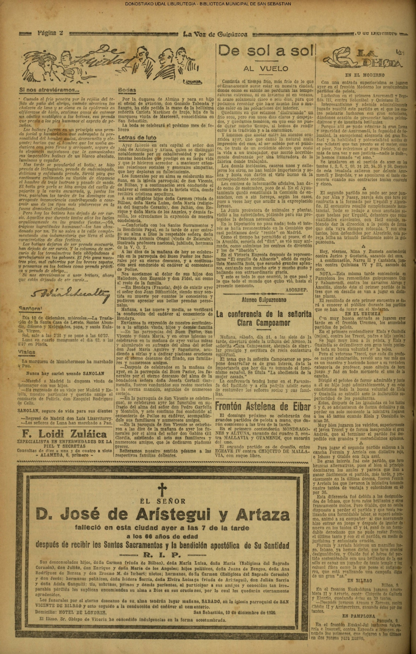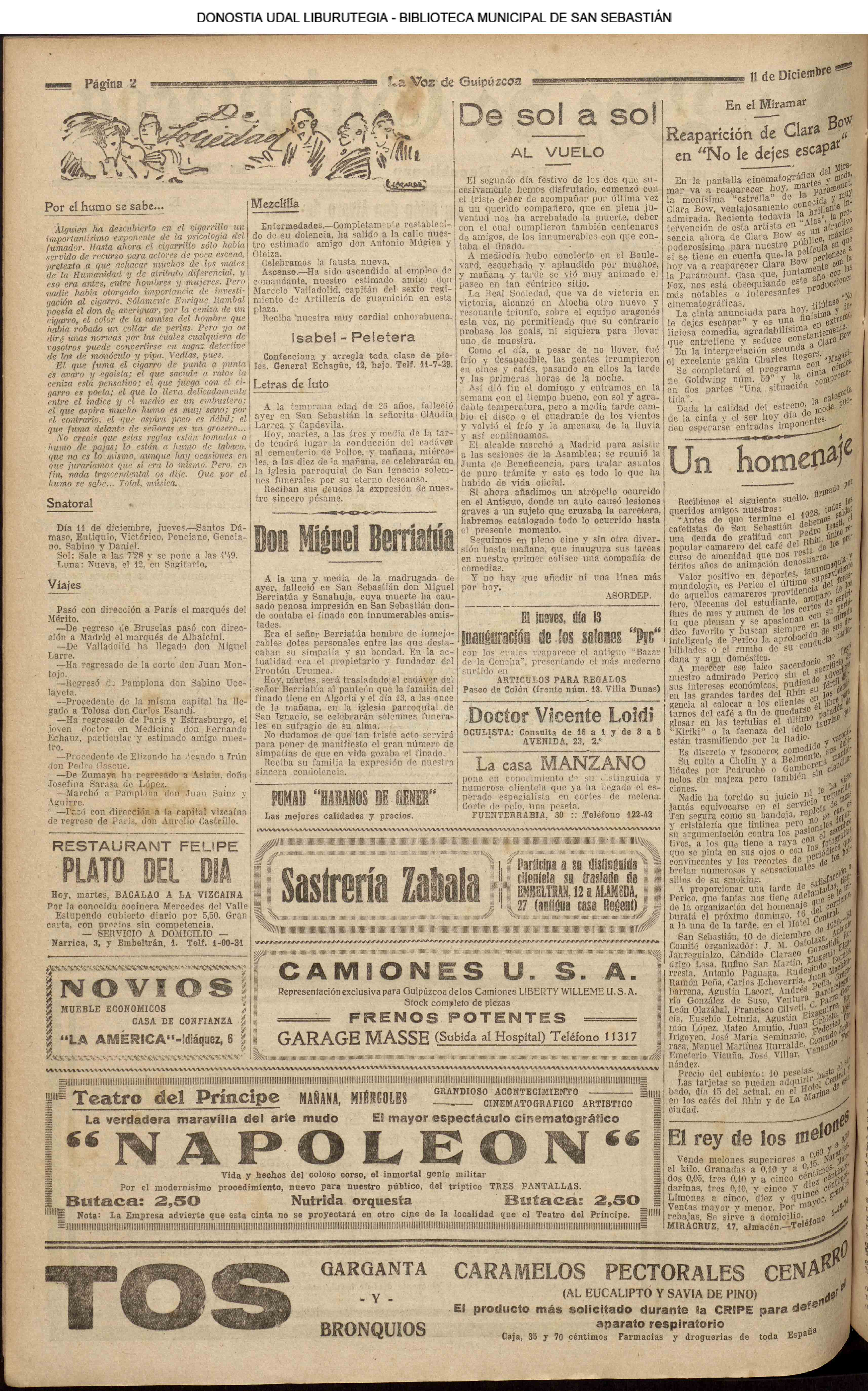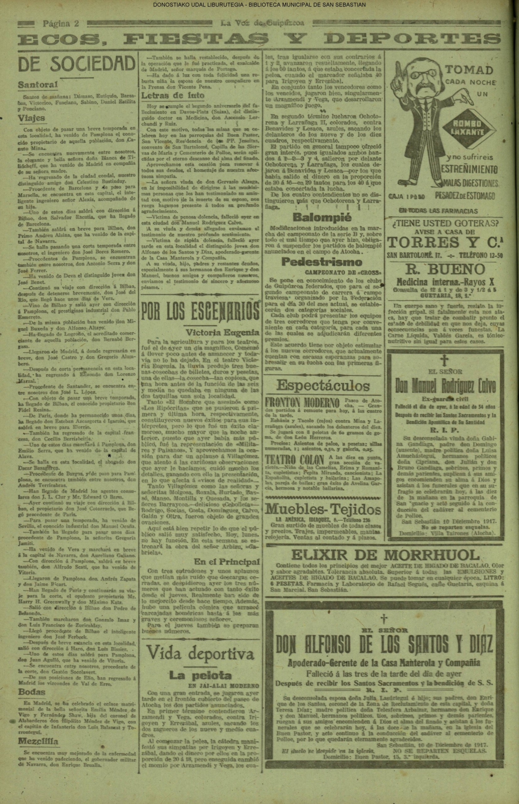 (La Voz de Guipúzcoa) (1928) FOOTBALL - REAL SOCIEDAD (6-0) PATRIA ARAGÓN (La Voz de Guipúzcoa/cont)(El Pueblo Vasco)(El Pais Vasco)(La Constancia) (1929) Fallece D. Javier de Olasagasti y Azcue, ex-teniente de alcaide.