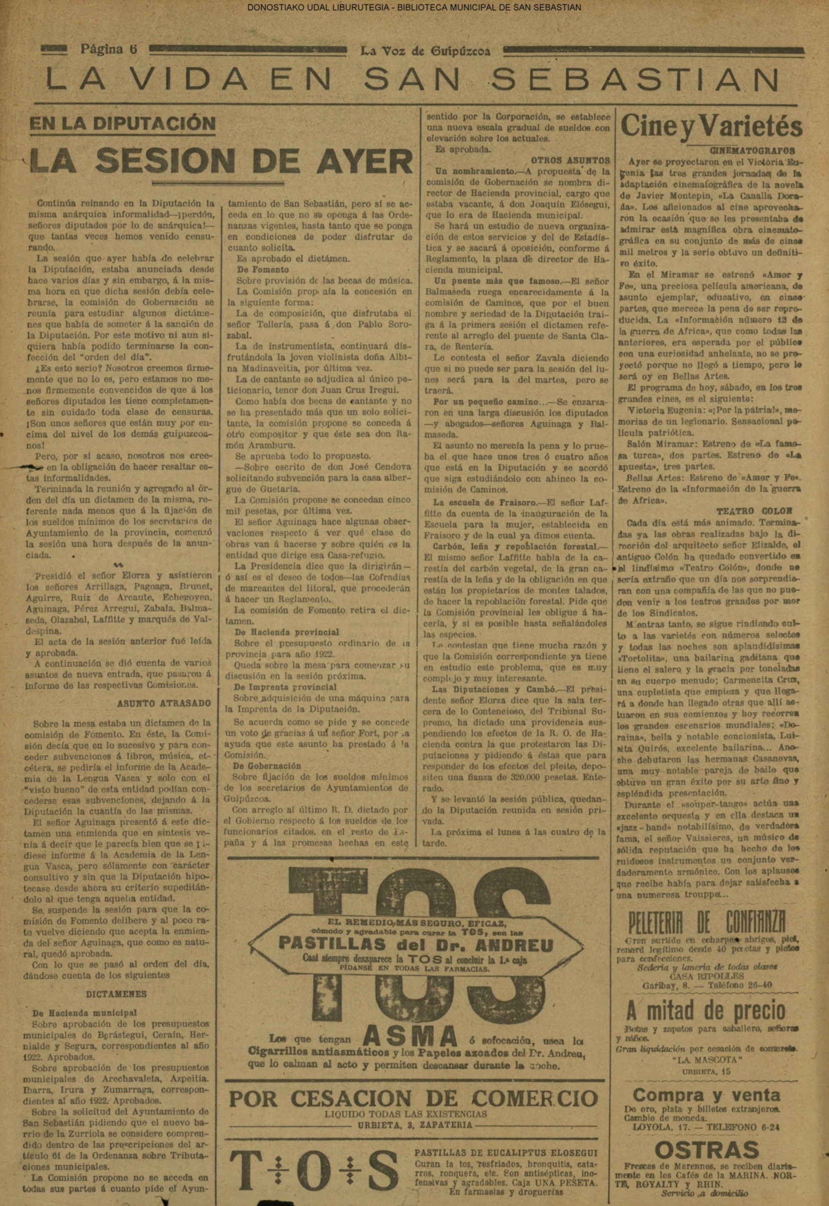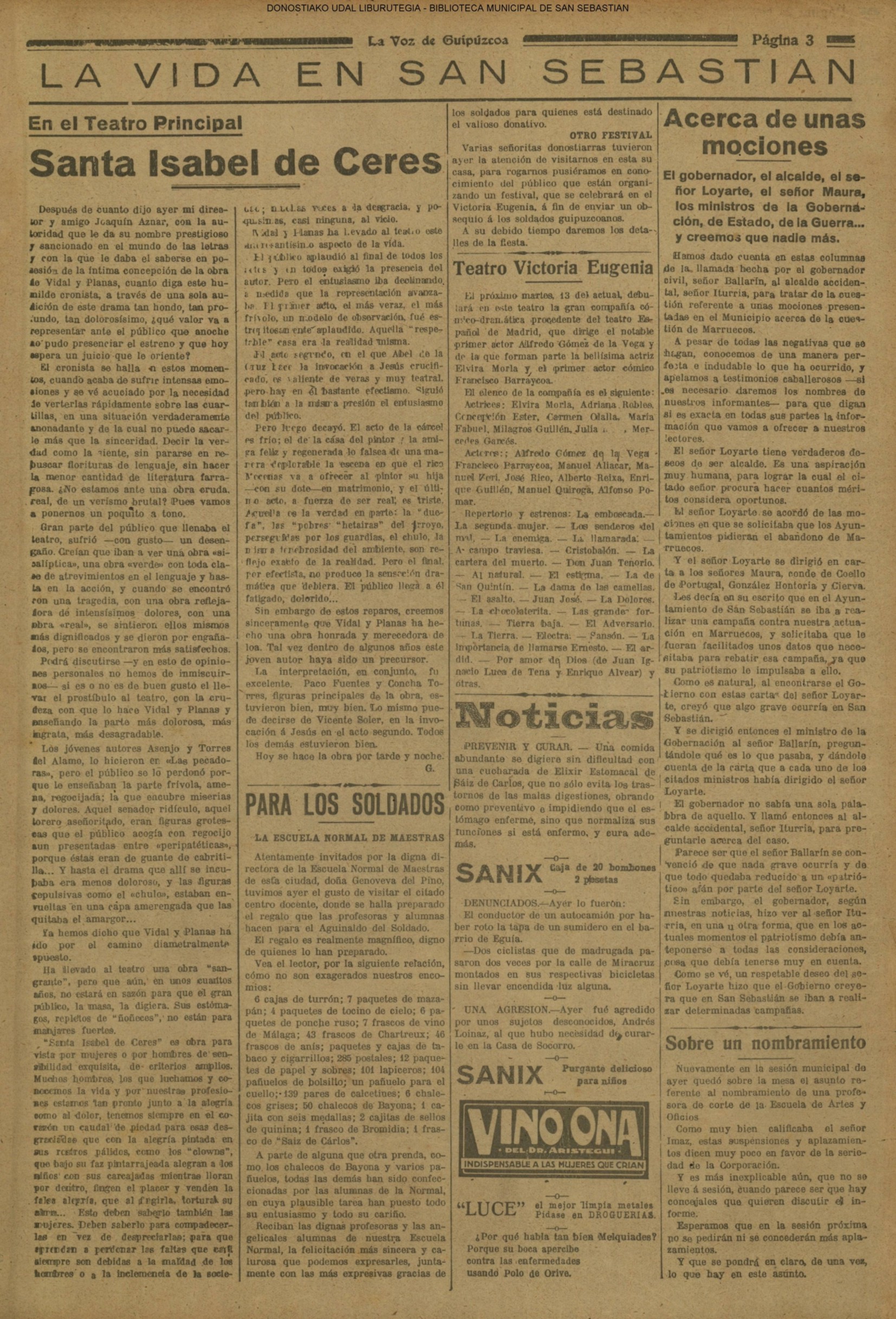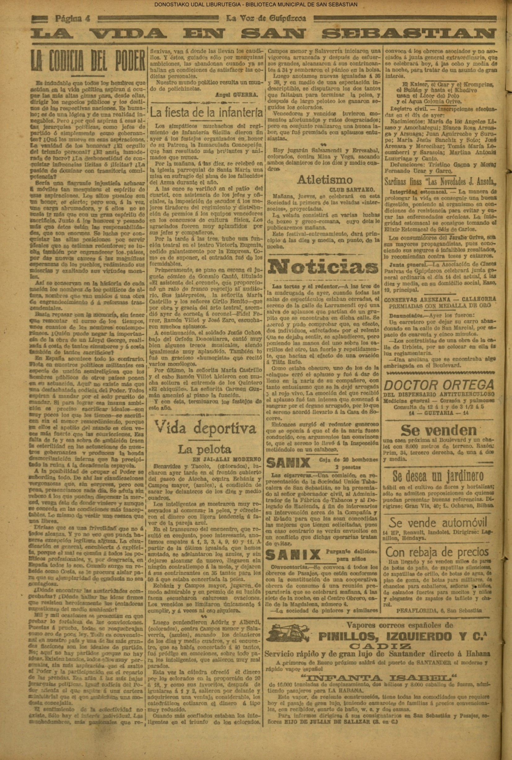 (La Voz de Guipúzcoa) (1919)(M) LA FIESTA DE LA INFANTERIA (La Voz de Guipúzcoa) (1921) SESIÓN EN LA DIPUTACIÓN