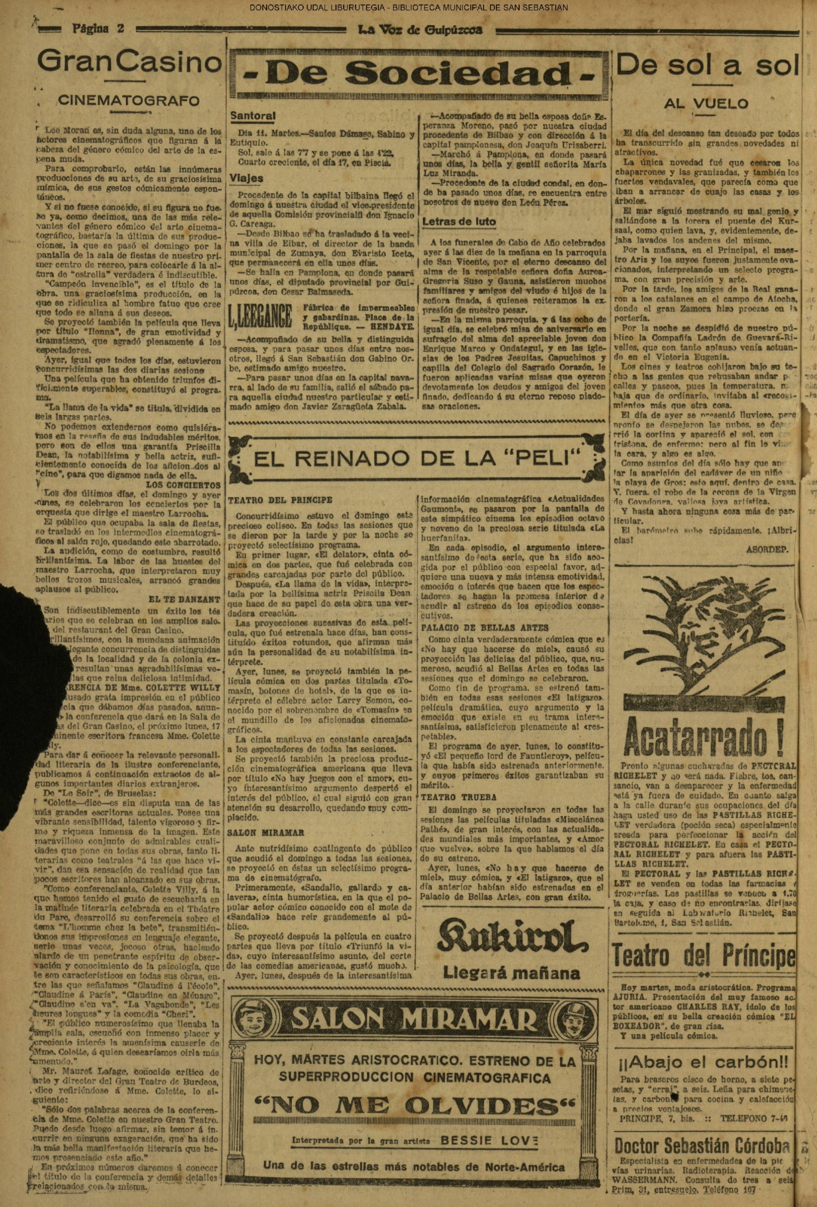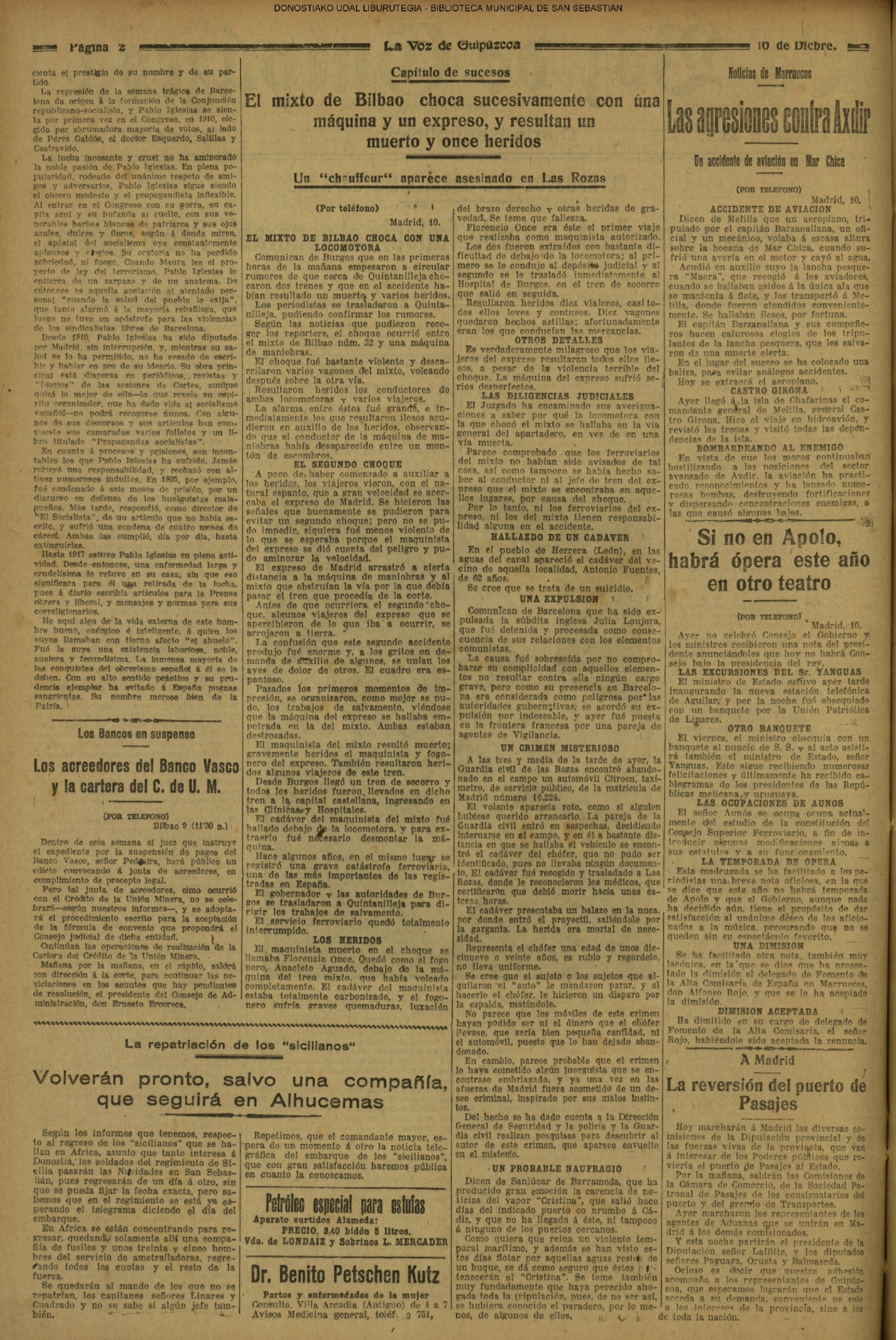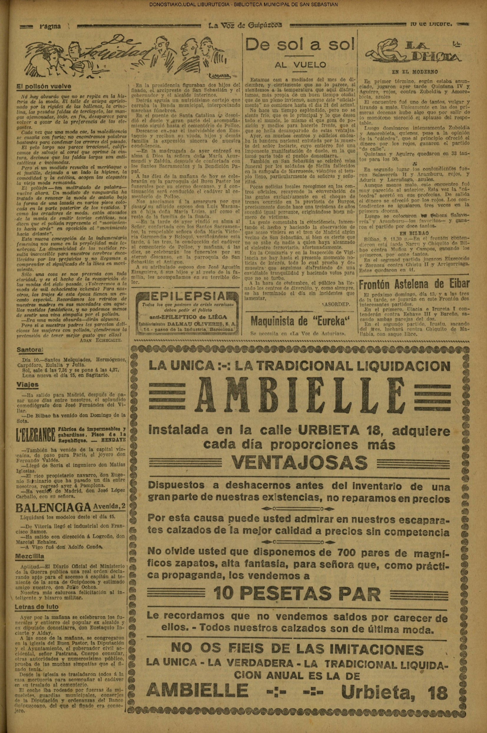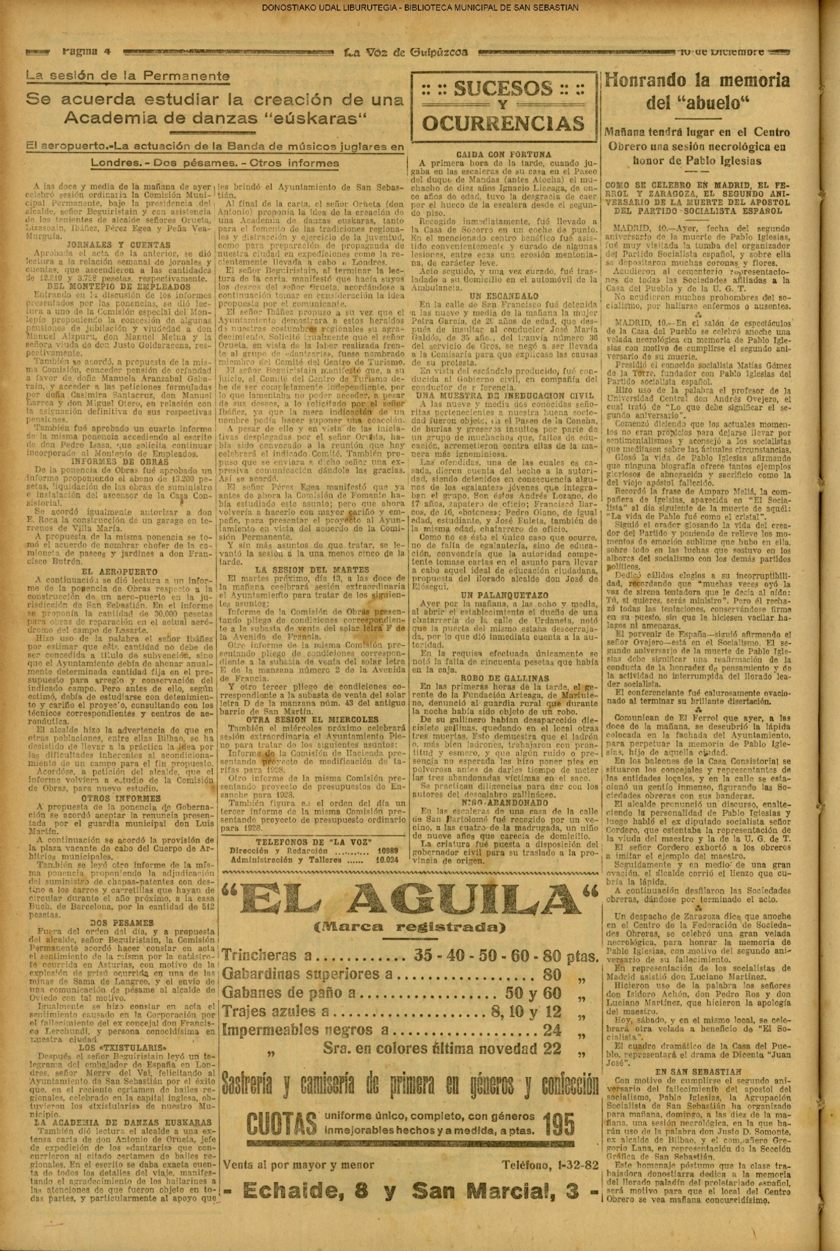 (La Voz de Guipúzcoa) (1919)(M) LA FIESTA DE LA INFANTERIA (La Voz de Guipúzcoa) (1921) SESIÓN EN LA DIPUTACIÓN