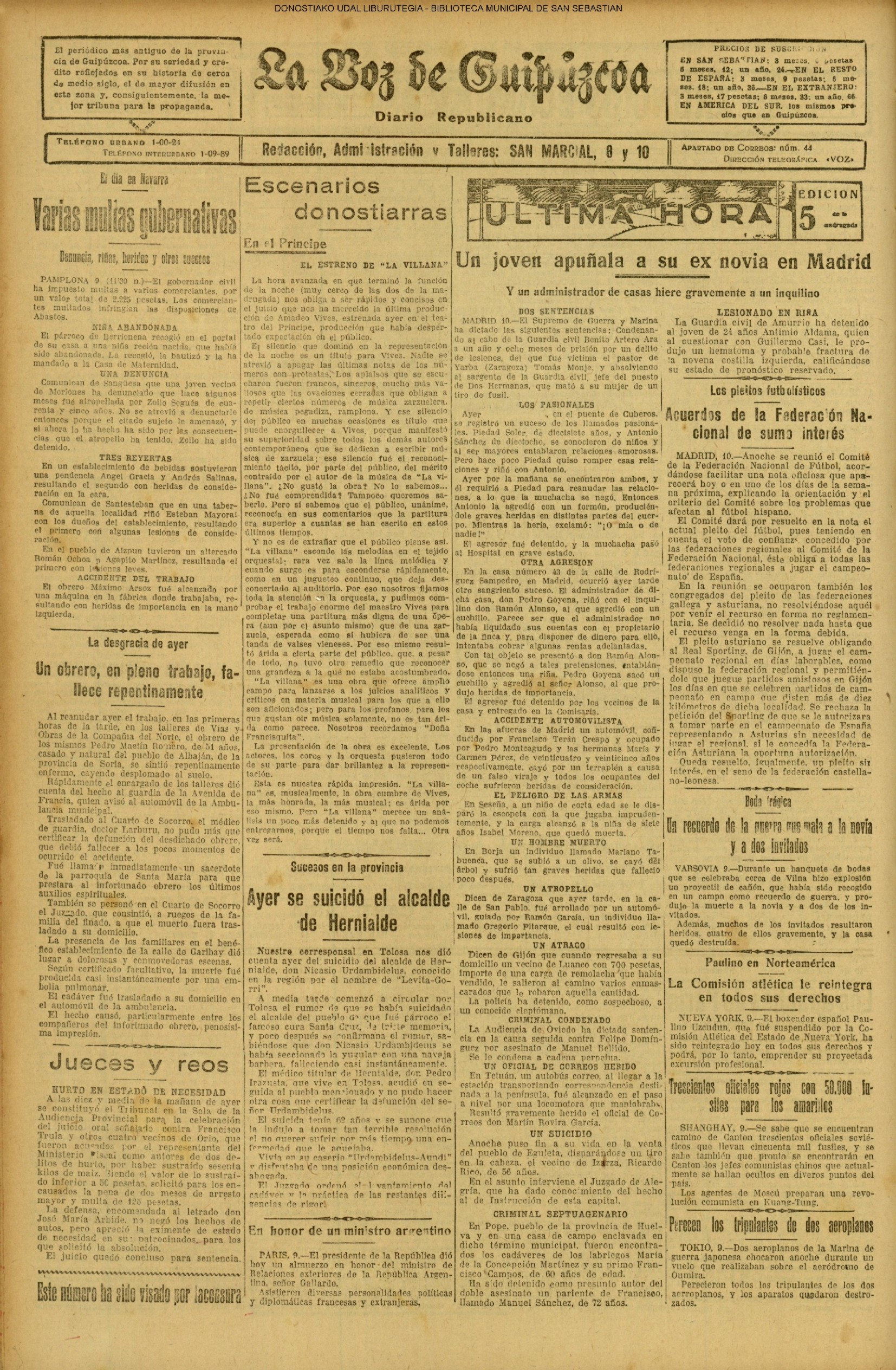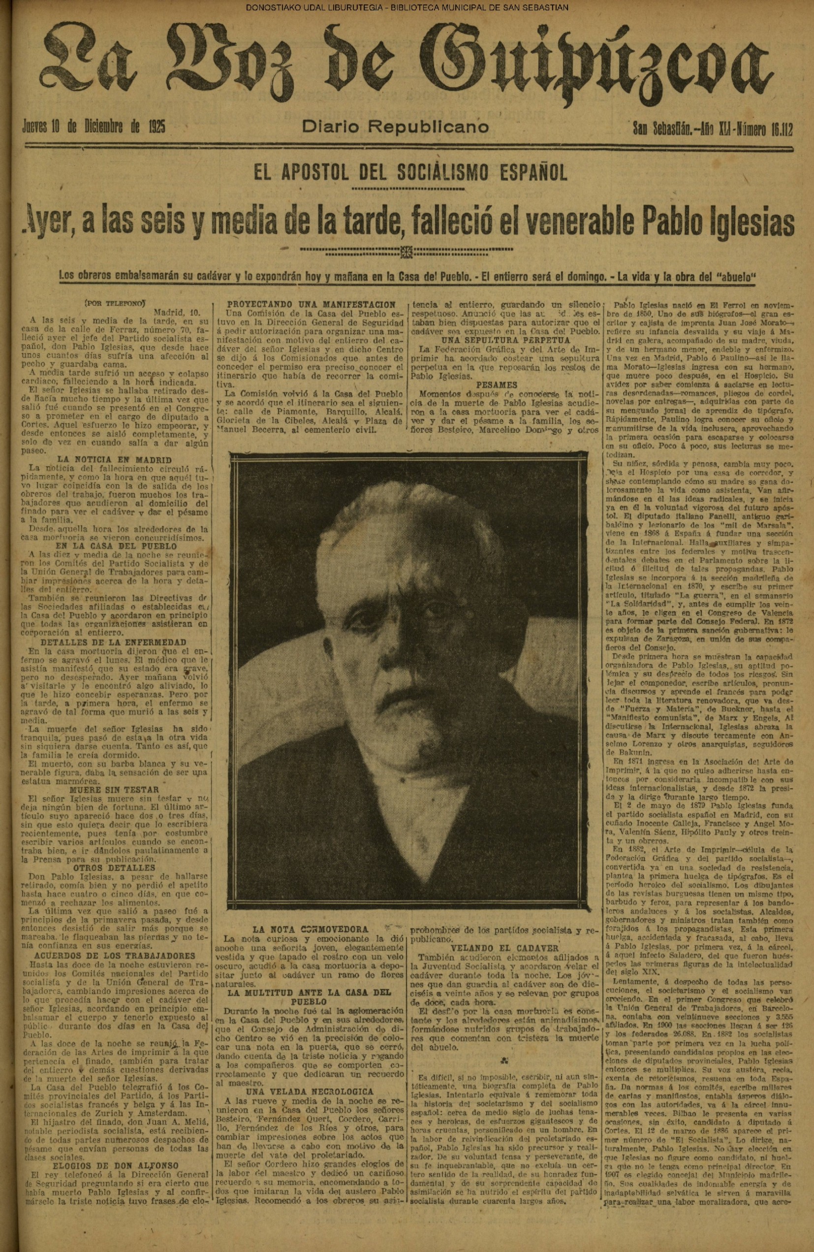 (La Voz de Guipúzcoa) (1923) FOOTBALL - REAL SOCIEDAD (2-1) ESPAÑOL (La Voz de Guipúzcoa)(El Pueblo Vasco)(El Pais Vasco)(La Constancia) (1925)(X) A las seis y media de la tarde FALLECE el venerable Pablo Iglesias (La Voz de Guipúzcoa/cont)