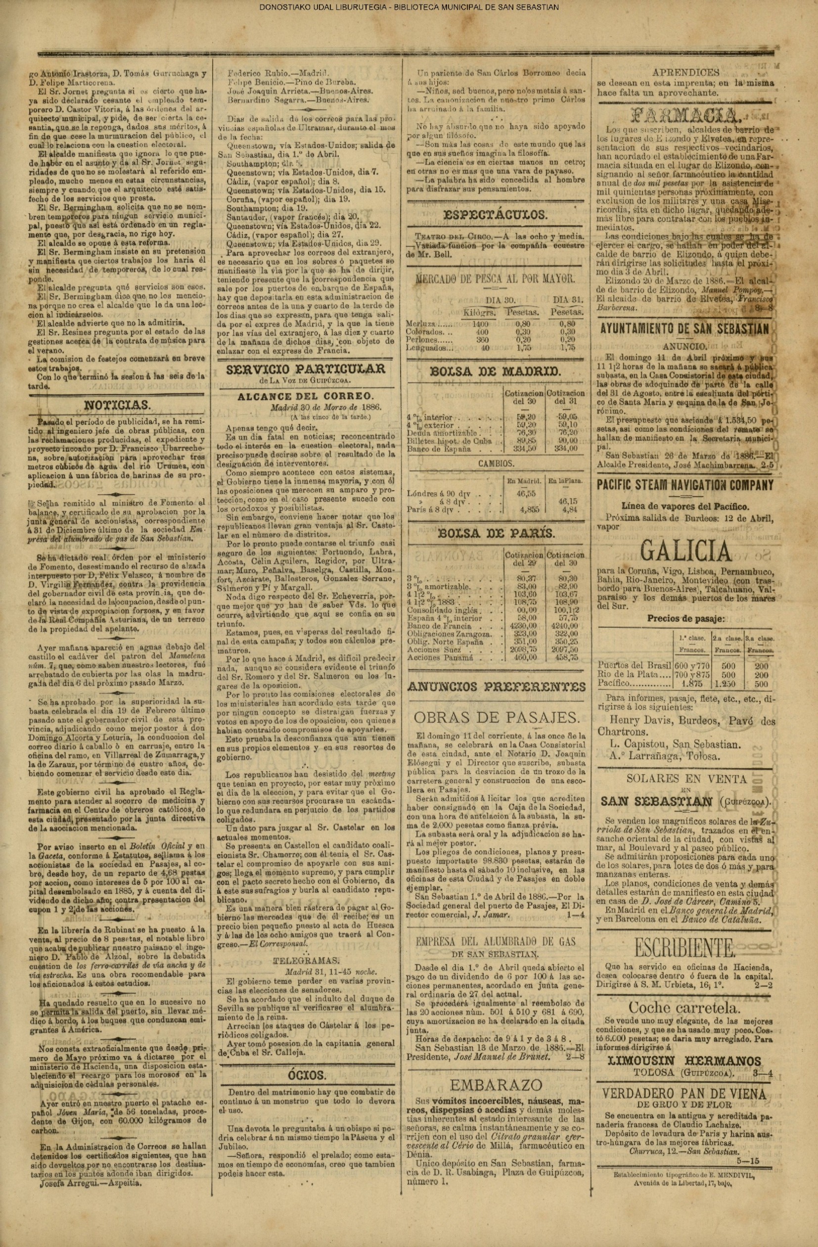 (1844) - Hoy juran sus cargos los componentes del nuevo Ayuntamiento constitucional. Por vez primera se elige un solo alcalde, que es Ángel Gil Alcain a quien acompañan en la gestión 9 regidores siendo el primero Antonio Erauso, un síndico, dos tenientes de alcalde y el secretario Lorenzo Alzate quien dispone de atribuciones mayores según la R.O. de 27 de noviembre pasado. (1886) Muy cerca del monte Urgull aparece el cadáver de Julián Santana, patrón del «Mamelena n.° 7» que había naufragado durante la madrugada del sábado 6 de este mes en la Concha.(Diario de San Sebastián)(El Eco de San Sebastián)(La Voz de Guipúzcoa) |